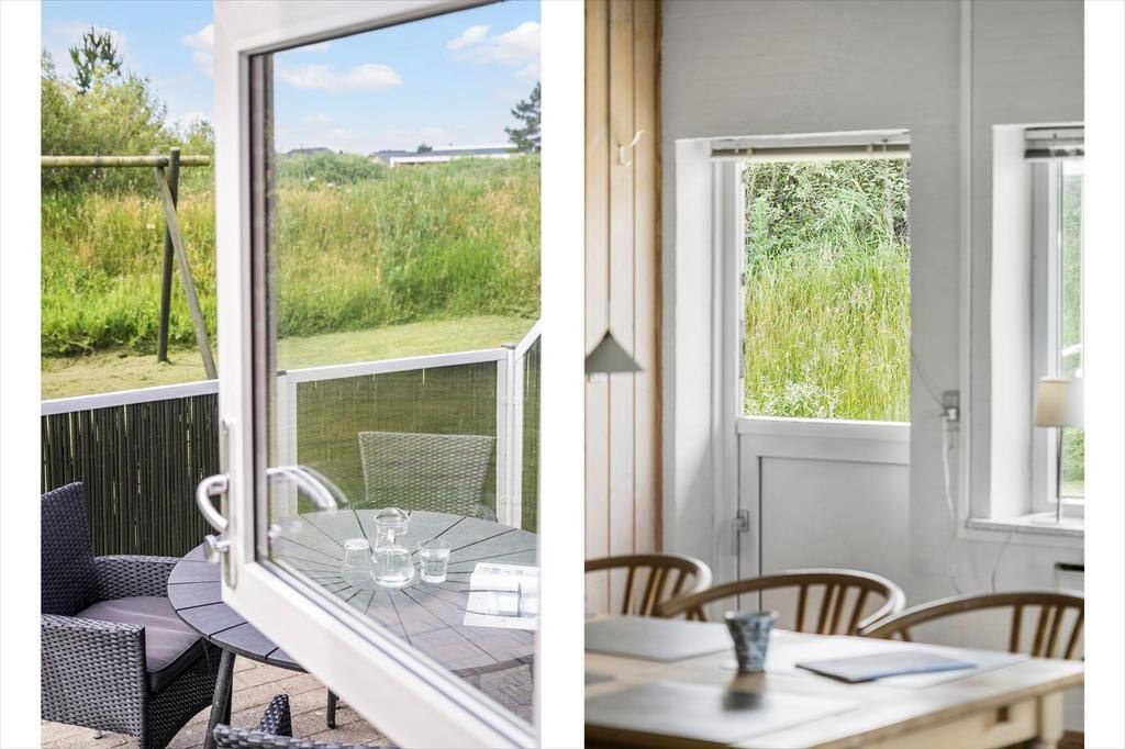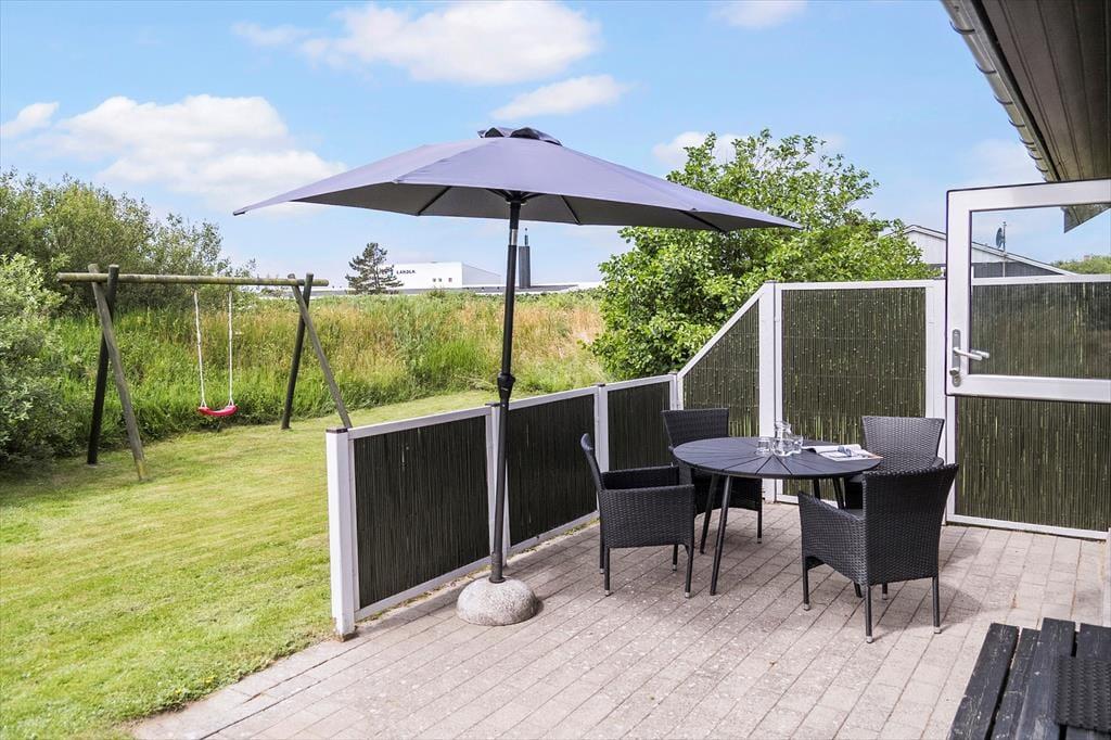 Das Ferienhaus liegt auf einem 1.200 m² großen Grundstück, das direkt an ein weitläufiges Naturgebiet grenzt. Südlich und östlich vom Haus wurde eine teilweise abgeschirmte Terrasse angelegt, sodass du dort sowohl die Sonne als auch den Windschatten genießen kannst, wenn du dich im Liegestuhl entspannen möchtest. An sonnigen Sommertagen kannst du den Grill anwerfen und das Abendessen draußen servieren. Und wenn dir nach dem Dessert nach Bewegung ist, bietet die Grasfläche viel Platz zum Spielen.