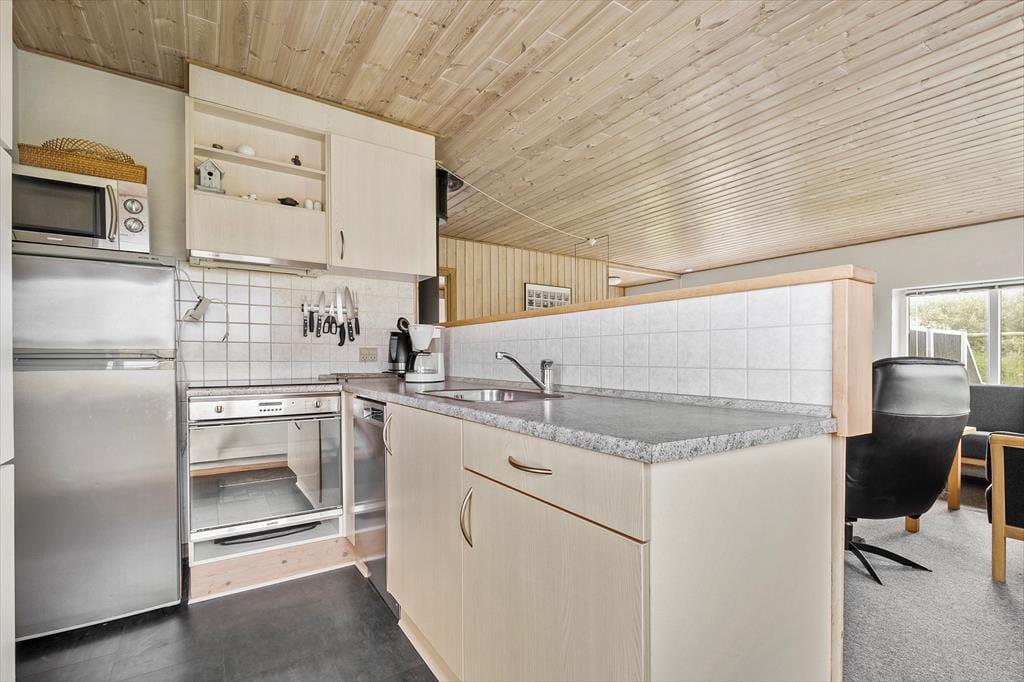 "Holiday" nennt sich dieses einladende Ferienhaus, das sich durch seine helle Atmosphäre und seinen wohldurchdachten Grundriss für fünf Personen auszeichnet. Im Haus liegen zwei Schlafzimmer Seite an Seite, von denen eines Zugang zu einem Schlafboden hat, der mit zusätzlichen Schlafplätzen eingerichtet ist. Außerdem hast du ein Badezimmer zur Verfügung, das neben Dusche und WC auch eine Waschmaschine hat, sodass du deine Urlaubsgarderobe wieder auffrischen kannst. Den sozialen Mittelpunkt des Hauses bilden das Wohnzimmer und die Küche, die zu einem großen, herrlichen Aufenthaltsraum vereint sind. Hier kannst du es dir auf dem Sofa gemütlich machen, einen guten Film im Fernsehen schauen, Brettspiele spielen und deine Mahlzeiten am Esstisch einnehmen. Wenn es draußen kühl wird, kannst du sowohl den Kamin anzünden als auch die Wärmepumpe einschalten.