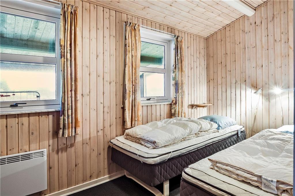 Das Ferienhaus wurde 1964 erbaut und wurde seitdem nicht nur sorgsam instandgehalten und renoviert, sondern auch erweitert. Deshalb kommst du heute in den Genuss, deinen Urlaub unter anderem in dem großen, hellen Wohnbereich zu verbringen, der mit Bodenfliesen und Fußbodenheizung sowie mit einem Kaminofen ausgestattet ist. Die moderne, zum Wohnbereich hin offene Küche wurde 2014 eingebaut. Auch das Badezimmer ist geschmackvoll eingerichtet, mit stilvoll-schlichtem Interieur. In das Wohnzimmer strömt das Licht aus drei Himmelsrichtungen durch die großen Fenster ein – und dank der guten Isolierung bleibt es drinnen das ganze Jahr über behaglich. Wenn du nicht gerade beim Kochen, Essen, Fernsehen oder Lesen entspannst, könntest du erwägen, deinen Mittagsschlaf in einem der komfortablen Schlafzimmer zu halten, die jeweils mit einem Doppelbett bzw. zwei Einzelbetten ausgestattet sind.