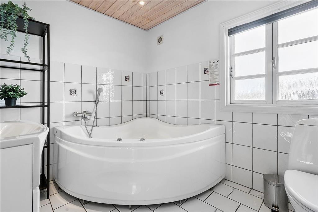 Der gelungene Grundriss umfasst unter anderem vier komfortable Schlafzimmer mit Platz für bis zu acht Personen. Wohnen du mit mehreren im Haus, ist es praktisch, dass es zwei Badezimmer gibt, die jeweils mit einer Sauna und einem schönen Eck-Whirlpool ausgestattet sind. Wenn dein Urlaubsprogramm Entspannung vorsieht, kannst du dich alternativ auch im Aufenthaltsraum versammeln, denn dort kannst du dich herrlich auf dem Sofa ausbreiten oder dich zu einer guten Mahlzeit zusammenfinden, die du in der gut ausgestatteten Küche zubereitet hast. Ein Kaminofen steht bereit, um Behaglichkeit und Wärme zu verbreiten, ebenso wie die Wärmepumpe, die zudem dafür sorgt, dass das Haus ganzjährig bewohnbar ist.