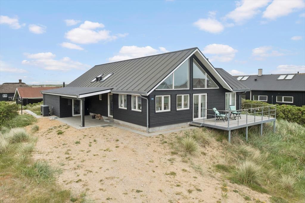 Das 120 m² große Ferienhaus wurde 2022 erbaut, sodass du dich auf einen Urlaub in einem großzügigen und modernen Ambiente freuen kannst. Mit drei guten Schlafzimmern und zwei Badezimmern ist der Grundriss ideal für sechs Personen. Alle Schlafzimmer sind mit komfortablen Betten und Kleiderschränken ausgestattet, und du hast direkten Zugang zur Terrasse, wo du dich am Morgen an der frischen Luft direkte strecken und recken kannst. Das Haus bietet zwei tolle Badezimmer, besonders das große Bad ist erwähnenswert, das mit einer wunderbaren Sauna ausgestattet ist. Hervorzuheben ist sicherlich auch der Wohnbereich, wo Wohnzimmer und Küche in offener Verbindung stehen. Hier kannst du kochen und entspannen in stilvollem Ambiente, und wenn das Wetter dazu einlädt, kannst du das Haus mit dem Kaminofen oder der Wärmepumpe erwärmen. Große Fenster lassen das Tageslicht herein und geben den Blick auf die Dünenlandschaft frei, und wenn du die Aussicht so richtig genießen möchtest, kannst du die Treppe zur Aussichtsempore des Wohnzimmers hinaufsteigen.