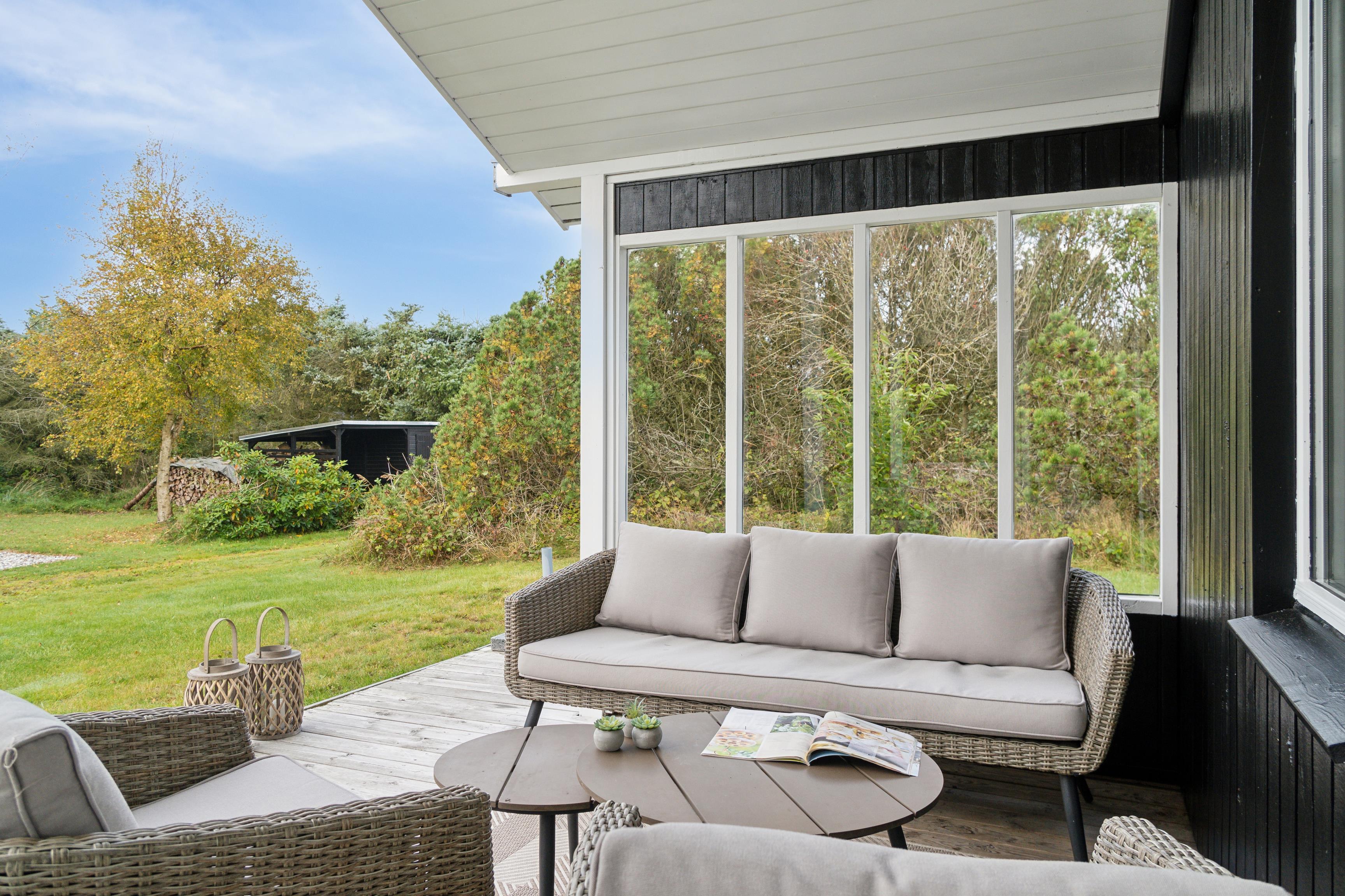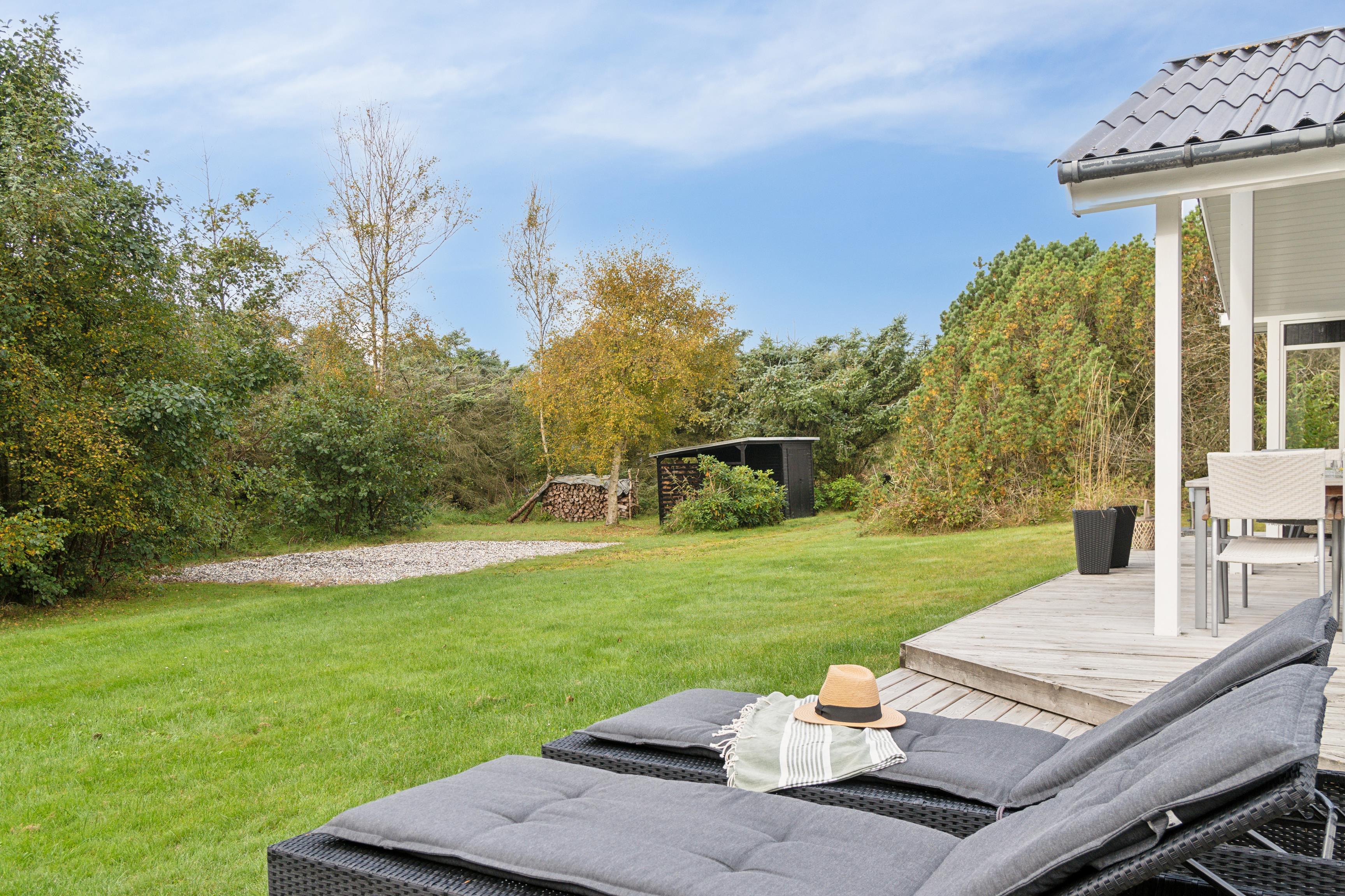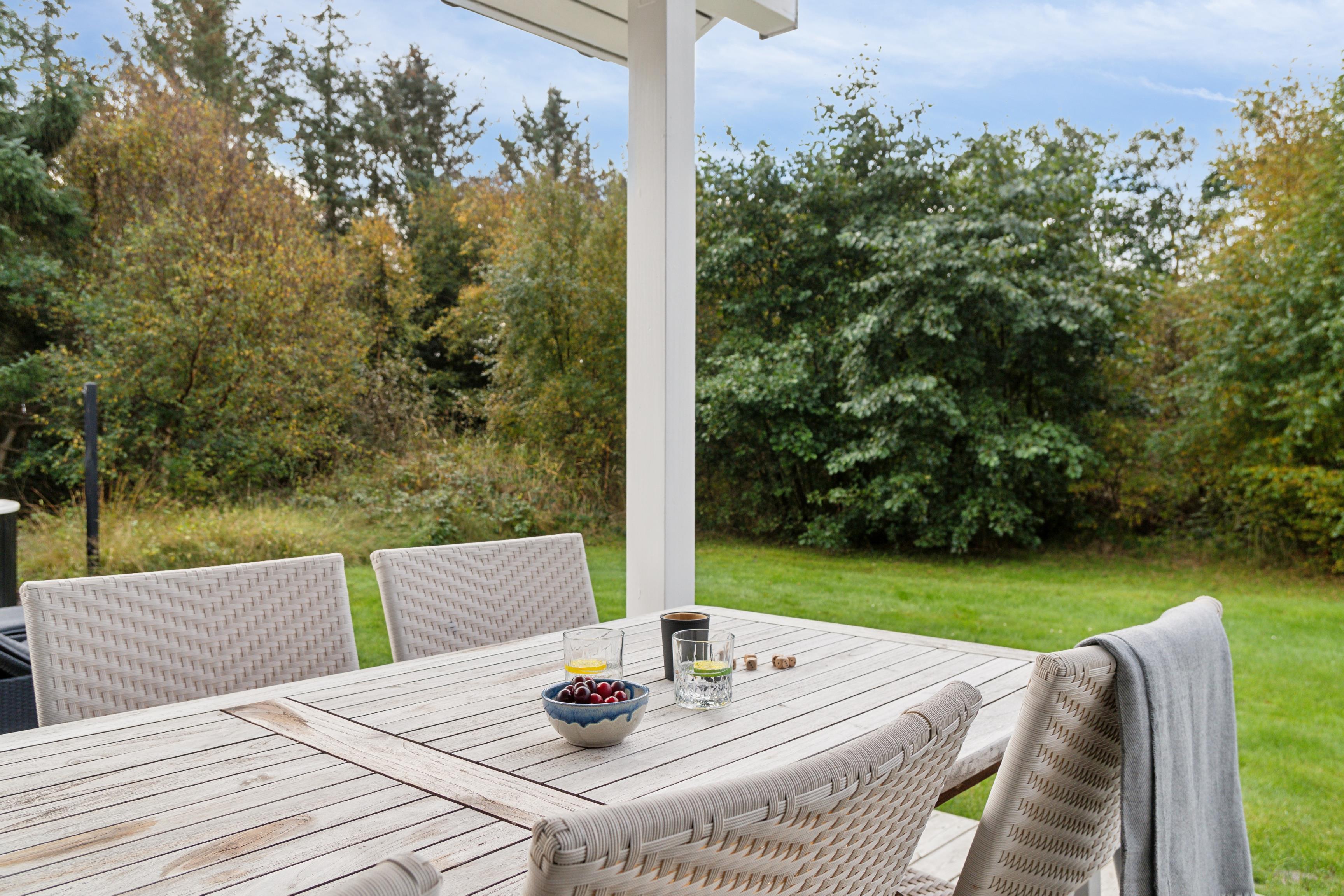 An der Gransagervej 20 finden Sie eine wunderschöne, große Terrasse, die teilweise überdacht ist – ideal für Familien mit Kindern, wo die Kleinen sicher und frei spielen können. Die Terrasse verfügt über mehrere gemütliche Ecken, in denen Sie je nach Wunsch zwischen Sonne und Schatten wählen können. Sie ist mit Gartenmöbeln, Liegestühlen und einem Grill ausgestattet, was die langen Sommerabende noch angenehmer macht. Sie können Ihre Mahlzeiten im Freien genießen, und egal, ob Sie den Tag im Whirlpool beginnen oder ihn mit einem guten Abendessen beenden möchten, Sie haben die perfekte Umgebung dafür.