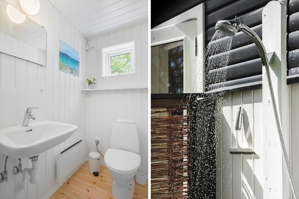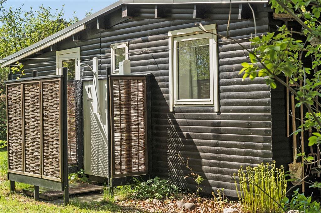 An der Ostseite des Hauses steht eine Außendusche zur Verfügung. Die Dusche ist gut abgeschirmt, sodass Sie mit Ausblick auf die Bäume und den Himmel das Gefühl genießen, mitten in der Natur zu duschen.