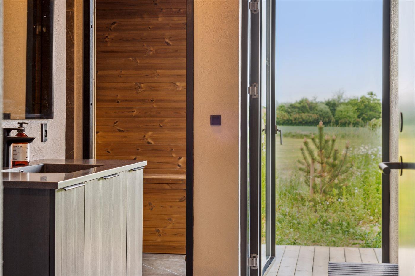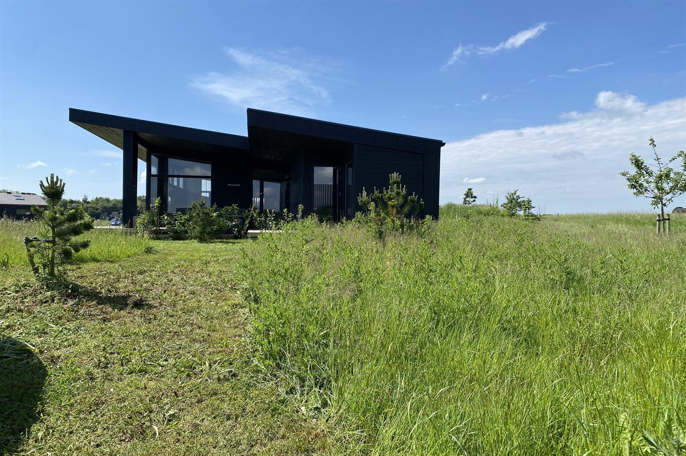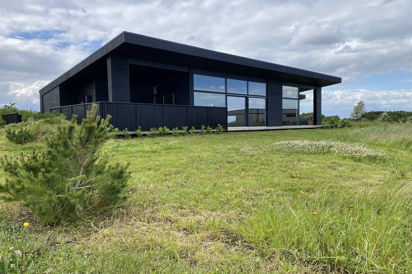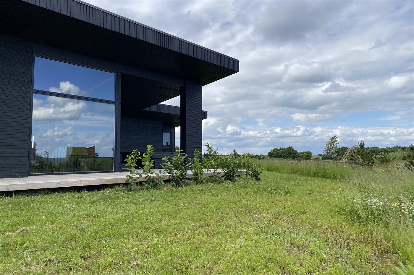 Modernes Ferienhaus 2023 mit Whirlpool, Sauna und Meerblick auf großem Naturgrundstück in Børkop.