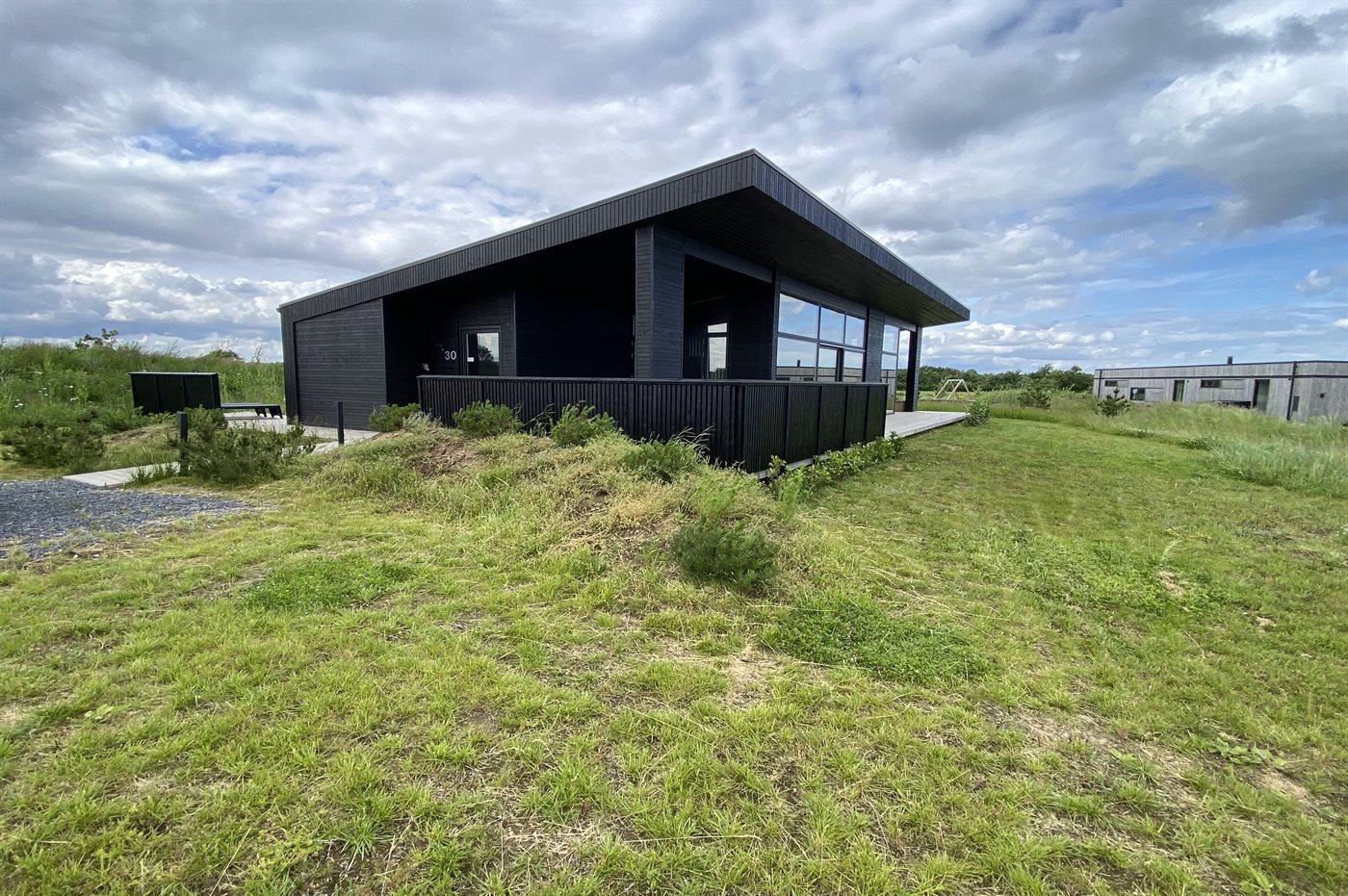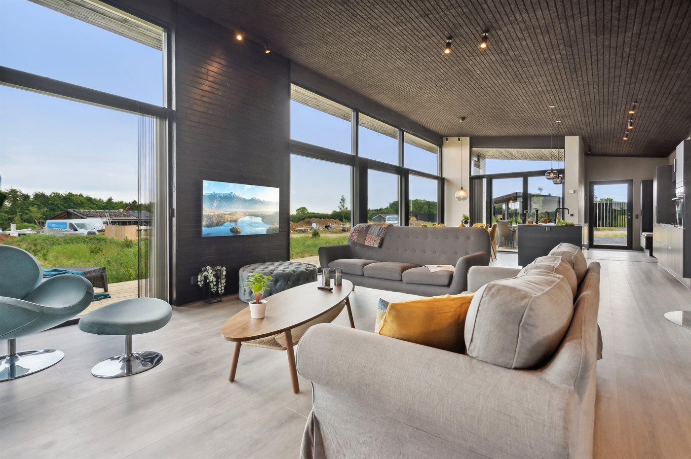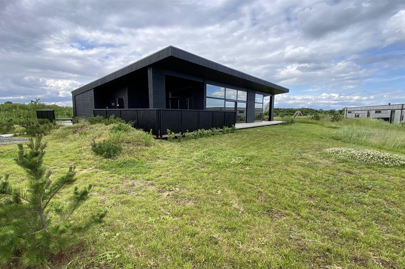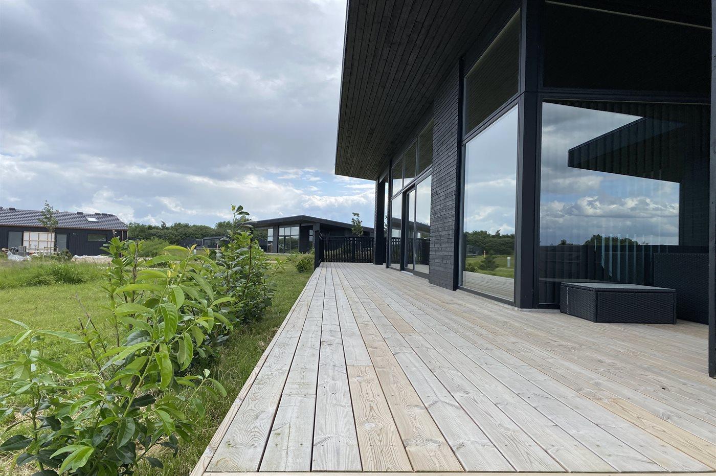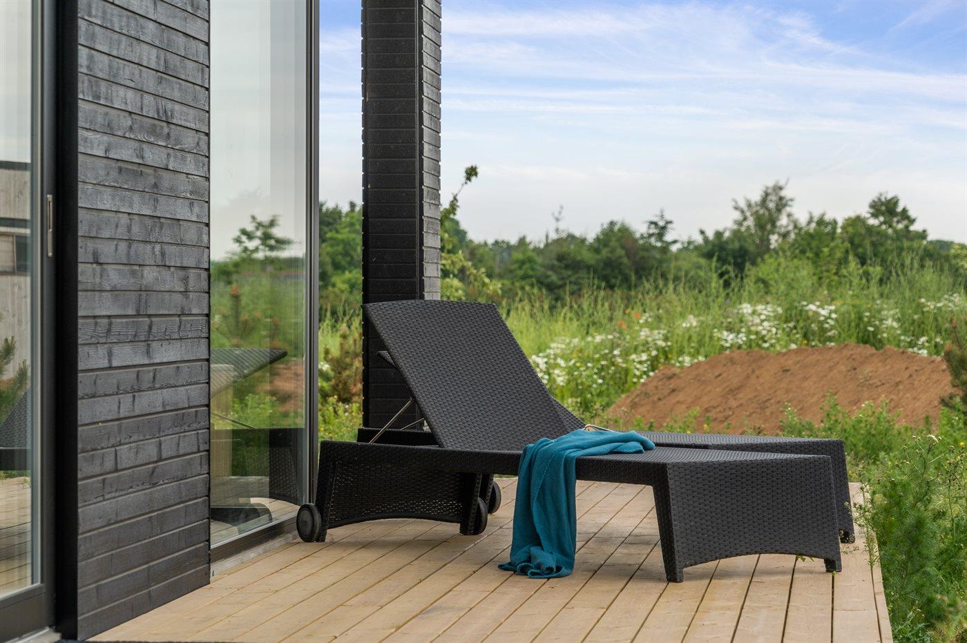 Modernes Ferienhaus 2023 mit Whirlpool, Sauna und Meerblick auf großem Naturgrundstück in Børkop.