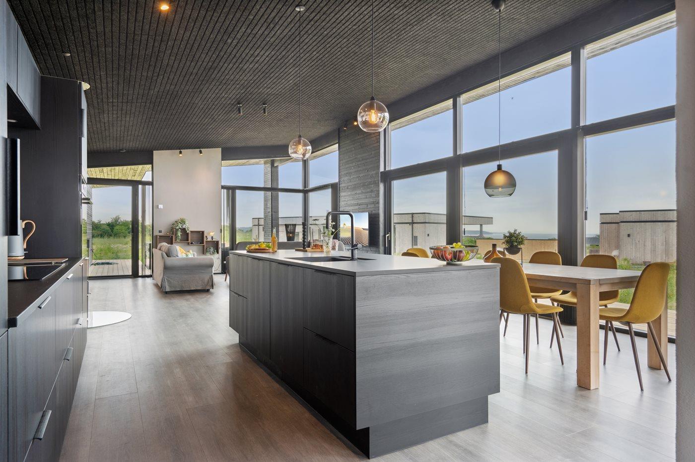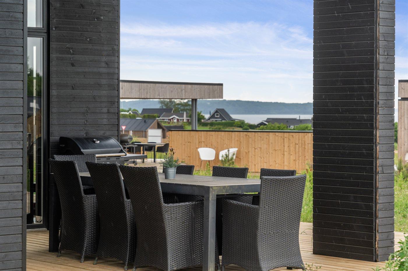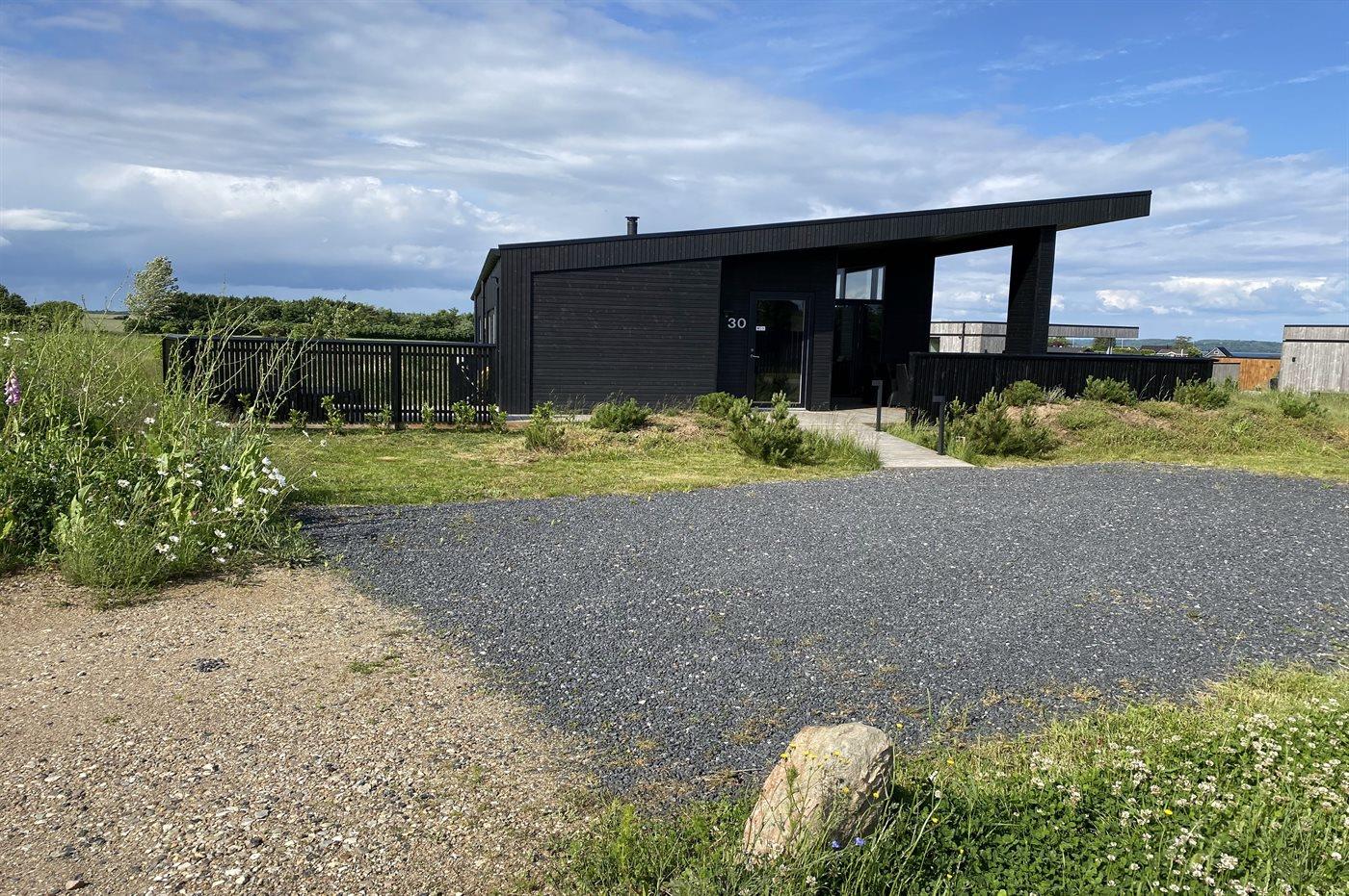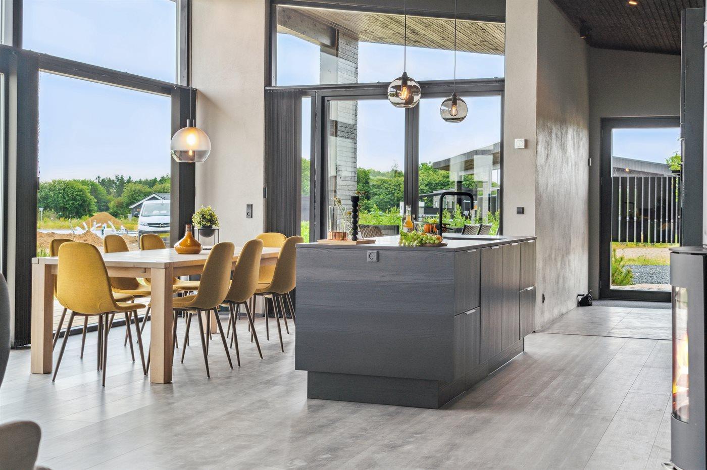 Modernes Ferienhaus 2023 mit Whirlpool, Sauna und Meerblick auf großem Naturgrundstück in Børkop.