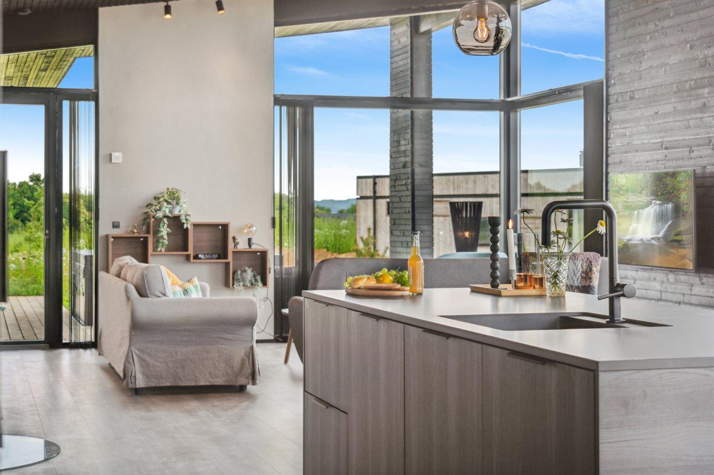Phantastisches neues Ferienhaus aus dem Jahr 2023 in einer landschaftlich ansprechenden Gegend mit herrlichem Blick aufs Wasser.