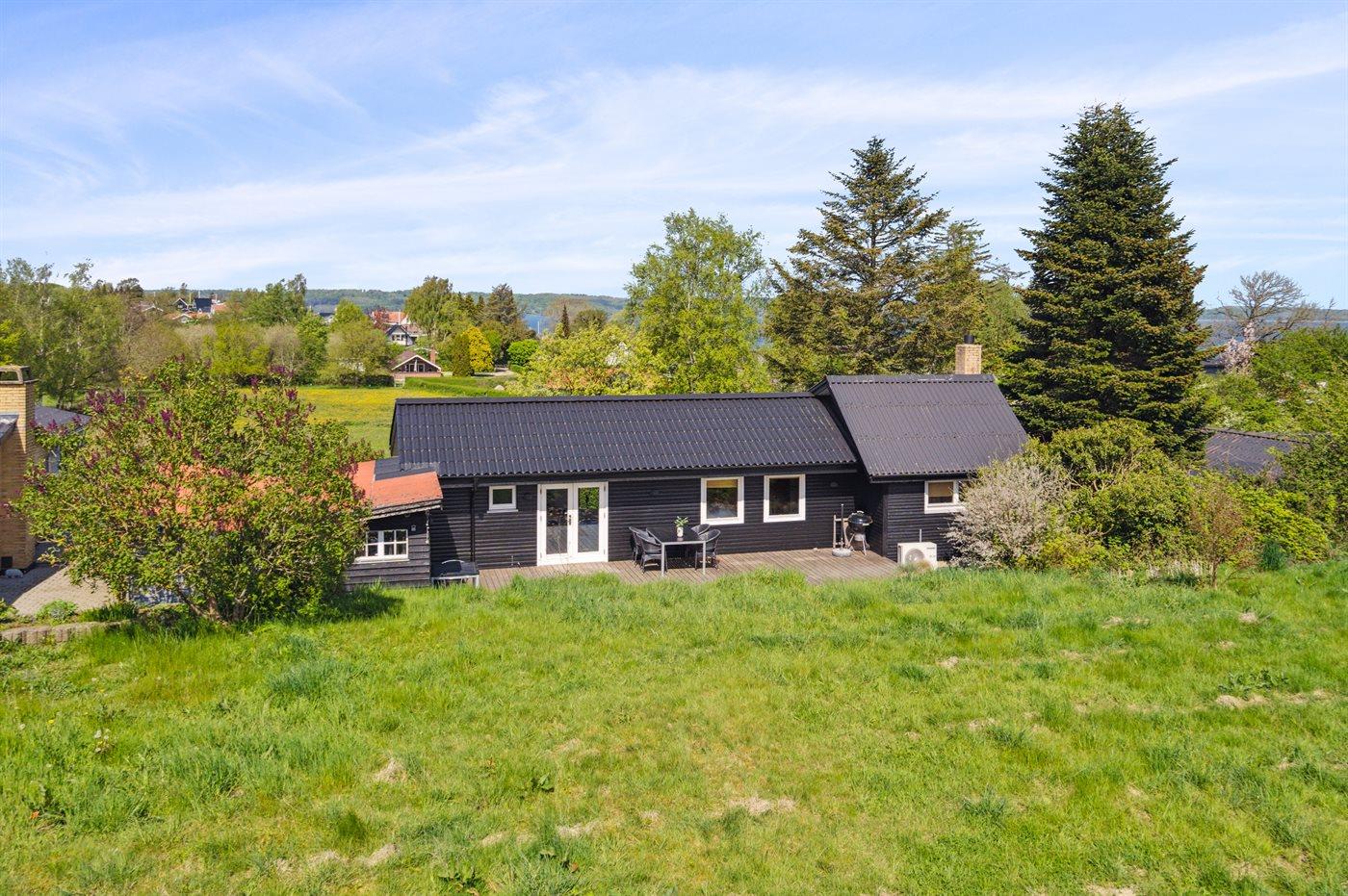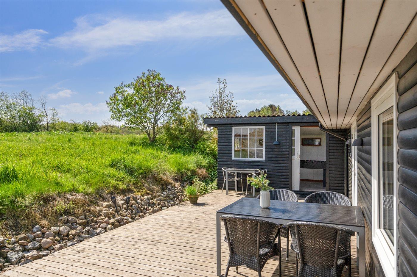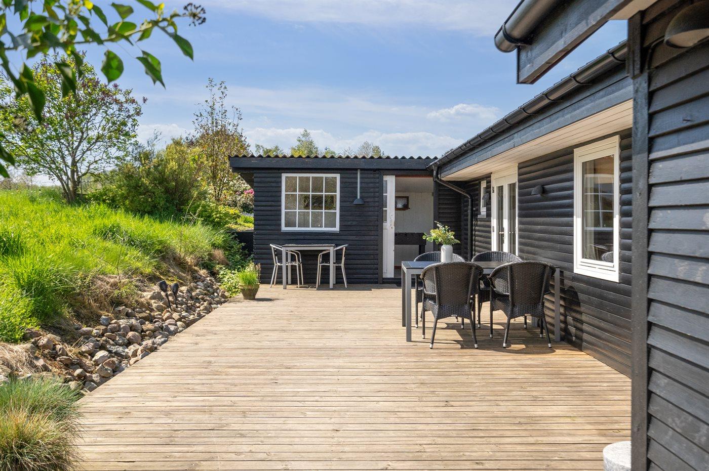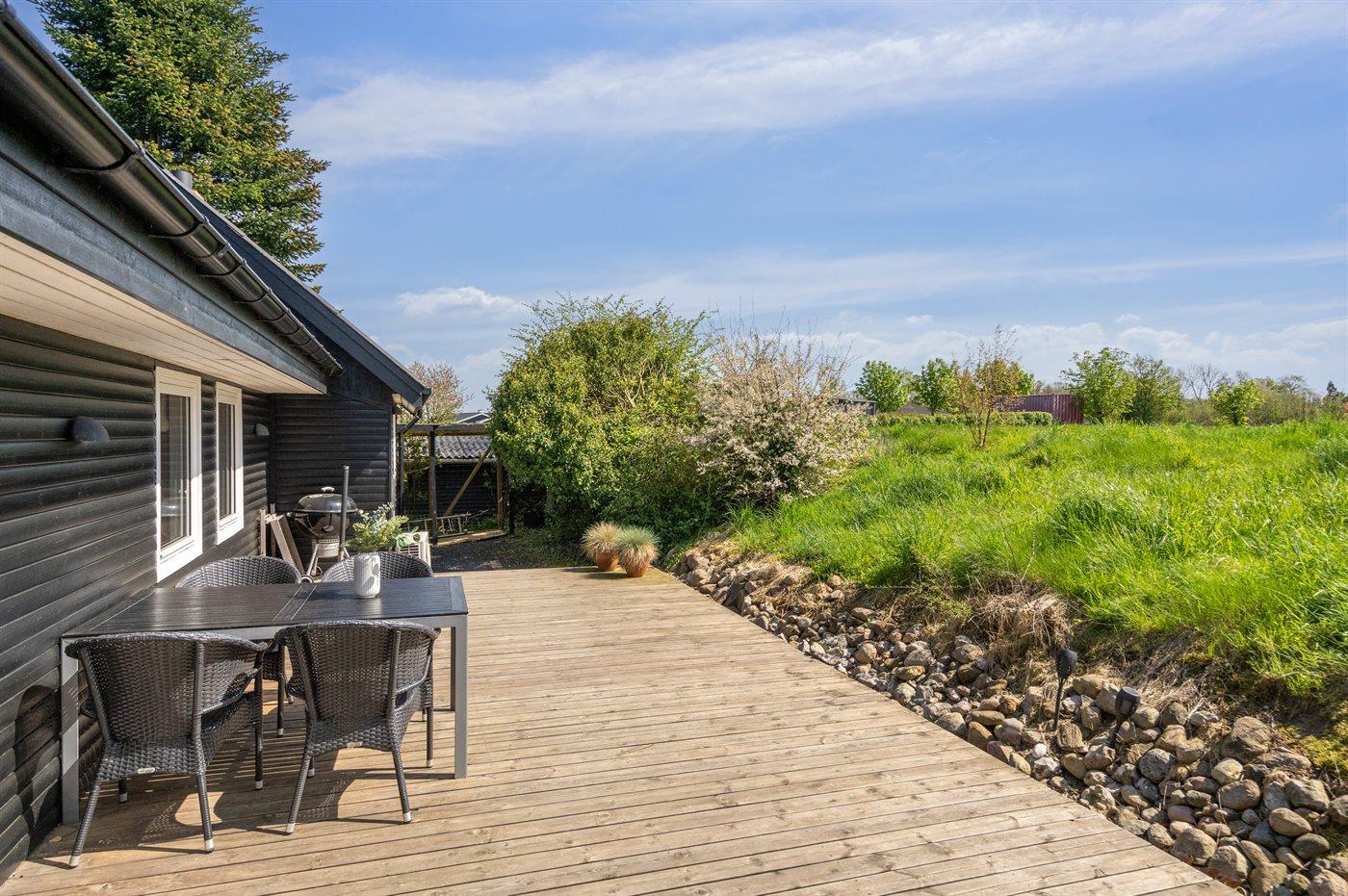 Modernes Ferienhaus nahe Lillebælt mit großem Garten und Terrasse, ideal für Familien und Hundebesitzer.