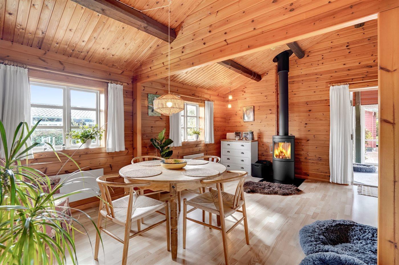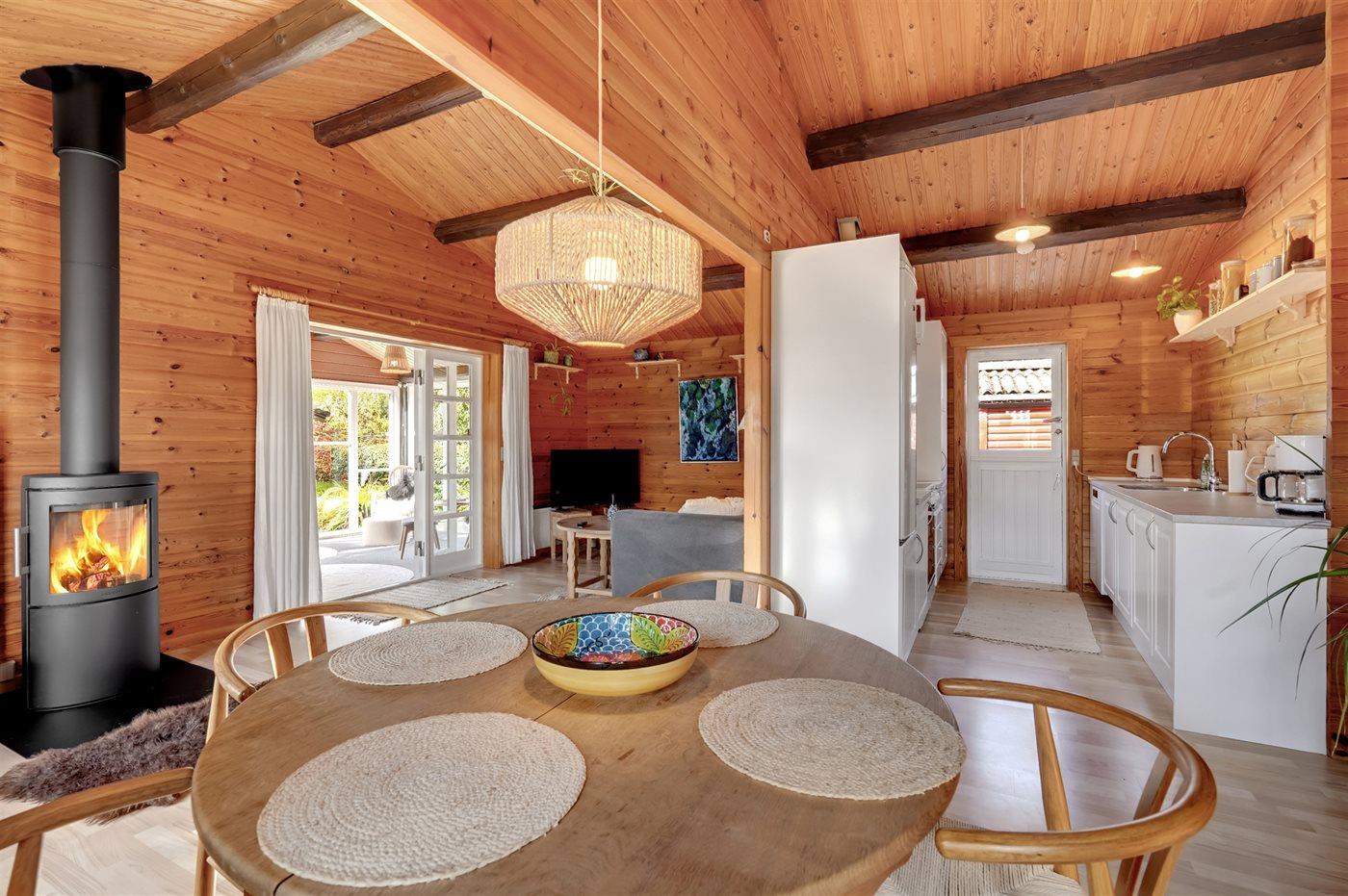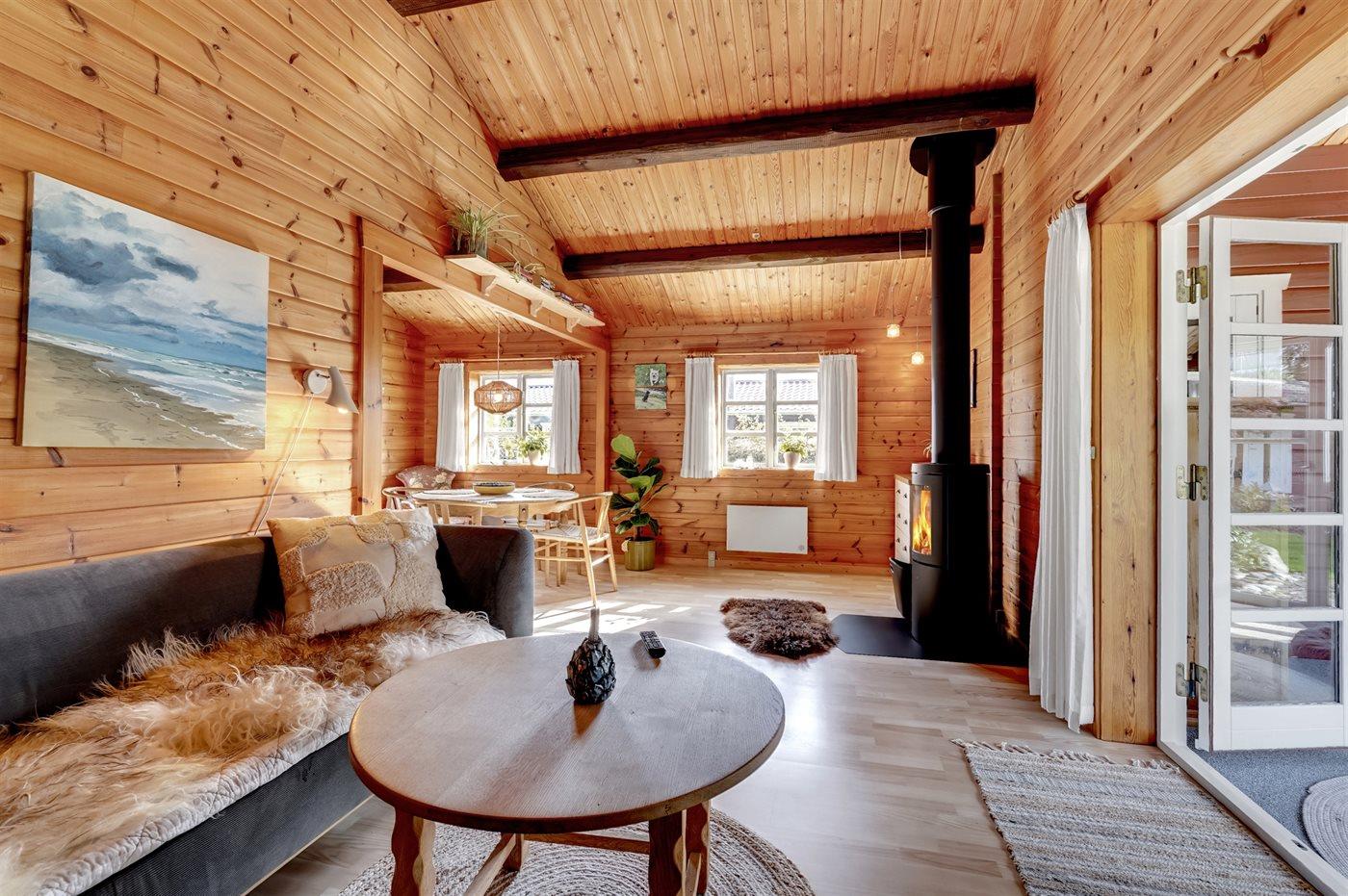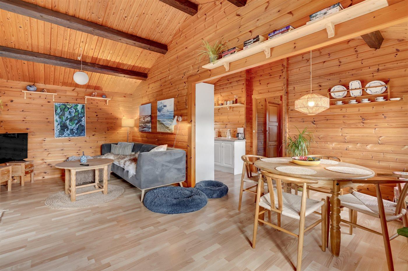 Im Inneren präsentiert sich das Ferienhaus in gutem Zustand mit einer sehr einladenden Atmosphäre. Der durchdachte Grundriss macht es für eine Familie mit 2–3 Kindern ideal und es bietet sich die Möglichkeit an, zum Beispiel die Großeltern mit in den Urlaub einzuladen. Auf dem schönen Grundstück gibt es nämlich ein separates Gästehaus, das sich gut für größere Kinder oder eben Großeltern eignet. Außerdem kannst du deinen Hund mitbringen, der sich sicher und frei auf dem eingezäunten Grundstück bewegen kann.