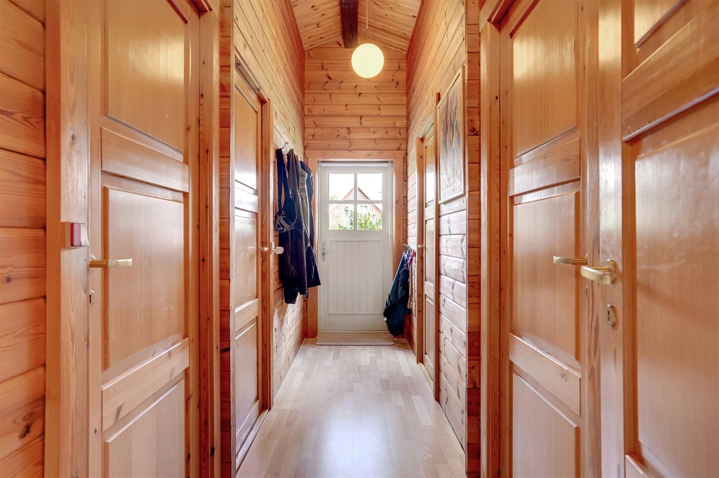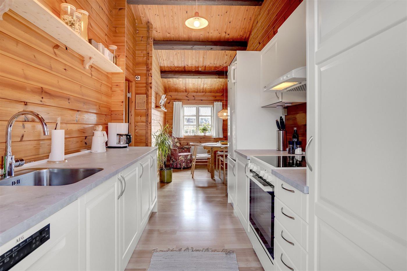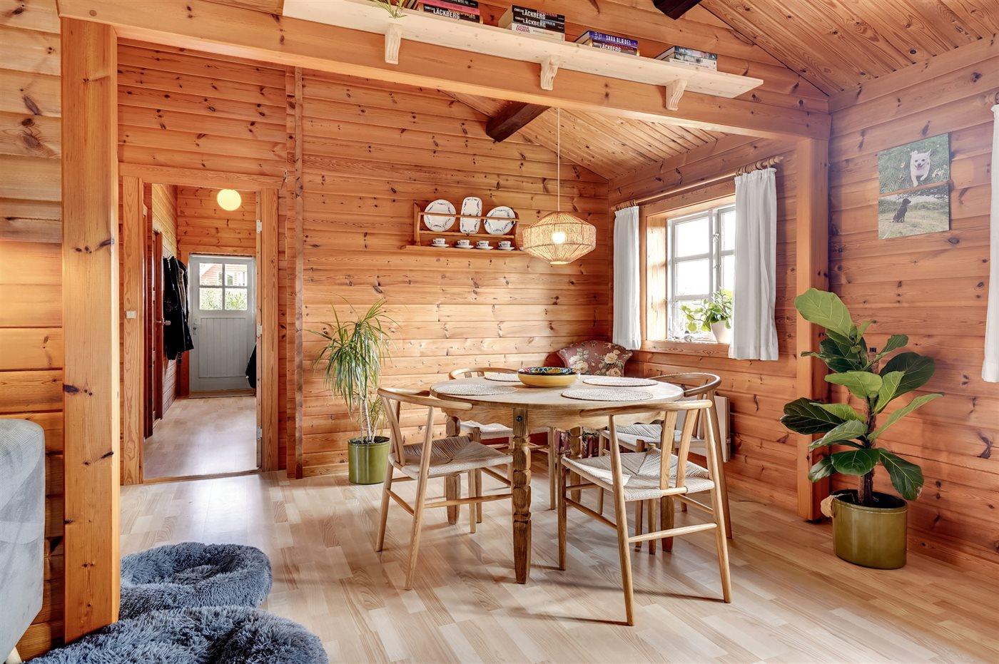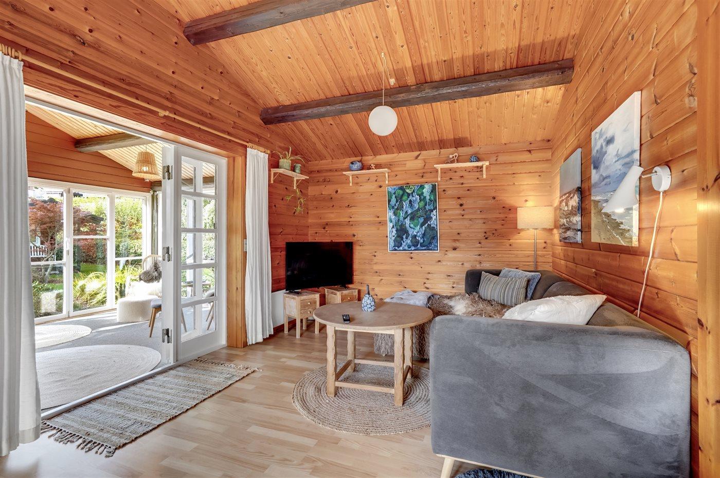 Im Inneren präsentiert sich das Ferienhaus in gutem Zustand mit einer sehr einladenden Atmosphäre. Der durchdachte Grundriss macht es für eine Familie mit 2–3 Kindern ideal und es bietet sich die Möglichkeit an, zum Beispiel die Großeltern mit in den Urlaub einzuladen. Auf dem schönen Grundstück gibt es nämlich ein separates Gästehaus, das sich gut für größere Kinder oder eben Großeltern eignet. Außerdem kannst du deinen Hund mitbringen, der sich sicher und frei auf dem eingezäunten Grundstück bewegen kann.