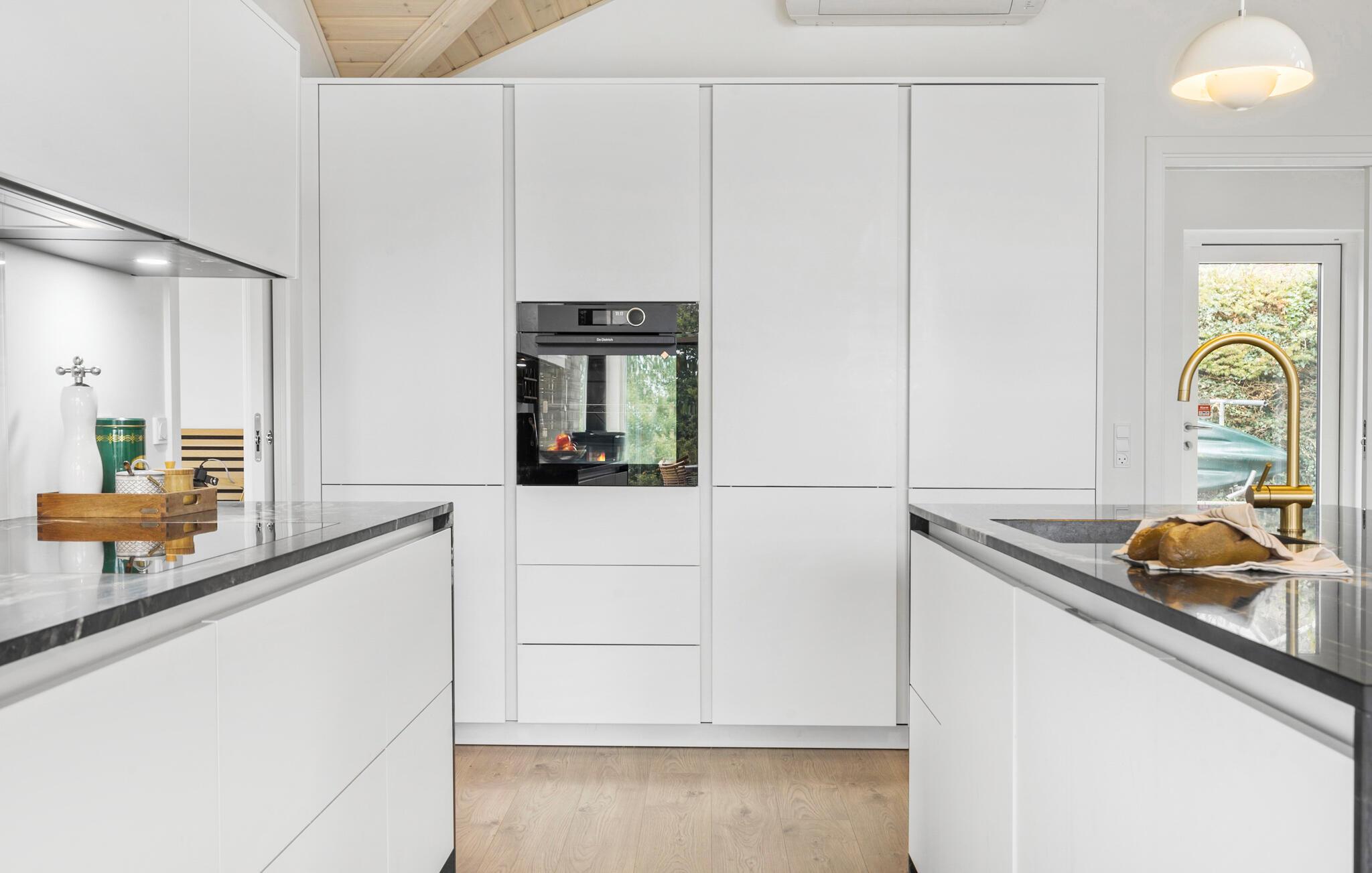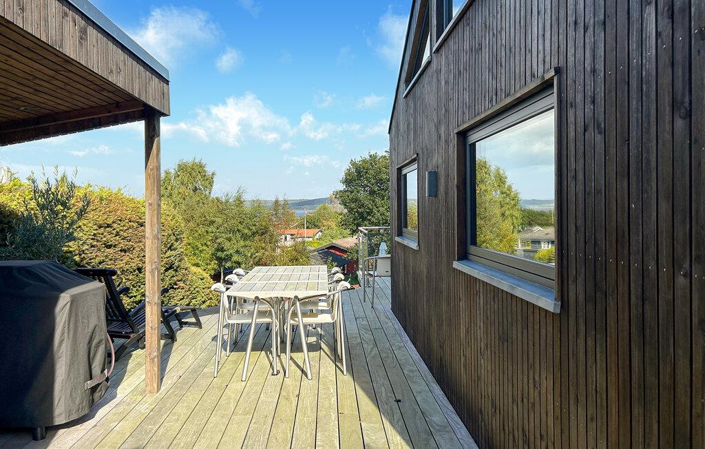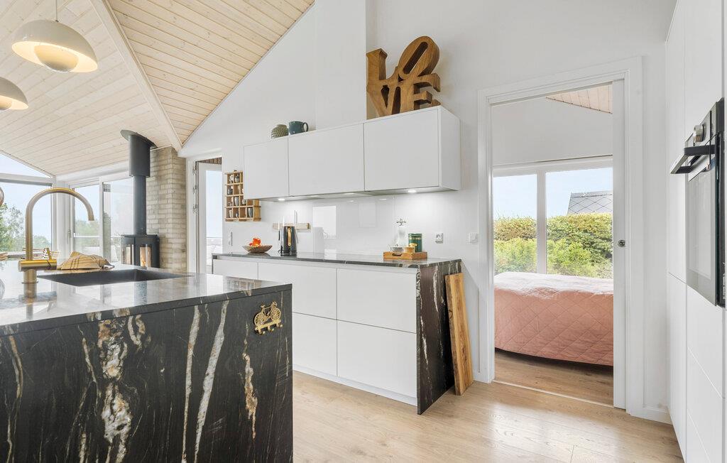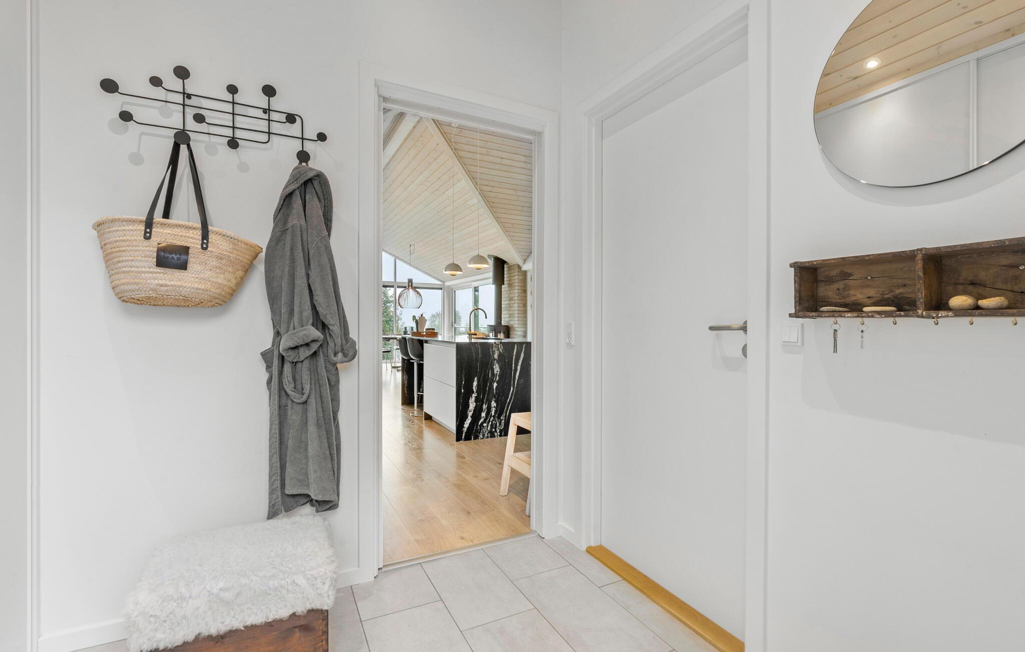 Verbringen Sie einen erholsamen Urlaub in diesem stilvollen Ferienhaus in Mørkholt am malerischen Vejle Fjord. Das modern eingerichtete Haus besticht durch seine lichtdurchfluteten Räume und bietet einen atemberaubenden Blick auf den Fjord, den Sie von der gemütlichen Terrasse oder dem Balkon aus genießen können. Starten Sie Ihren Tag mit einem Frühstück im Freien, während Sie den wunderschönen Ausblick auf das Wasser und die grüne Umgebung bewundern. Im Inneren des Hauses erwartet Sie ein offener Wohnbereich mit einer modernen Küche, in der Sie gemeinsam kochen und die Abende entspannt verbringen können. Lassen Sie den Tag in aller Ruhe vor dem Kaminofen ausklingen.