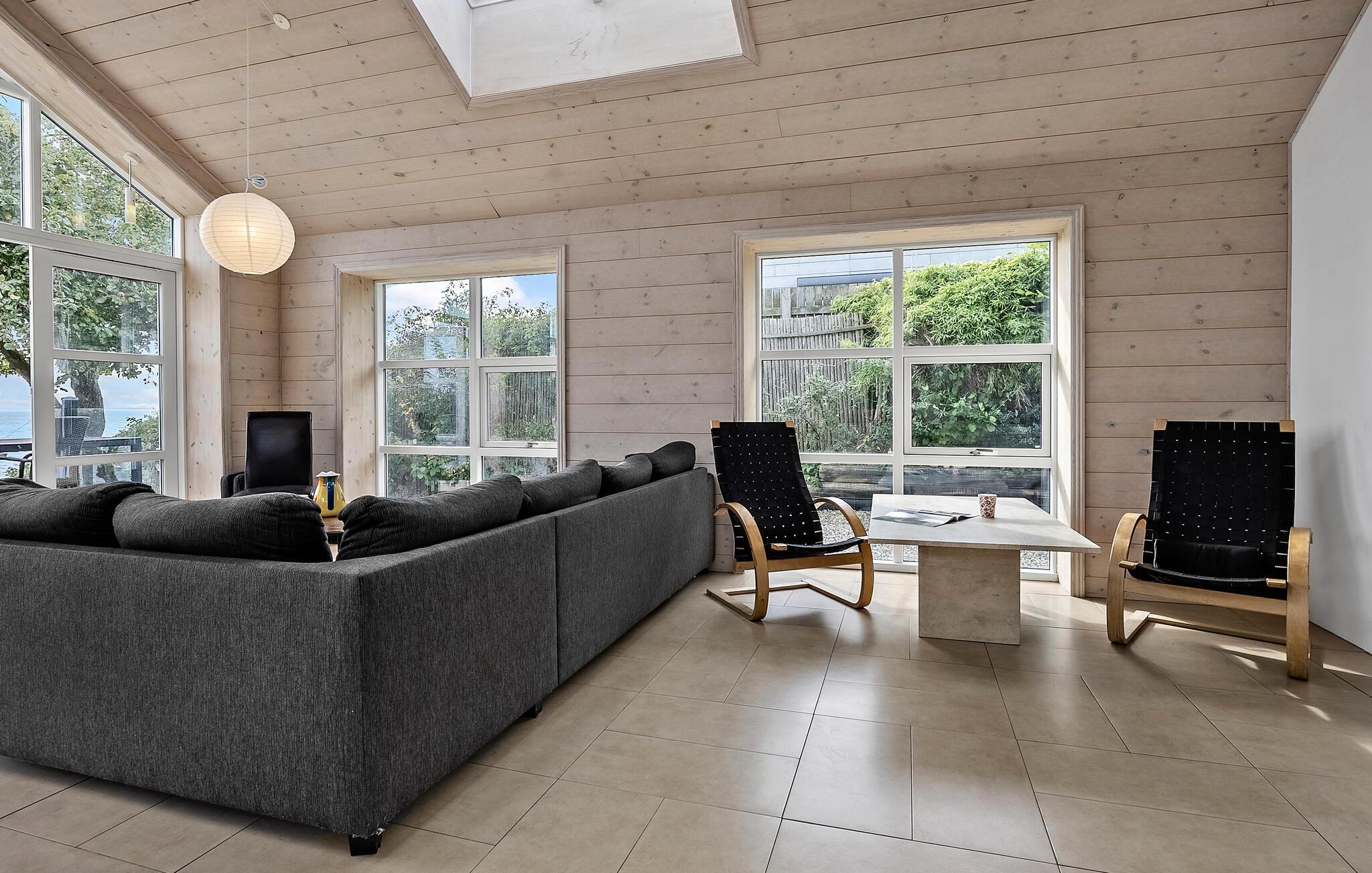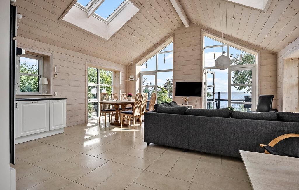 Diese einladende Ferienhaus ist wie geschaffen für eine erholsame Auszeit vom Alltag. Große Fensterfronten lassen viel warmes Tageslicht ins Innere, während Sie ein fantastischen Blick nach draußen auf den Fjord genießen. Entspannen Sie sich auf der bequemen Sofalandschaft, hören Sie Ihre Lieblingsmusik oder zaubern Sie in der modernen Küche köstliche Mahlzeiten.