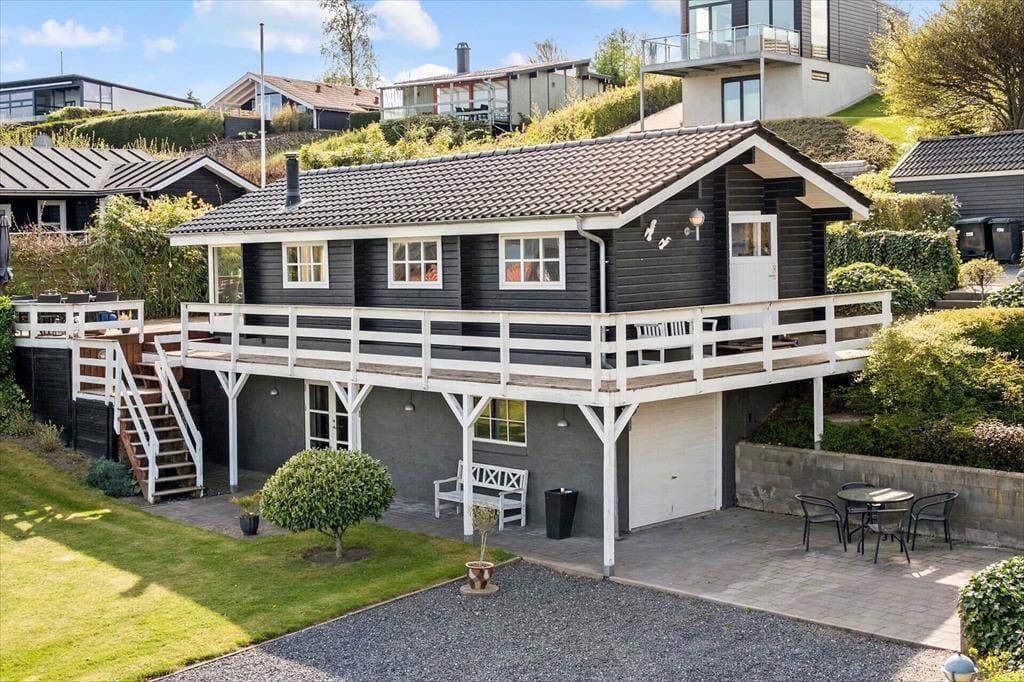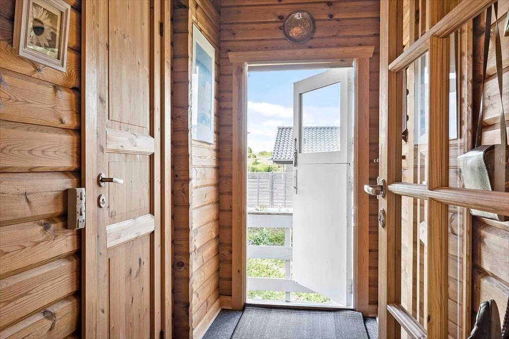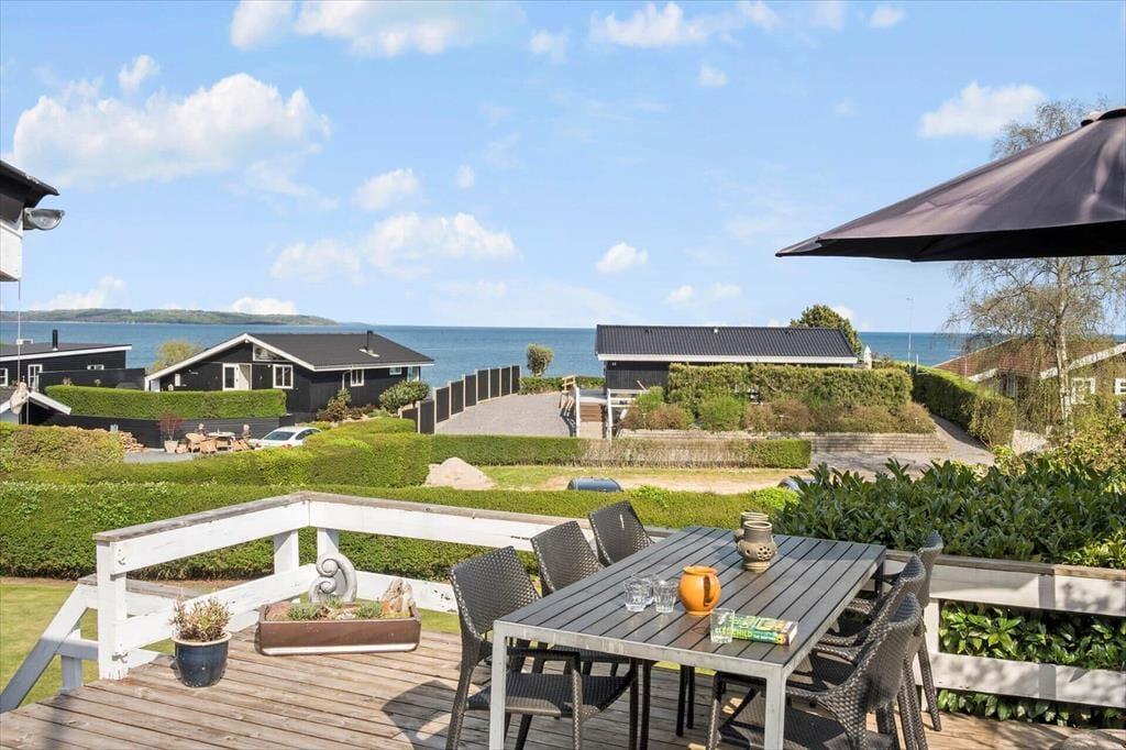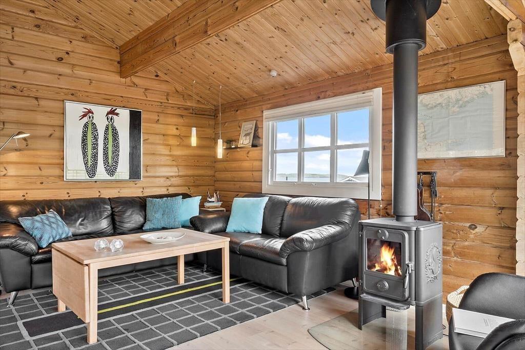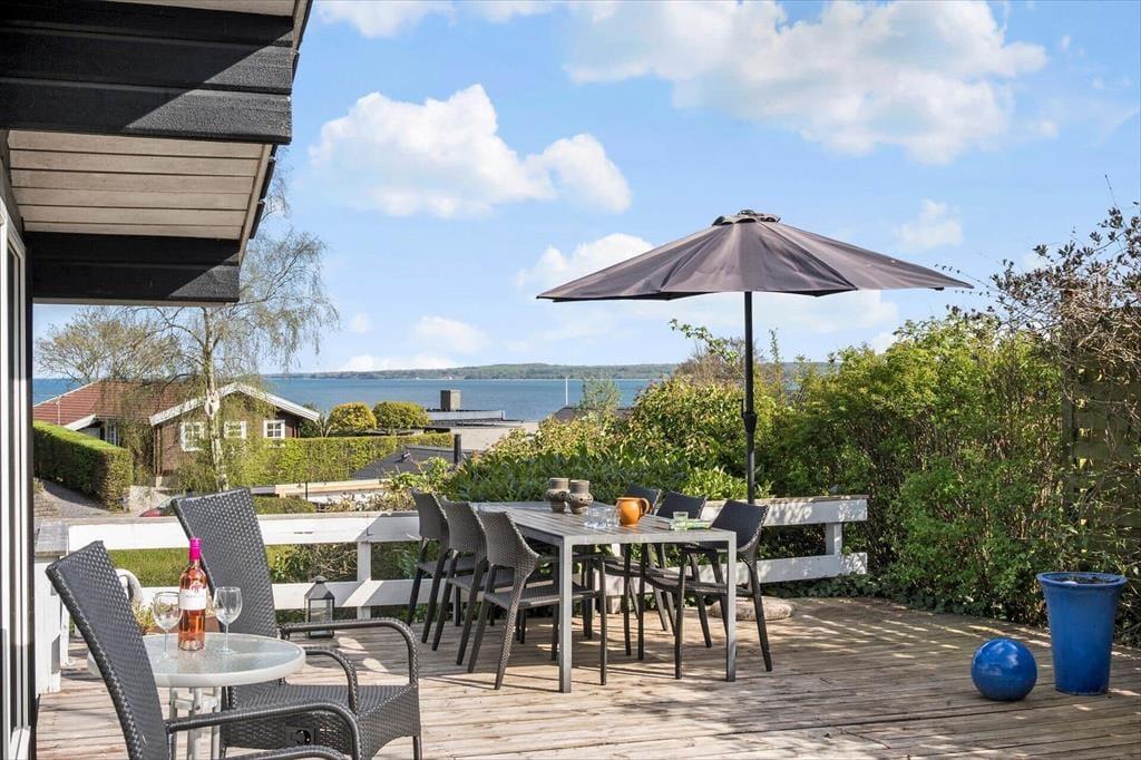 Draußen erwartet dich eine große Holzterrasse, auf der der Blick auf das Wasser die Kulisse für viele schöne Urlaubsmomente bildet. Die Terrasse ist der ideale Ort, um den Morgenkaffee zu genießen, während die Sonne langsam aufgeht, oder um die Familie zu Mittagessen und gemütlichen Grillabenden zu versammeln. Hier kannst du dich in den Gartenmöbeln zurücklehnen, die Sonne im Gesicht spüren und den Klängen der Natur lauschen – vielleicht dem Zwitschern der Vögel in den Baumwipfeln oder dem sanften Plätschern des Fjords. Die kurze Entfernung zum Wasser macht es leicht, spontane Ausflüge zum Strand zu unternehmen, wo du entlang der Küste spazieren, Steine sammeln oder den Hund am Wasserrand schnuppern lassen kannst. Das Leben im Freien rund um das Ferienhaus bietet zahlreiche Möglichkeiten für Entspannung und Aktivität, und hier spürst du, wie sich die wohltuende Urlaubsruhe langsam einstellt.