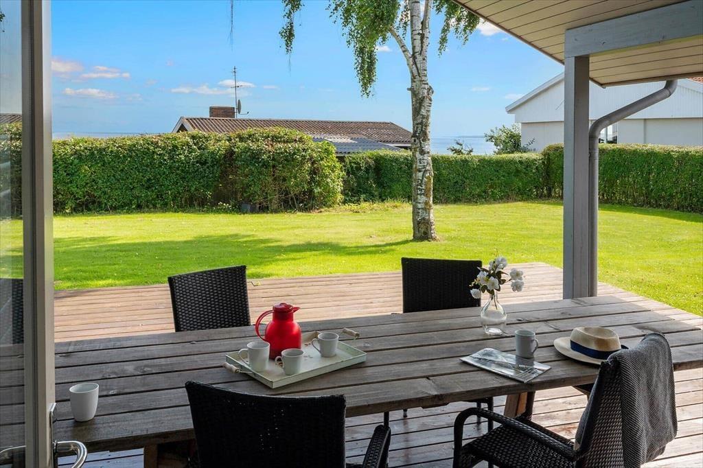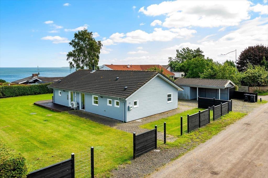 Draußen bietet das Ferienhaus eine teilweise überdachte Terrasse, auf der du die Aussicht auf das Wasser genießen und die Brise vom Strand spüren kannst. Hier ist es ideal, den Tag mit einer Tasse Kaffee und einem guten Buch zu beginnen, während du den Vogelgesang und das sanfte Rauschen der Wellen hörst. Die Terrasse eignet sich auch perfekt für ein Abendessen im Freien, vielleicht mit frisch gefangenem Fisch aus den nahegelegenen Gewässern. Das große Grundstück bietet viel Platz zum Spielen und für Aktivitäten für Kinder und Erwachsene. Mit dem Carport auf dem Grundstück kannst du dein Auto im Schatten parken, damit es immer kühl und bereit für Ausflüge ist.