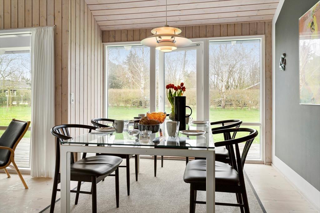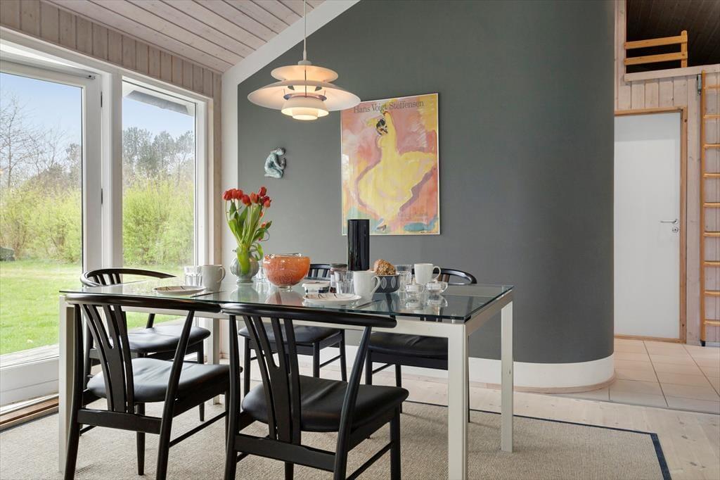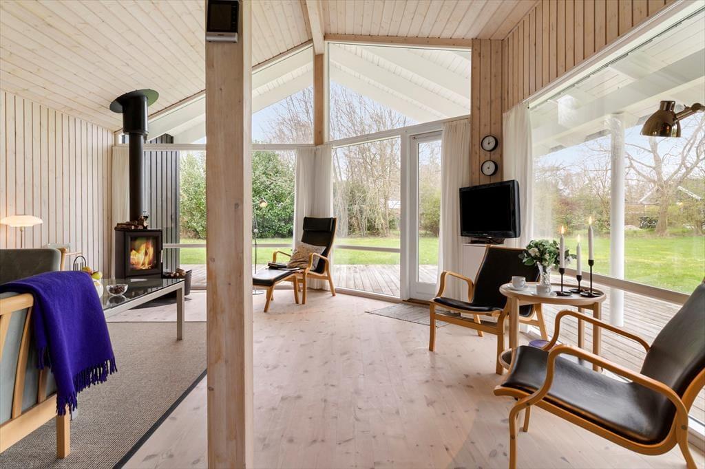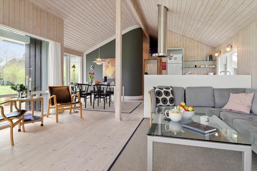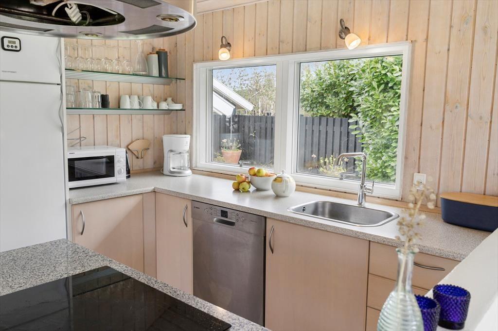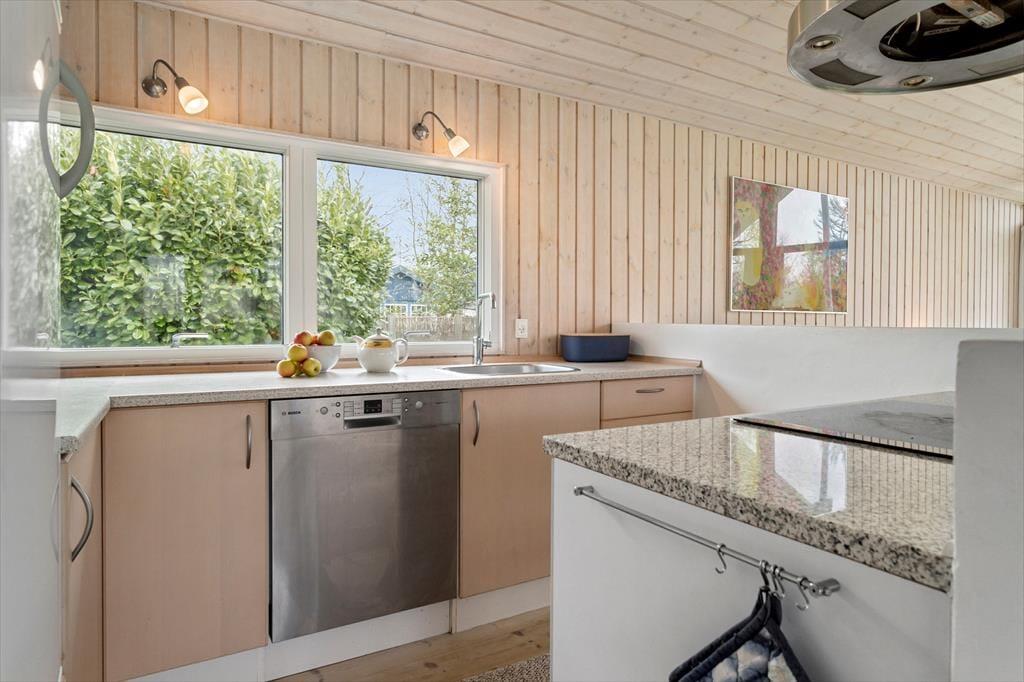 Das Ferienhaus ist ein sehr gepflegtes und einladendes Ferienhaus, in dem du dich sofort wie zu Hause fühlen wirst. Das Haus empfängt dich mit einer offenen und hellen Wohnküche, die gut mit dem Esstisch und dem Wohnzimmer verbunden ist. Von der Kücheninsel aus kannst du über das Wohnzimmer und in den Garten sehen. So kannst du bequem über den Töpfen und Pfannen stehen und ein Abendessen zubereiten, während du dich mit denjenigen unterhältst, die es sich im Wohnzimmer gemütlich gemacht haben. Der Essbereich bietet genügend Platz für alle und hat große Fenster, die viel Licht hereinlassen und den Blick auf den Garten freigeben. Die großen raumhohen Fenster setzen sich im Wohnzimmer fort, wo sich die Gartentür bis zur überdachten Terrasse öffnet. Das bringt die Umgebung direkt ins Wohnzimmer und macht es einfach, bei schönem Wetter auf die Terrasse zu gehen. Im Wohnzimmer gibt es auch eine Sofaecke und Sessel, auf denen du dich entspannen und deinen Urlaub genießen kannst. In der Mitte des Wohnzimmers steht ein Holzofen, den du ganz einfach anheizen kannst, um es dir so richtig gemütlich zu machen. Natürlich kannst du auch den Fernseher einschalten und dich bei einem guten Film entspannen. Neben der Küche und dem Wohnzimmer, in denen ihr sicher viele gemeinsame Stunden verbringen werdet, verfügt das Ferienhaus auch über zwei gute Schlafzimmer. Beide Zimmer haben bequeme Doppelbetten und viele Schränke. Die Aufteilung des Hauses bietet ausreichend Gelegenheit für gemeinsame Unternehmungen und Pausen. Das Haus verfügt über zwei Toiletten. Das eine Badezimmer hat eine große begehbare Dusche und ist hell und einladend. Die andere Toilette ist kleiner, bietet aber zusätzlichen Komfort für euch, wenn 4 Gäste im Haus wohnen. Der Eingangsbereich bietet einen zusätzlichen praktischen Raum, wenn ihr vom Schwimmen zurückkommt oder Jacken und Taschen ablegen wollt. Dieses Ferienhaus ist perfekt für dich, wenn du deinen Urlaub in einem hellen und funktionellen Haus verbringen möchtest, während der Komfort und die Umgebung auf höchstem Niveau sind.