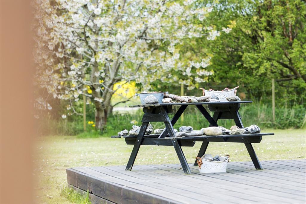 Dein Ferienhaus ist von einem schönen, großen Garten mit Bäumen und Büschen umgeben. Zahllose Stunden wirst du mit deinen Lieben auf der Terrasse und bei Gartenspielen auf der Grasfläche verbringen. Vom Eingangsbereich und vom Wohnraum aus gelangst du auf die gen Südwesten ausgerichtete Terrasse, die mit einem guten Platzangebot und Gartenmöbeln überzeugt. Auf ihr könnt ihr wunderbar die Mahlzeiten einnehmen und es auch im Anschluss auf einer Gartenliege gemütlich machen. Zu jeder Zeit wirst du hier ein sonniges oder auf Wunsch auch windgeschütztes Plätzchen finden. Terrasse und Garten ermöglichen es dir, die Ruhe und das Sommerwetter in vollen Zügen zu genießen.