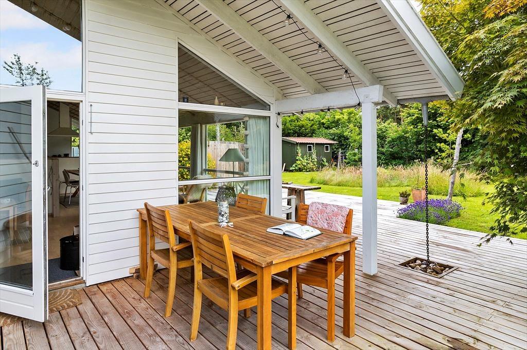 Große und kleine Urlauber verbringen in diesem schönen Urlaubsdomizil eine gemütliche und komfortable Auszeit inmitten der hübschen Natur der Ostseeinsel Samsø. Dein Haus beherbergt bis zu vier Erwachsene und zwei Kinder. Dank der Fenster in Richtung des Gartens, wirst du selbst während der Zubereitung der täglichen Mahlzeiten in der offenen Küche mit einem schönen Ausblick ins Grüne verwöhnt. Eine halbhohe Mauer trennt die Küche vom Essplatz, an dem ihr auch außerhalb der Mahlzeiten gern beisammensitzen und vergnügte Spieleabende verleben werdet. Aufgrund der offen gestalteten Räumlichkeiten genießt du selbst beim Kochen die Nähe und Gesellschaft deiner Mitreisenden. Der Essplatz ist vor der großen Fensterfront platziert, die dem Raum einen herrlichen Tageslichteinfall verleiht und Ausblick in den Garten gewährt. An schönen Tagen stellst du die Terrassentüren weit auf und servierst das Essen im Freien. Der Wohnraum lädt nach einem langen erlebnisreichen Tag zu entspannten Stunden mit einem guten Buch und zum ein oder anderen gemütlichen Fernsehabend ein. Für ein Maximum an Gemütlichkeit und Wärme sorgt derweil der mittig im Raum platzierte Kaminofen. Eine Terrassentür führt direkt hinaus auf die gen Westen weisende Terrasse. Hinter der Sofaecke begrüßt dich ein kleines gemütliches Eckchen mit einem Bett. Diese kuschelige "Höhle" bietet sich sehr gut als Schlafgelegenheit für die kleinen Urlauber an. Der offen kombinierte Küchen-, Wohn- und Essbereich ist das Herzstück deines Ferienhauses. Die großen Fenster und die hohen Decken verleihen dem Raum eine ansprechende Wohnatmosphäre mit besten Möglichkeiten für erholsame, entspannte Stunden im Kreise der Lieben. Die beiden gemütlichen Schlafräume beinhalten jeweils ein Doppelbett und Schrankfläche. Im Whirlpool und in der Sauna deines Badezimmers genießt du traumhaft erholsame Momente voller Wellnessflair. Dein Ferienhaus präsentiert sich mit hellen Holzwänden und Holzdecken sowie in schönen Farben durchweg gemütlich und stimmungsvoll. Viel Komfort versprechen die zeitgemäßen Annehmlichkeiten. Schönen, gelungenen Urlaubstagen am Maarup Østerstrand steht daher nichts im Wege.