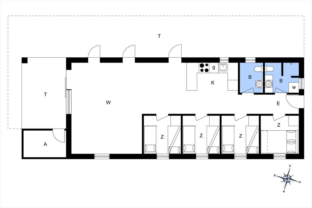Das Ferienhaus verfügt über vier Schlafzimmer und bietet Schlafmöglichkeiten für bis zu 10 Personen. Drei der Zimmer sind mit je zwei Einzelbetten und einem Etagenbett ausgestattet, während das vierte Zimmer ein Doppelbett hat. Es gibt zwei Badezimmer sowie eine Waschmaschine, sodass auch praktische Dinge während des Aufenthalts problemlos erledigt werden können.