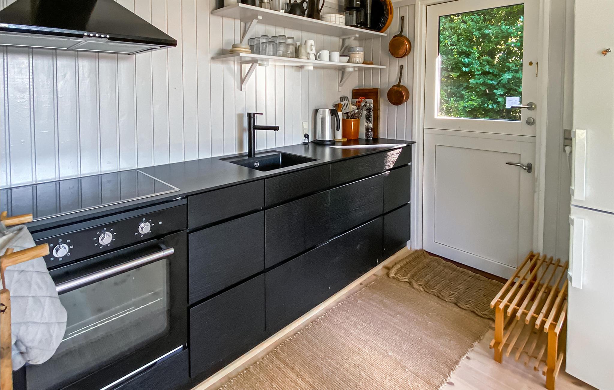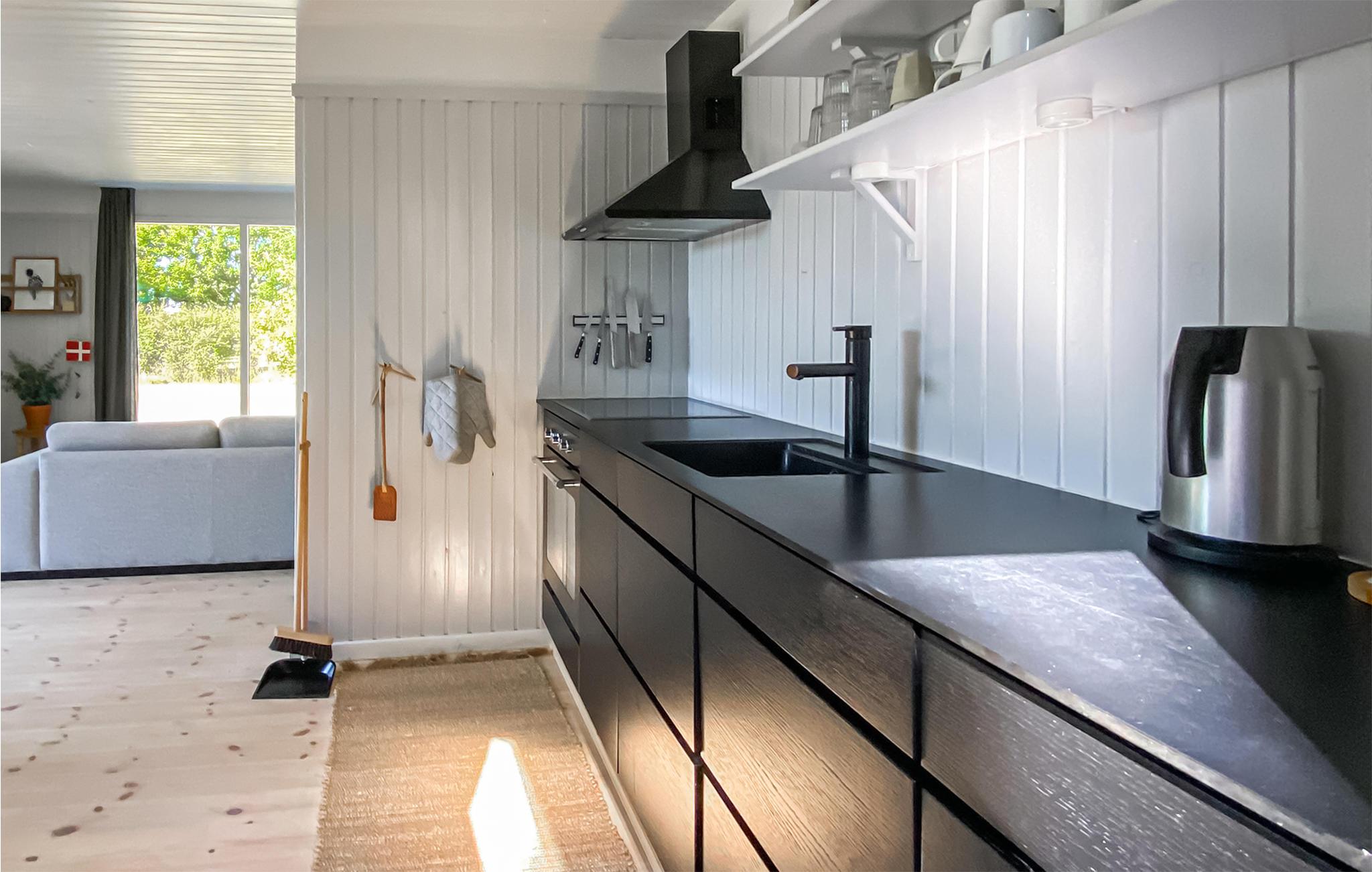 Dank der großzügigen Fensterfront verschiwmmen in diesem Ferienhaus fast die Grenzen zwischen Innen und Außen. Genießen Sie abends gemütliche gemeinsame Abende bei gutem Essen und dem behaglich knisternden Feuer im Kaminofen. Lassen Sie den Blick vom Sofa ins Freie schweifen und genießen Sie die Ruhe.