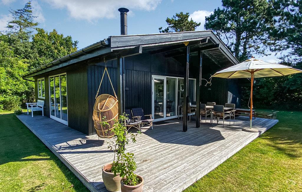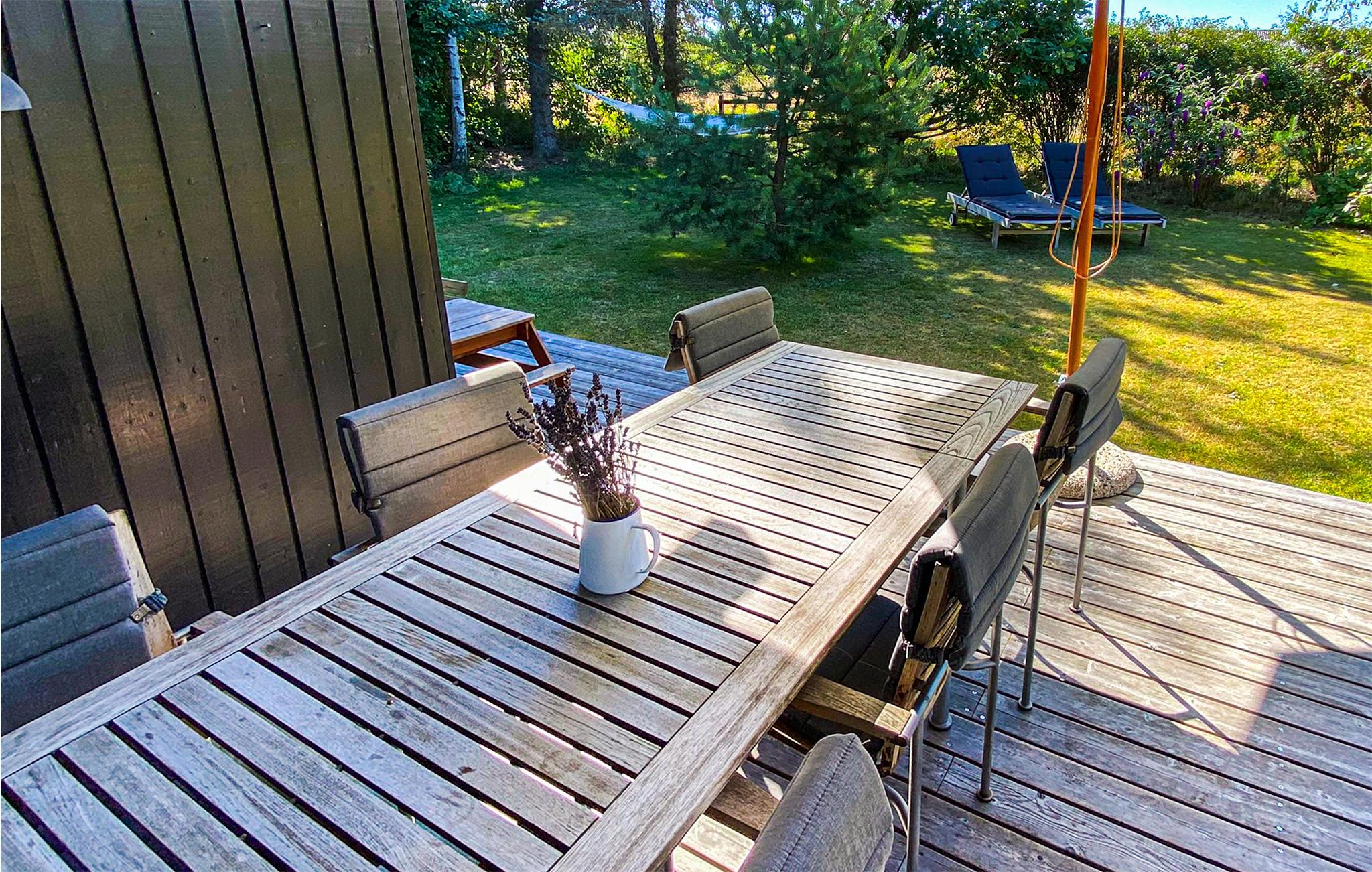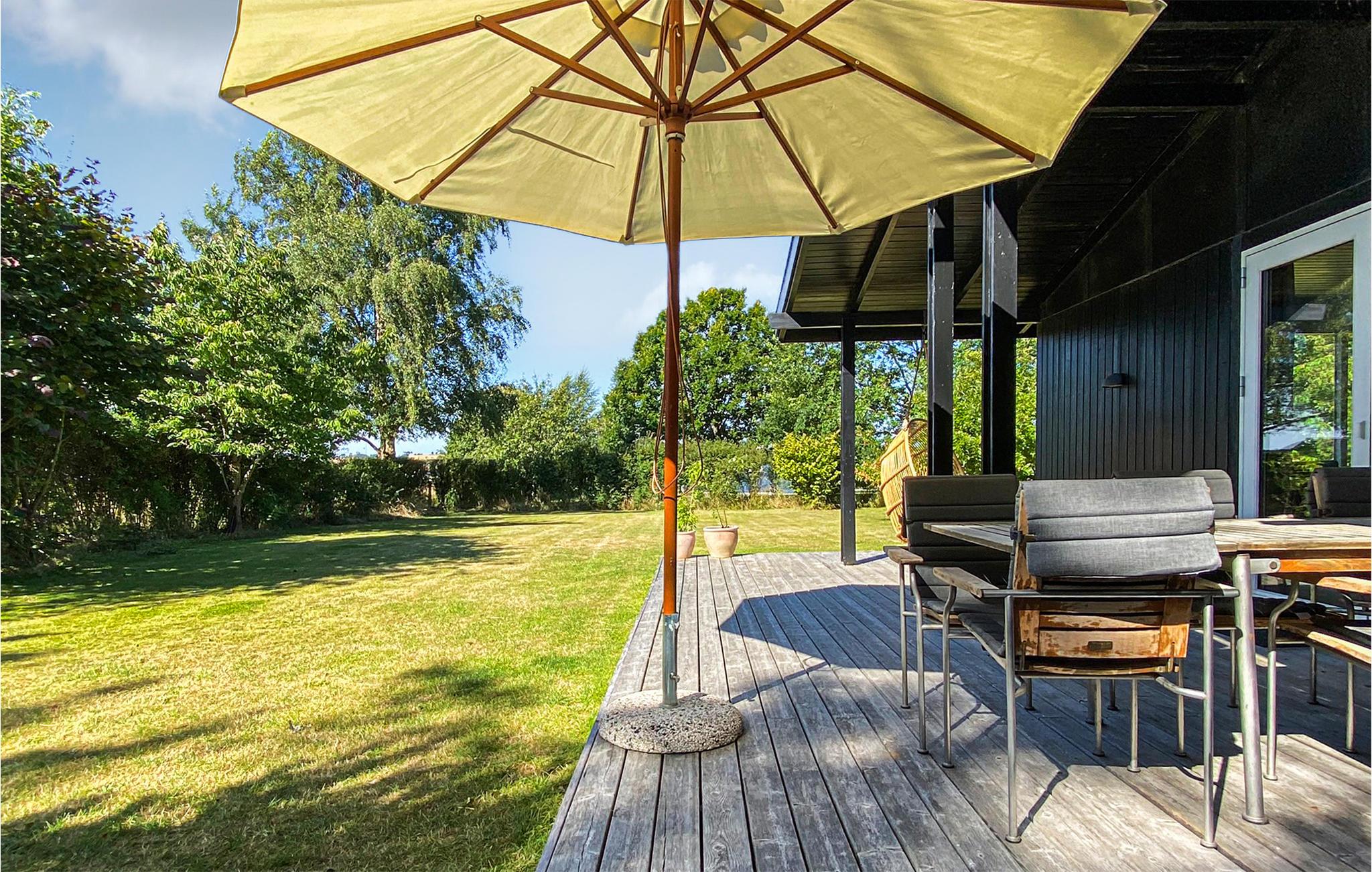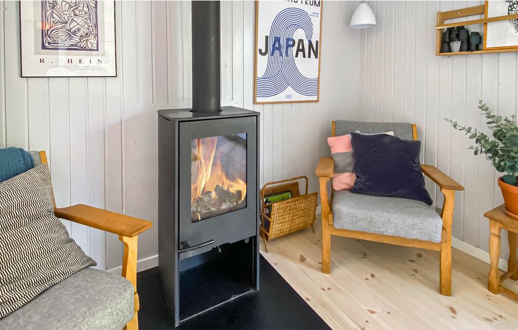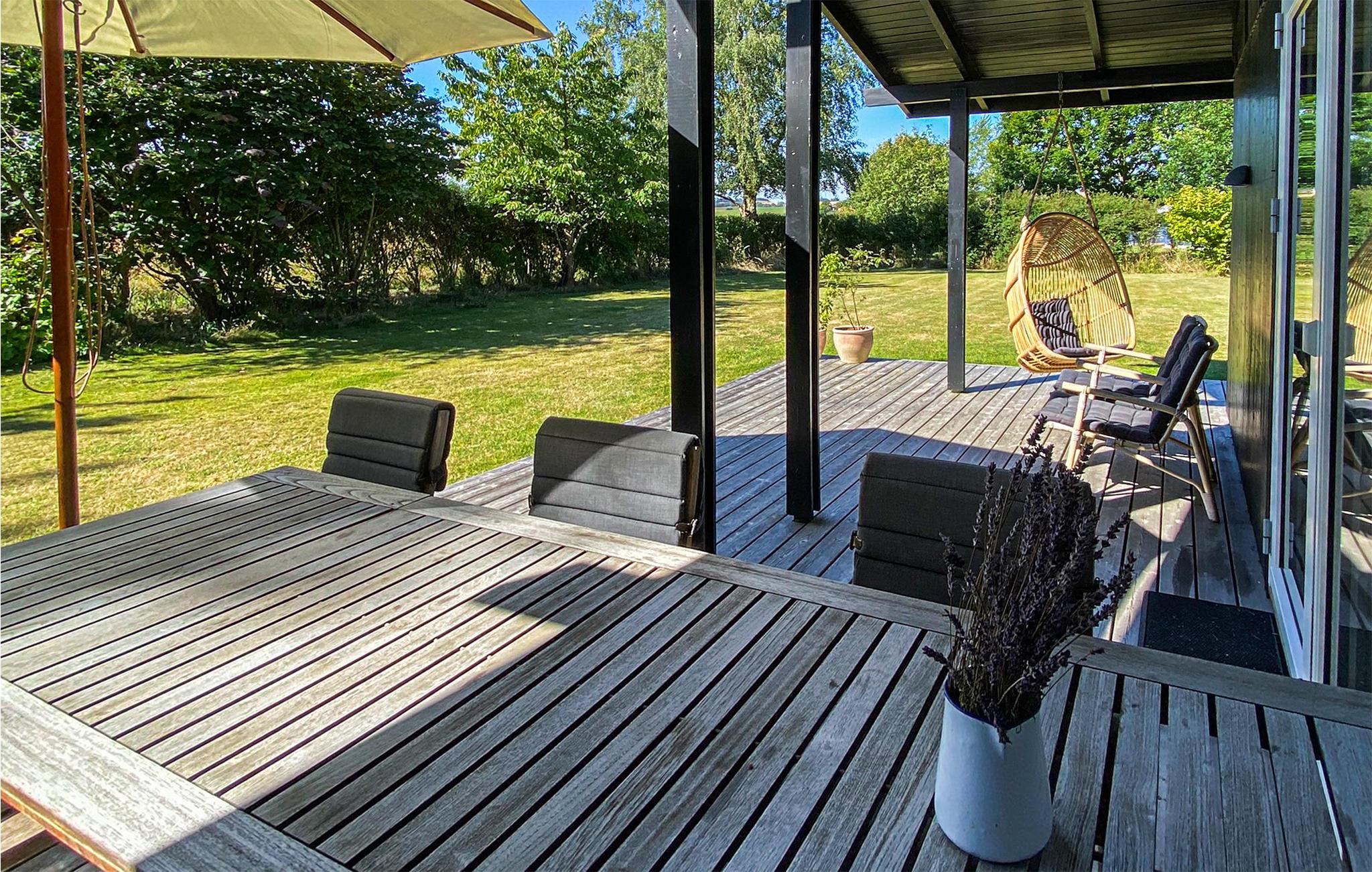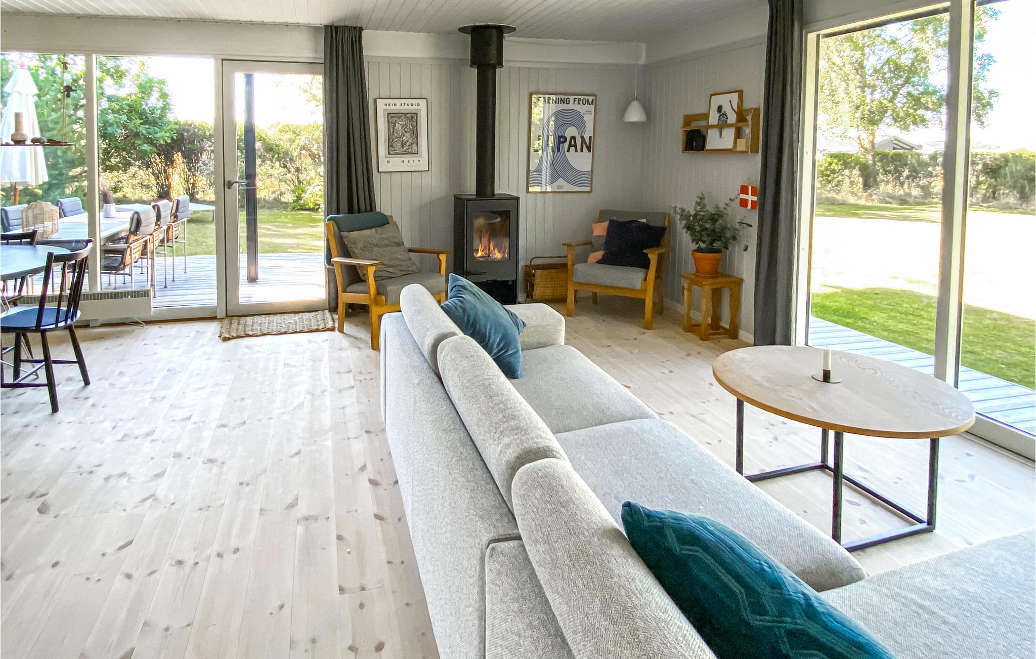 Modernes Ferienhaus auf Samsø mit Kamin, Terrasse und idyllischem Garten für erholsame Urlaubstage.