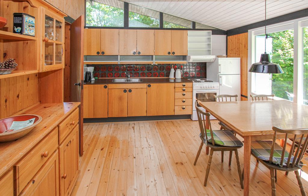Das Haus bezaubert mit gemülichen Räumen, die liebevoll im Retrostil möbliert sind. Zahlreiche Elemente aus Holz tun ihr Übriges für Wohlfühlatmosphäre im Ferienhaus. Freuen Sie sich auf gemeinsames Kochen in der offenen Küche und heitere Abende am prasselnden Feuer im Kaminofen.