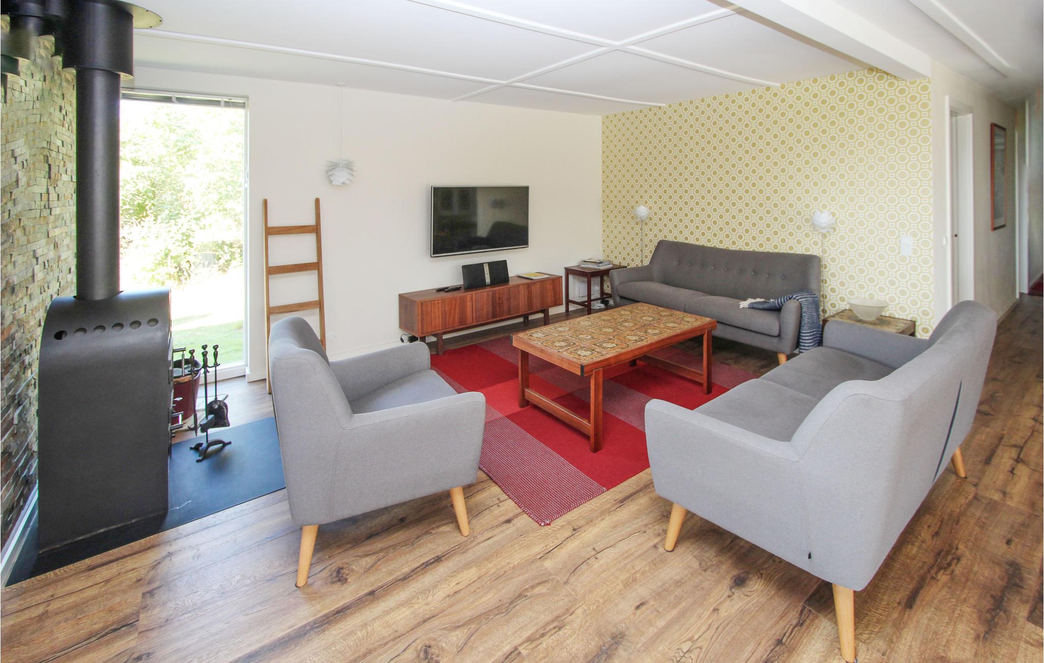 Modern und wohnlich eingerichtet empfängt das Ferienhaus seine Gäste. Hier gibt es mehrere gemütliche Ecken, in denen Sie alleine oder gemeinsam herrlich entspannen können. Bodentiefe Fenster lassen viel Licht in die Räume und ermöglichen es Ihnen, den tollen Blick auf die Landschaft voll auszukosten. In der stilvollen Küche macht das gemeinsame Kochen so richtig Spaß- abends können Sie in der Sauna entspannen und auf der Terrasse mit einem Getränk den Tag ausklingen lassen.