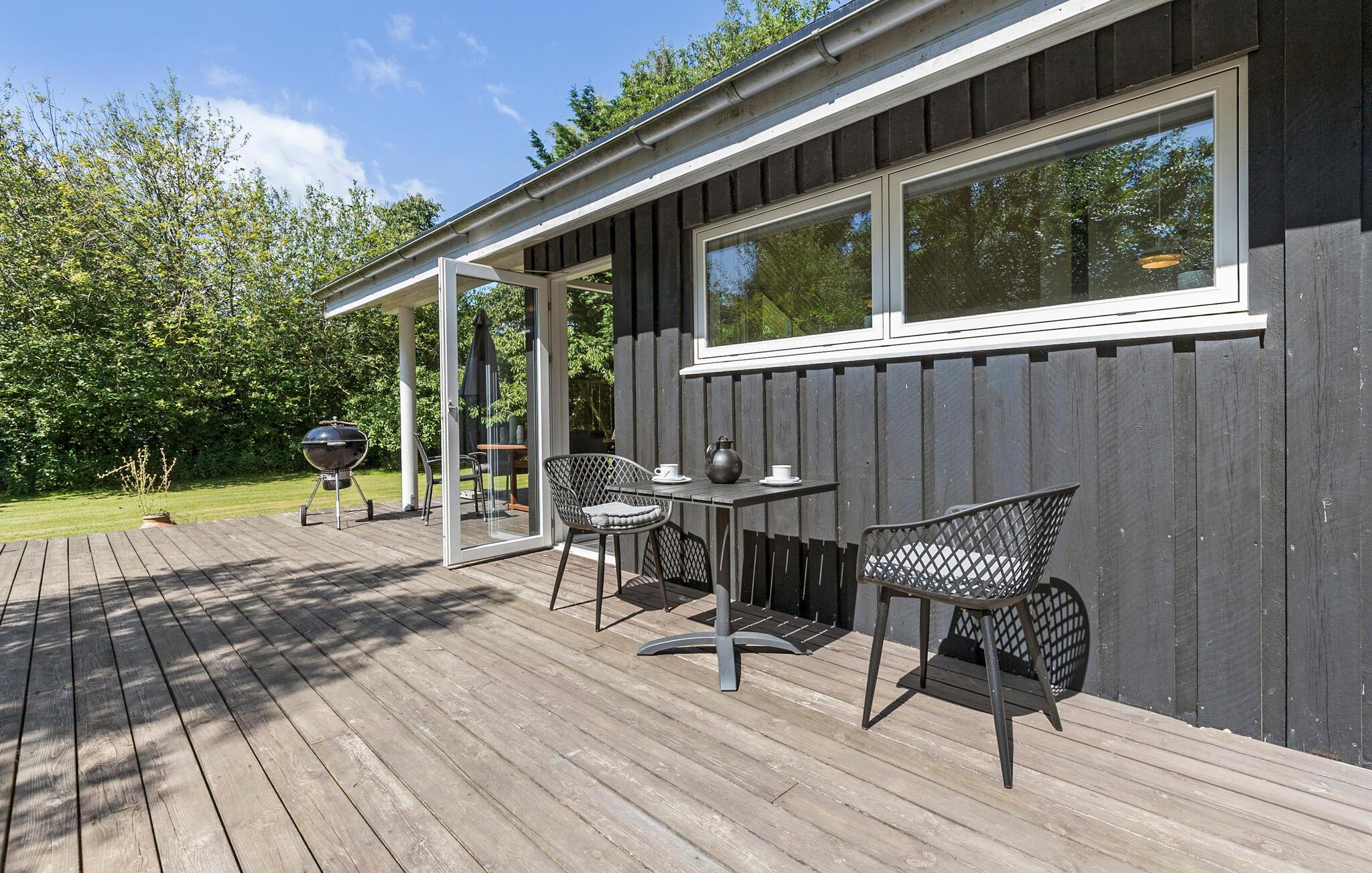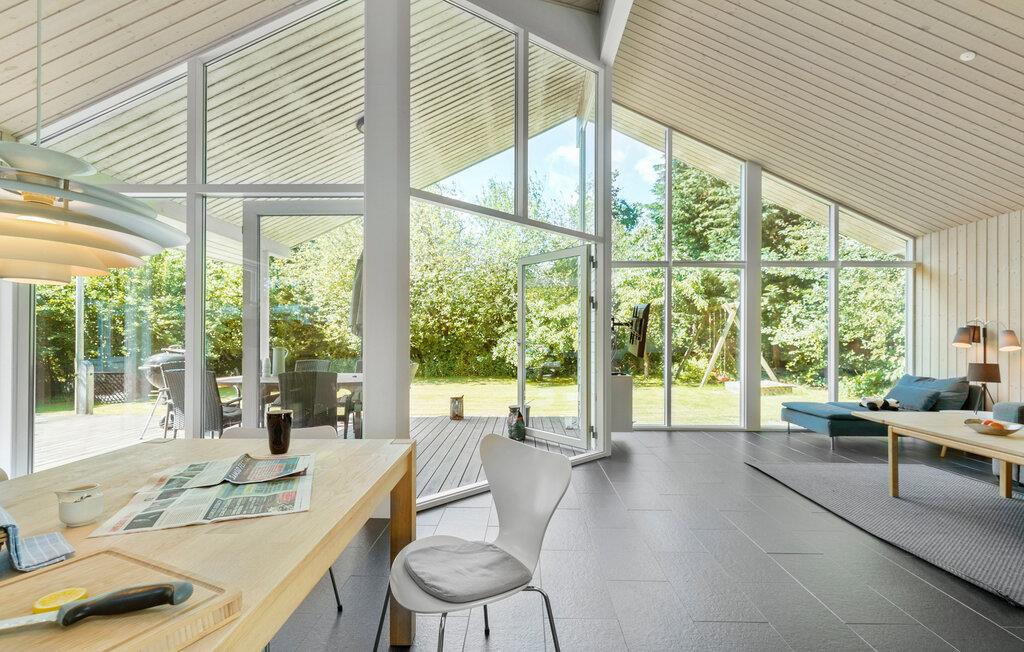 Lassen Sie sich von der einladenden Atmosphäre dieses Hauses schon beim Betreten der lichtdurchfluteten Räume verzaubern. Hier ist für die ganze Familie Platz und Sie entspannen in stilvollem Rahmen. Genießen Sie in aller Ruhe den ersten Kaffee des Tages auf der Terrasse. Bereiten Sie das Frühstück in der offenen Küche vor, vom Duft angelockt, klettern bald die Kinder vom Schlafboden herunter und füllen das Haus mit Leben. Machen Sie es sich mit einem Buch im Liegestuhl bequem, während die Kinder auf dem Grundstück herumflitzen und sich auf der Schaukel und im Sandkasten vergügen. Nachmittags können Sie zusammen zum schönen Badestrand schlendern, bevor der Urlaubstag mit Grillessen auf der Terrasse zuende geht.