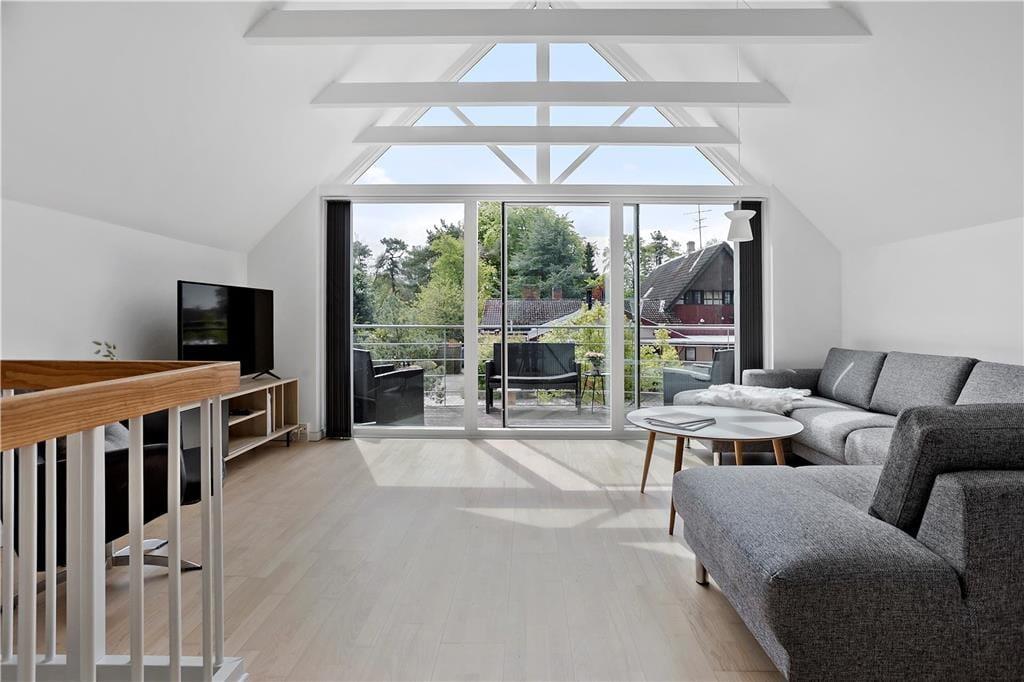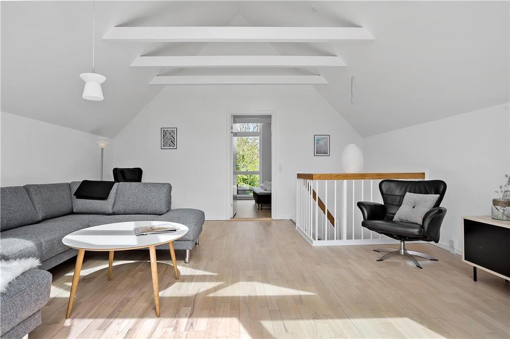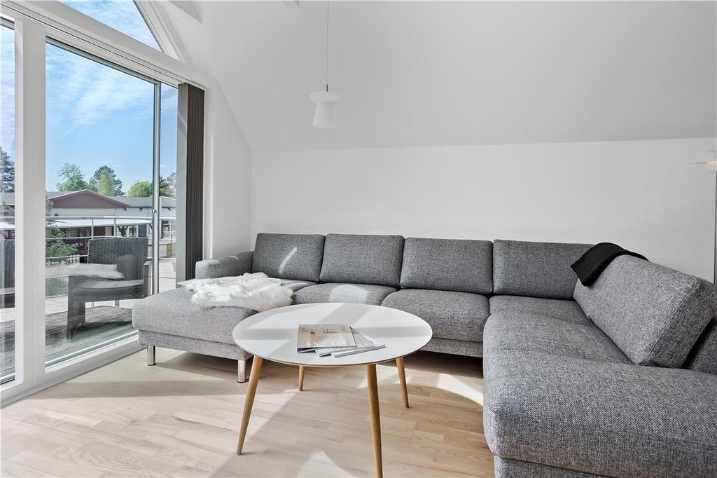 Im ersten Stock finden Sie ein Schlafzimmer mit einem Doppelbett und gutem Stauraum, ein Badezimmer mit Dusche, WC und Whirlpool sowie ein großes schönes Wohnzimmer mit Sofa und TV. Vom Wohnzimmer aus haben Sie Zugang zu einem schönen Balkon, von dem aus Sie auf das Wasser schauen können.