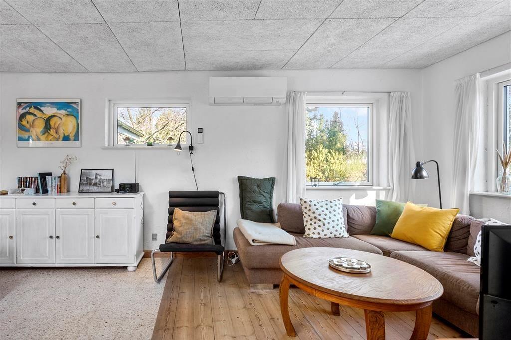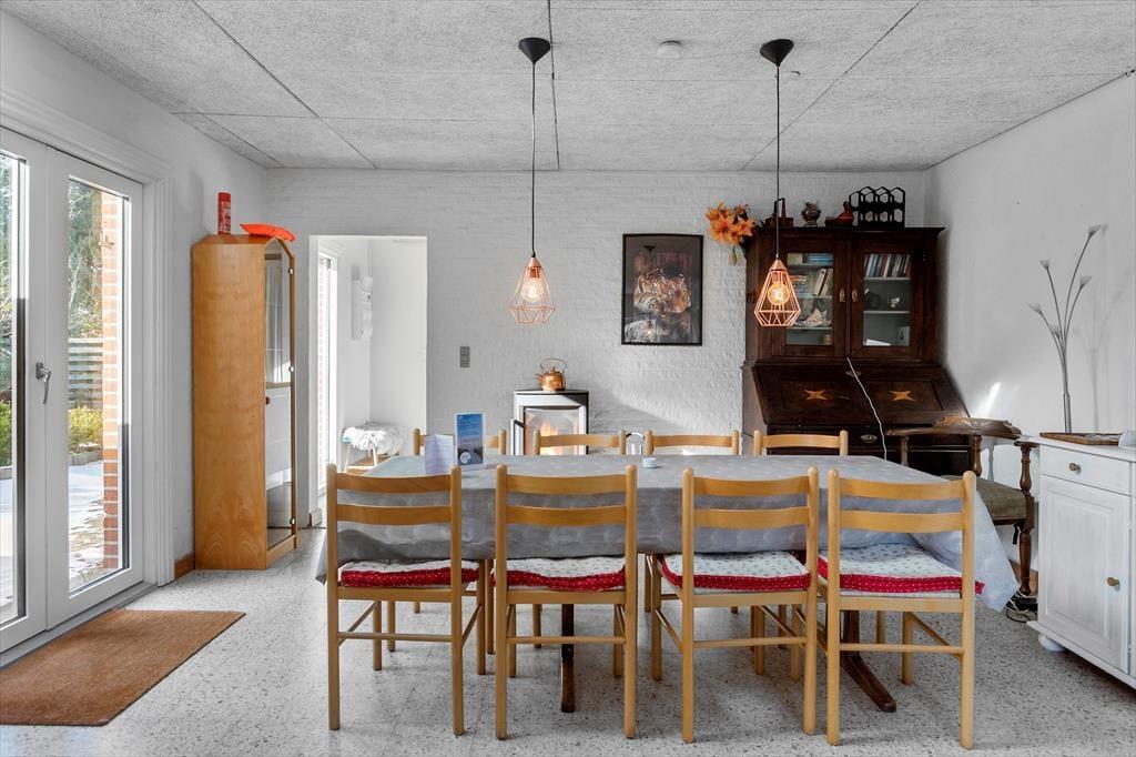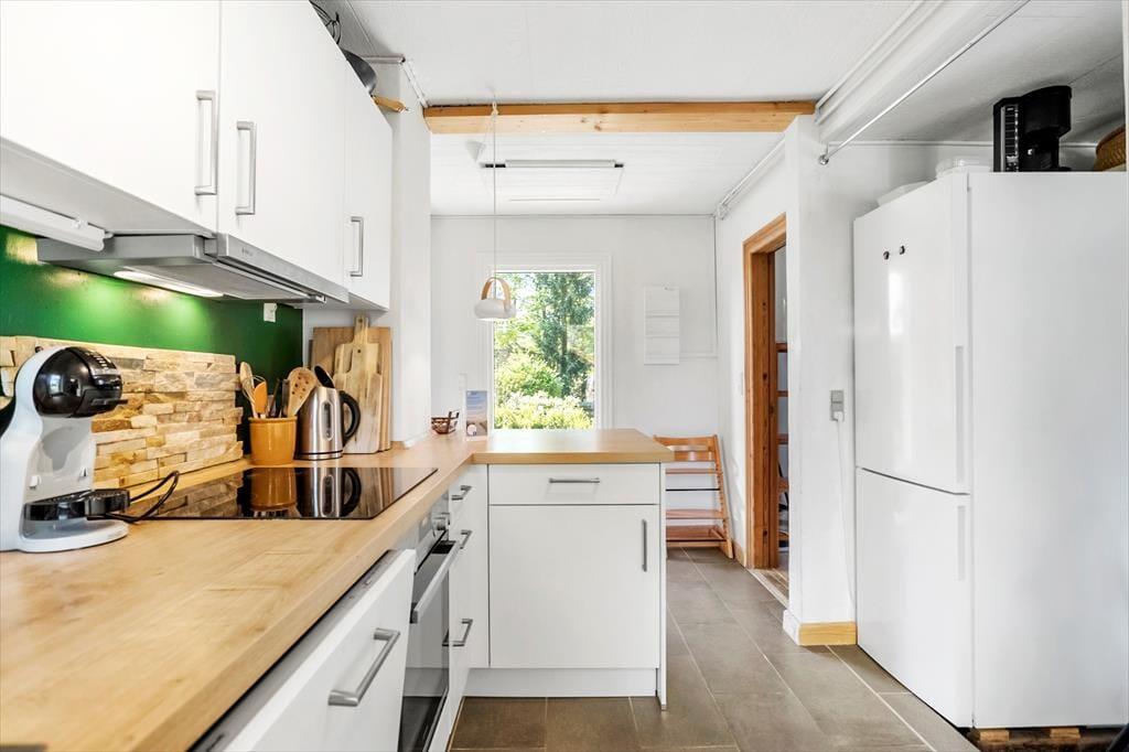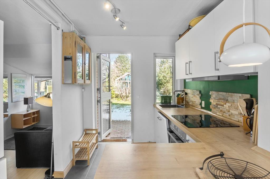 Das Ferienhaus enthält: Eingang in die Küche, 3 Zimmer; 1 mit Doppelbett, 1 mit Etagenbett und 1 mit Doppelschlafcouch (Achtung, der Kühlschrank ist im Zimmer), Wohn- und Esszimmer mit Zugang zur Terrasse/Garten, sowie ein Badezimmer mit Dusche, WC, Waschmaschine u Trockner. Das Haus erscheint in brauchbarem Zustand, ist aber ein originales älteres Ferienhaus mit absolut traumhafter Lage.