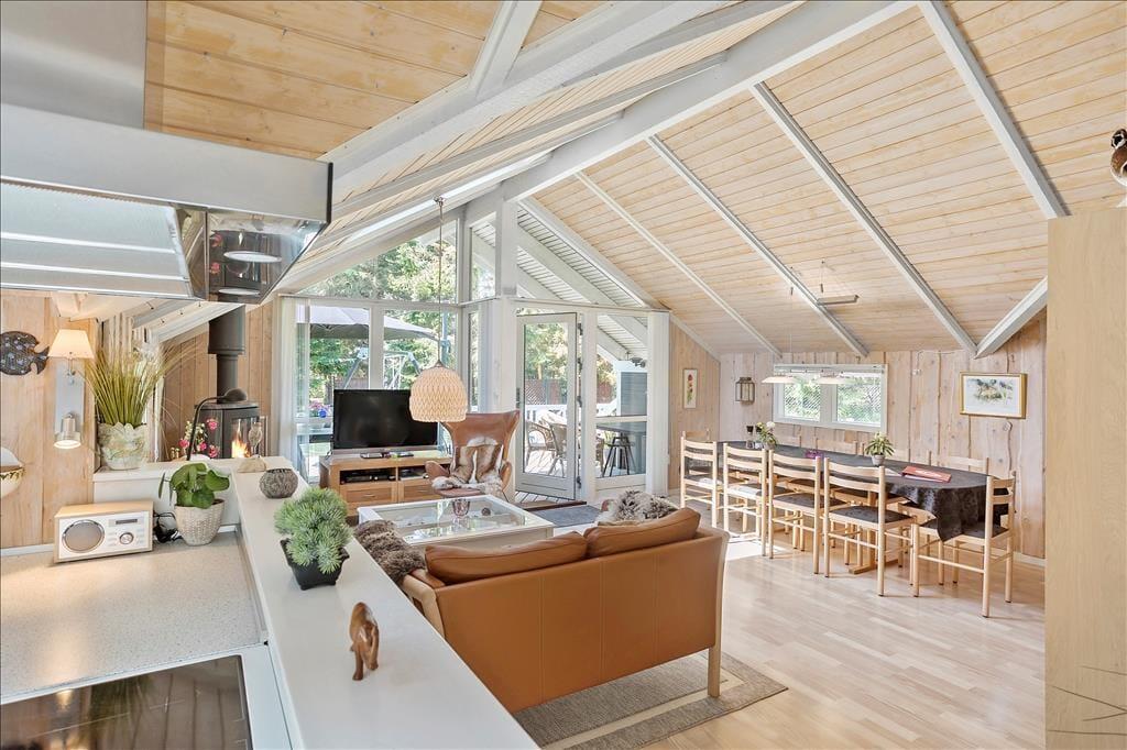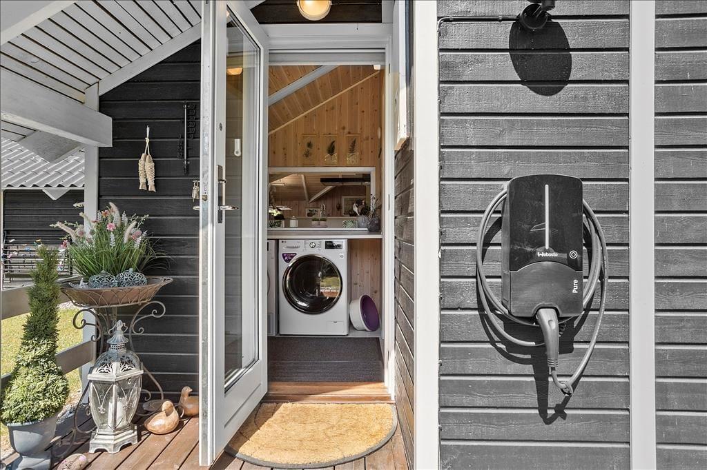 Das Haus hat eine schöne Terrasse, und ist ideal für den Urlaub das ganze Jahr über. Die teilweise überdachte Terrasse, sowie ein guter Garten mit Schaukelgestell, ermöglicht die Nutzung von Haus und Garten bei jedem Wetter.