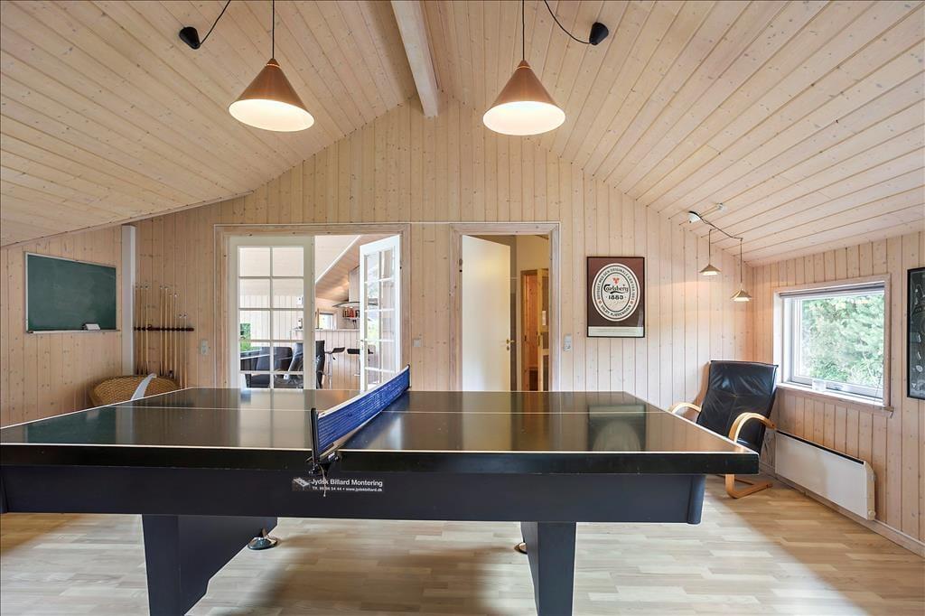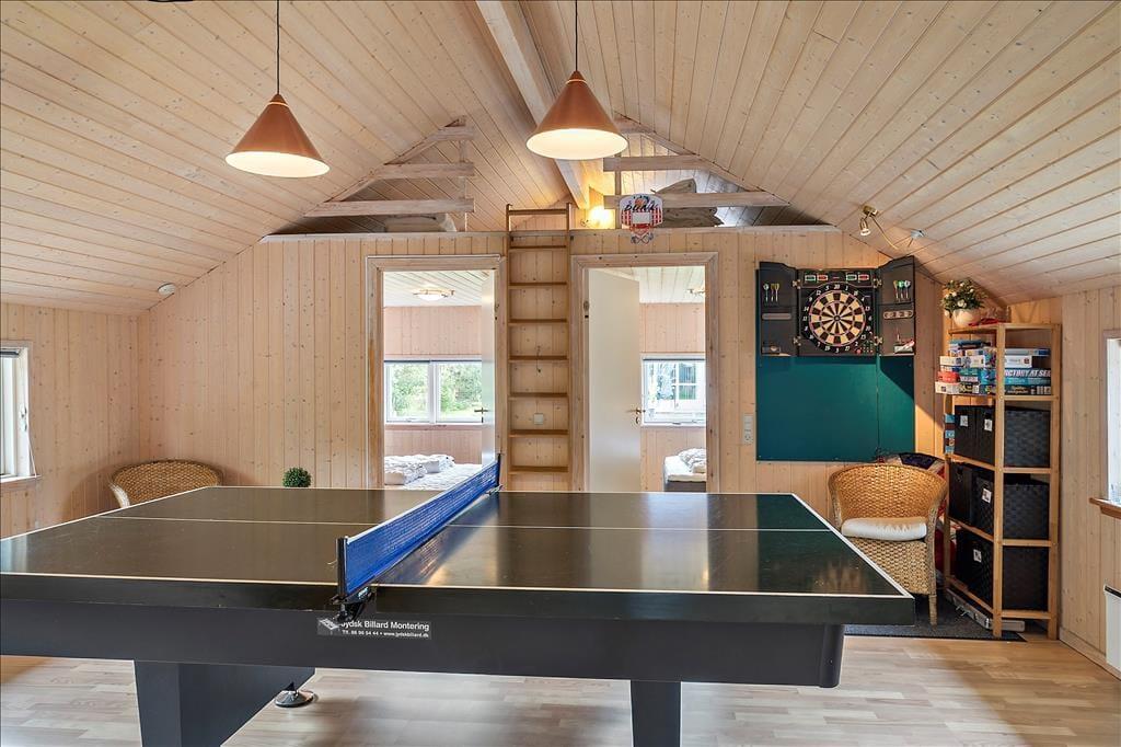 Das Ferienhaus verfügt über: 4 gute Schlafzimmer und 1 Loft mit 4 Matratzen, ein großes Badezimmer mit Spa, Sauna, WC und Dusche, sowie ein Badezimmer mit WC, Dusche, Waschmaschine und Trockner, Wohnküche mit Essecke Sofaecke , außerdem verfügt das Ferienhaus über einen großen Aktivitätsraum mit Tischtennis, Billardtisch und Darts. Sowie Ausgang vom Wohnzimmer auf eine schöne Terrasse.