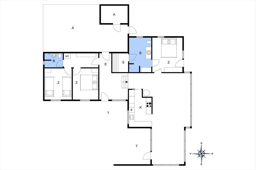 Das Haus empfängt Sie mit einer einladenden Eingangshalle und verfügt über drei gut geschnittene Schlafzimmer – eines davon mit zwei Einzelbetten, die beiden anderen mit jeweils einem Doppelbett. Zwei Badezimmer mit WC, Dusche und Sauna sorgen für Komfort und Entspannung.