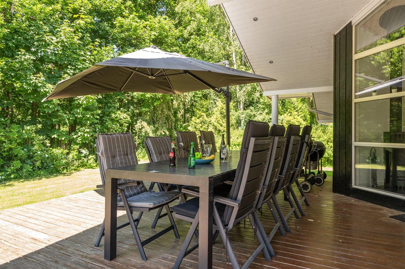 Die Ferienunterkunft liegt auf einem 930 m² großen Gartengrundstück. Das Grundstück ist eingezäunt. Die Entfernung zum Meer beträgt 1300 m. Die Entfernung zu einem See beträgt 750 m. Die nächste Einkaufsmöglichkeit liegt 400 m entfernt. In einem Abstand von 1500 m gibt es einen Golfplatz. Außerdem gibt es 20 m² überdachte Terrasse. Schaukel. Sandkasten. Kinderspielhaus. Spielturm. Rutsche. Fußballtor. Es steht ein Grill zur Verfügung. Es ist ein Ladestecker für Elektroautos installiert. Parkplatz auf dem Grundstück.