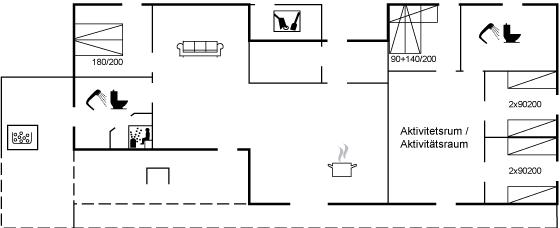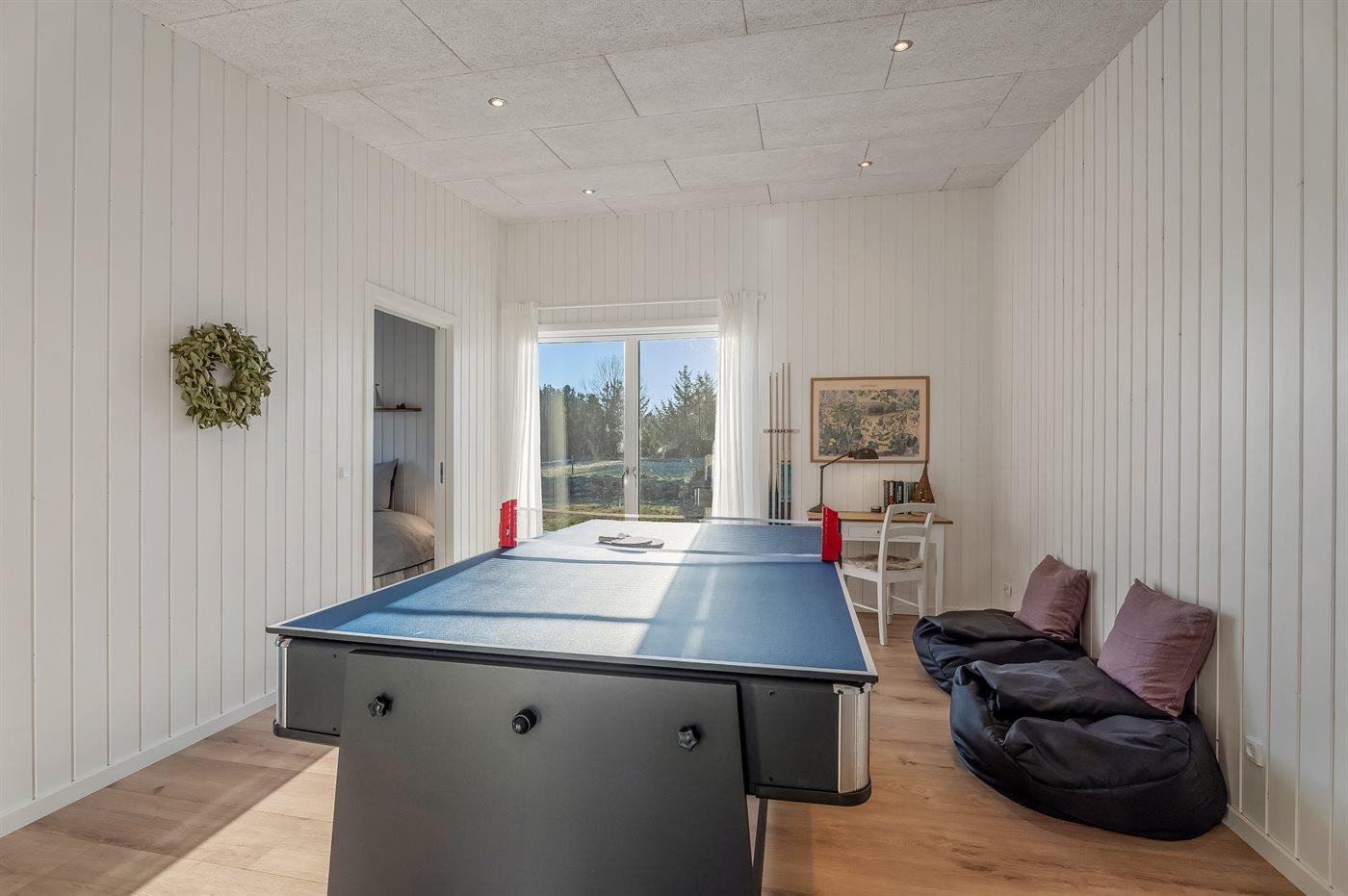 Im Aktivitätsraum gibt es zahlreiche Unterhaltungsmöglichkeiten für Kinder und Erwachsene, darunter Billard, Tischtennis und Airhockey. Hier befindet sich auch ein kleiner Schreibtischarbeitsplatz. Im gesamten Haus sorgt die Fußbodenheizung für Komfort.
