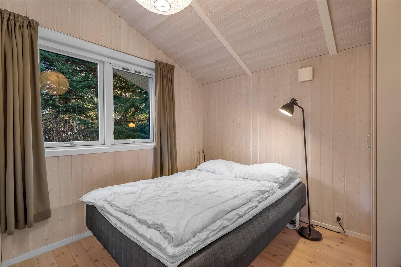 Ein geräumiges und gepflegtes Ferienhaus, das auf einem besonders schönen Gartengrundstück im südlichen Teil von Marielyst liegt. Das Haus besteht aus zwei Abteilungen, die durch eine kleine überdachte Terrasse voneinander getrennt sind. Die eine Abteilung enthält einen Aktivitätsraum, zwei gute Schlafzimmer und ein Badezimmer. Die andere Abteilung enthält eine Küche, ein großes Wohnzimmer mit Kaminofen, zwei Schlafzimmer und ein schönes Badezimmer mit Whirlpool und Zugang zur Sauna.