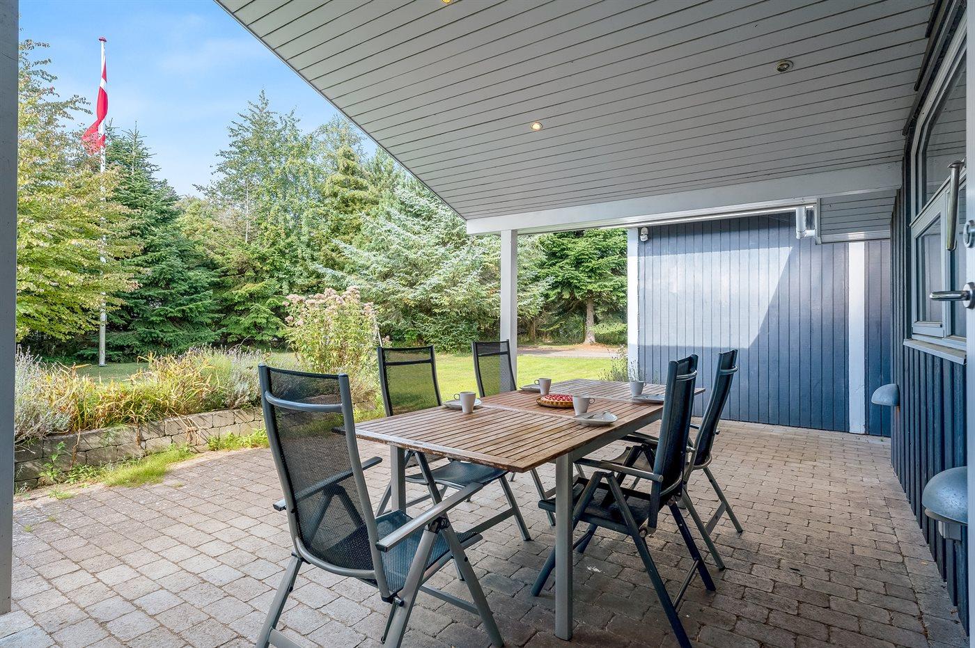 Das Haus ist von mehreren schönen Terrassen umgeben, sowohl offene als auch überdachte, die zum Sonnenbaden, Entspannen und Grillen an langen Sommerabenden einladen. Nur wenige hundert Meter vom Haus entfernt befindet sich der Wald ” Bøtøskoven”, wo du mit ein wenig Glück die wilden Pferde sehen kannst, die frei in der Natur leben.