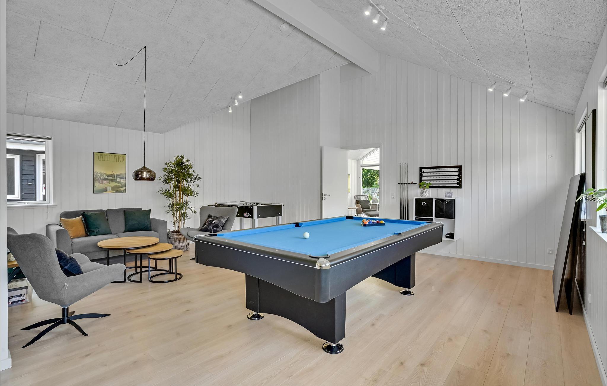 Wenn das Wetter es zulässt, können Sie das Essen auch auf der gemütlichen und teilweise überdachten Terrasse des Hauses genießen. Dort steht auch ein Grill bereit. Der Pool des Hauses misst 18 m² und ist mit einer Wasserrutsche und einer römischen Treppe ausgestattet. Die weitere Unterhaltung wird im Aktivitätsraum des Hauses fortgesetzt. Hier können Sie sich im Tischtennis, Billard und Tischfußball duellieren. Sie können auch auf der PlayStation 4 des Ferienhauses antreten, wenn Sie Ihre eigenen Spiele mitbringen.