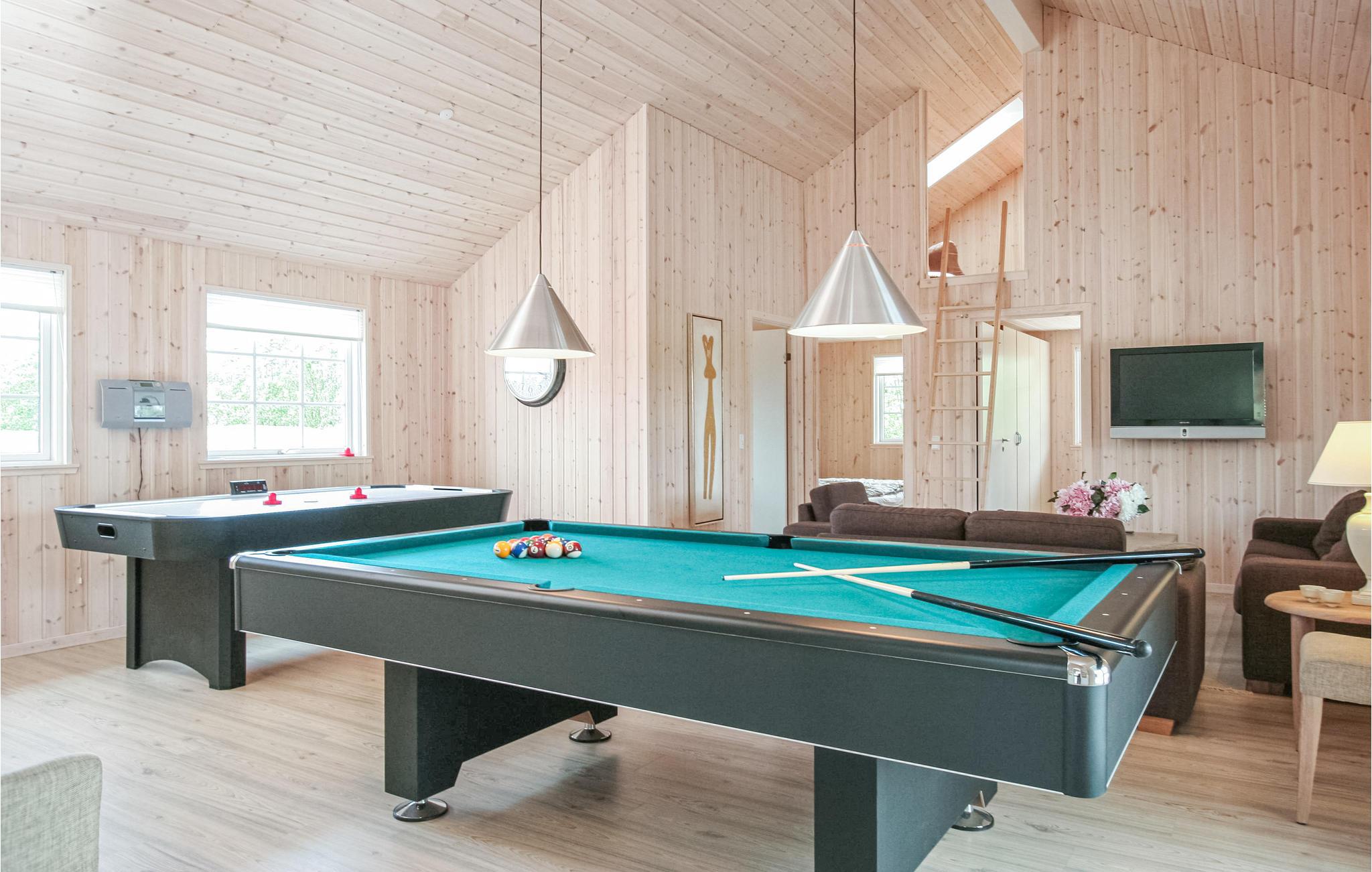 Ein schönes Haus auf gepflegtem Gartengrundstück einen kurzen Fußweg vom langen, weißen Strand entfernt. Moderne Einrichtung, interessantes Design und viel Platz lassen Sie mit Ihrer Familie oder Freunden entspannen. Die große, helle Wohnküche besitzt Oberlichtfenster, die für lichtdurchflutete Räumlichkeiten sorgen. Alle 7 Schlafzimmer und die 2 Hängeböden sind mit komfortablen Betten, bzw. Matratzen ausgestattet. Im Aktivitätsraum und im Poolbereich wird Ihnen Unterhaltung für mehrere Stunden täglich geboten. Schöne Ferien sind hier jederzeit möglich.