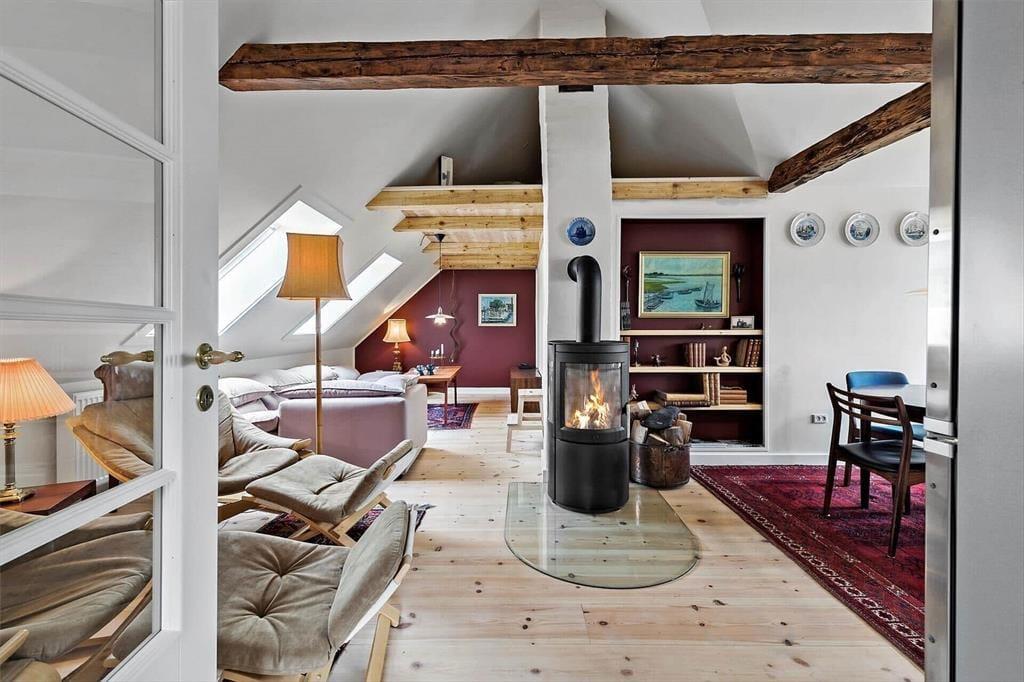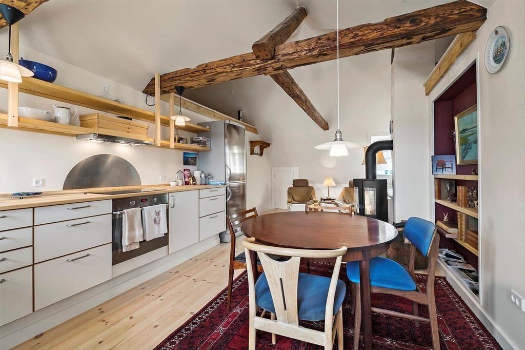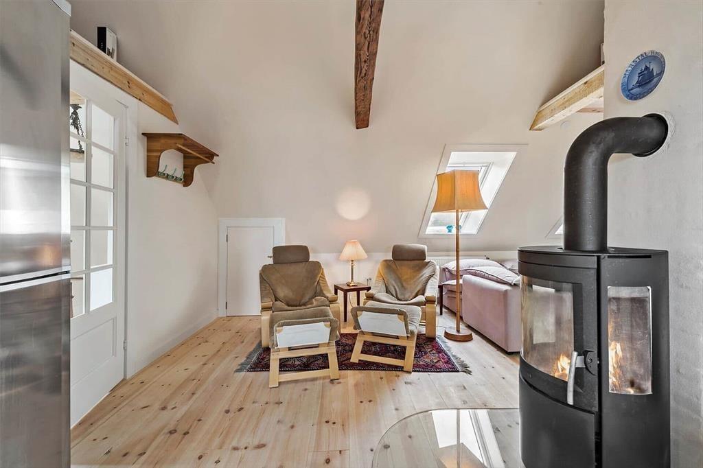 Die Wohnung ist hell und stilvoll eingerichtet, wobei sichtbare Balken und hohe Decken eine gemütliche Atmosphäre schaffen. Die offene Küche mit Essbereich ist das Herz des Hauses, mit einem zentral platzierten Kaminofen, der an kühlen Tagen Wärme und Gemütlichkeit verbreitet. Hier kannst du den Blick auf das Meer genießen, während du die Mahlzeiten in der gut ausgestatteten Küche zubereitest. Das Wohnzimmer bietet komfortable Möbel, die zu entspannenden Stunden mit einem guten Buch oder einem Film auf dem Bildschirm einladen. Das große Schlafzimmer ist mit bequemen Betten und einer ruhigen Atmosphäre eingerichtet, sodass du eine gute Nachtruhe genießen kannst. Das Badezimmer ist modern eingerichtet mit schönen Details, die während des gesamten Aufenthalts für Komfort sorgen.
