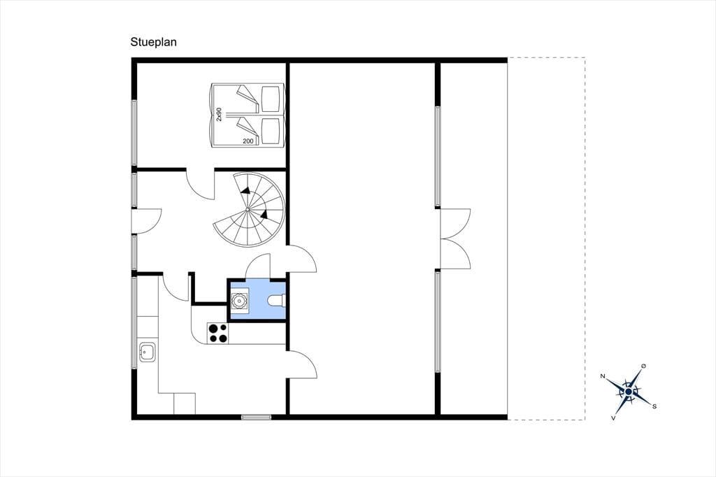 Das Haus verfügt über ein Wohnzimmer mit TV/Chromecast und vielen Kanälen, mit Zugang zu einer Südterrasse. Die Küche verfügt über einen Backofen, eine Mikrowelle und einen Geschirrspüler und ist sehr gut ausgestattet. Es gibt ein kleines Badezimmer mit Fußbodenheizung und ein Schlafzimmer mit einem Doppelbett.