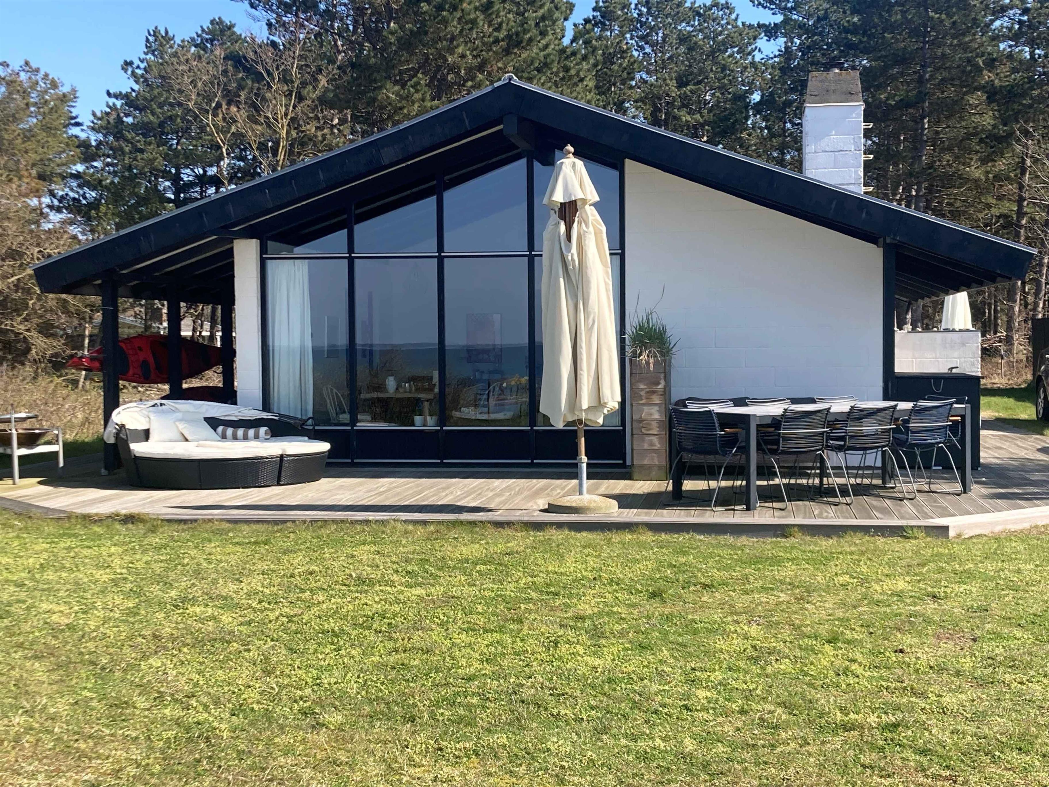 Genießen Sie einen Urlaub in diesem gemütlichen Ferienhaus auf einem 1895 m2 großen Strandgrundstück mit dem schönsten Panoramablick über die Bucht von Dalby. Das Haus liegt nicht weniger als 10 Meter vom Wasser entfernt, also gibt es keine Entschuldigung für ein schönes Bad. Das Ferienhaus verfügt über eine neue, helle und gut ausgestattete Küche in offener Verbindung zum Wohnzimmer mit viel Licht durch die großen Fenster. Von hier aus können Sie sich darauf freuen, den fantastischen Panoramablick auf das Meer zu genießen und sich nicht zuletzt bei Brettspielen, guten Gesprächen, leckerem Essen und allem, was Ihnen sonst noch einfällt, zu entspannen. Darüber hinaus verfügt das Haus über 3 Schlafzimmer mit 2 Doppelbetten (eines ist 140 cm breit), 1 Einzelbett und 1 Etagenbett und 2 Badezimmer, von denen nur eines eine Dusche hat. Das Haus ist geeignet für 4 Erwachsene und 3 Kinder. Zum Haus ist ein schöner Naturgrund mit Platz für Spiel und Spaß. Verfügbar sind u.a. Trampolin, Fußballtor, Tennisnetz und Gartenspiele. Im Außenbereich finden Sie außerdem 2 große Sonnenterrassen, die zum Meer ausgerichtete nach Südwesten, sodass Sie den ganzen Nachmittag und Abend Sonne haben. Freuen Sie sich auf laue Sommerabende auf der Terrasse mit Grillabenden, guten Gesprächen und den schönsten Sonnenuntergängen. Das Haus wird mit einem Holzofen und einer Wärmepumpe beheizt, und WLAN ist verfügbar. Es gibt keine TV-Kanäle, aber im Fernseher wurde ein Chrome-Cast-Dongle installiert, sodass das Streamen über eigene Dienste möglich ist. In weniger als 30 Minuten erreichen Sie die Stadt Odense mit allerlei Erlebnissen und Aktivitäten für Jung und Alt. Besuchen Sie zum Beispiel H.C. Andersens Museum, das Einkaufszentrum Rosengaardscenteret oder der Odense Zoo. In Kerteminde (ca. 15 Autominuten) können Sie unter anderem Fjord und Belt besuchen und Minigolf spielen. Achtung: Wird nicht für gewerbliche Nutzung vermietet.
