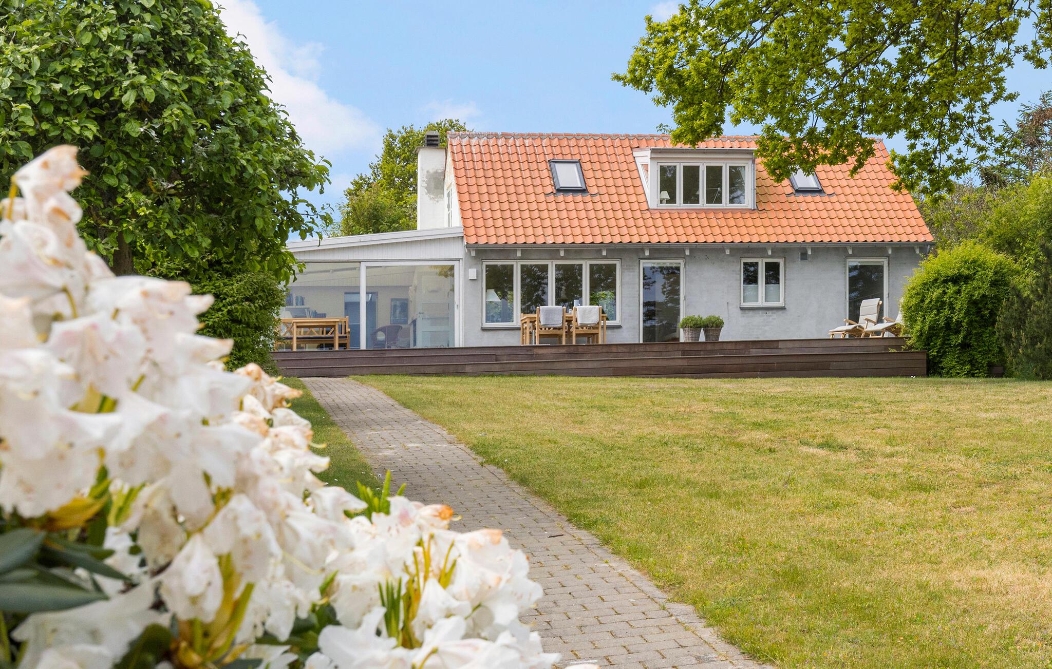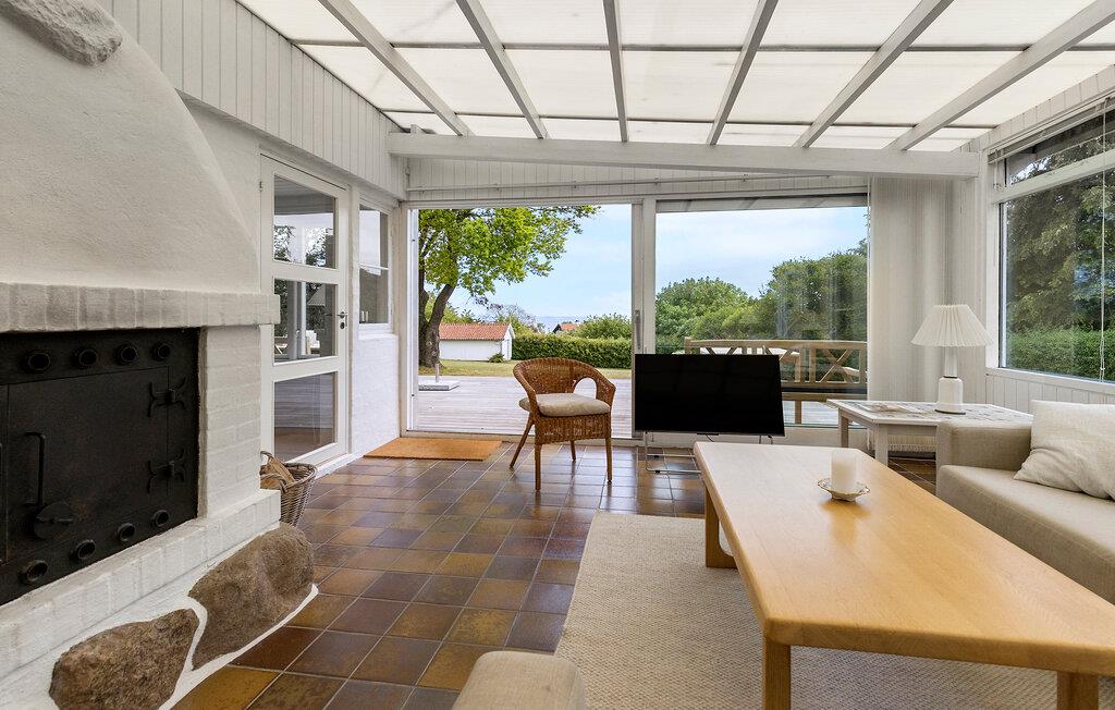 Modernes Ferienhaus mit Meerblick, großem Garten und Kamin in Melsted auf Bornholm.