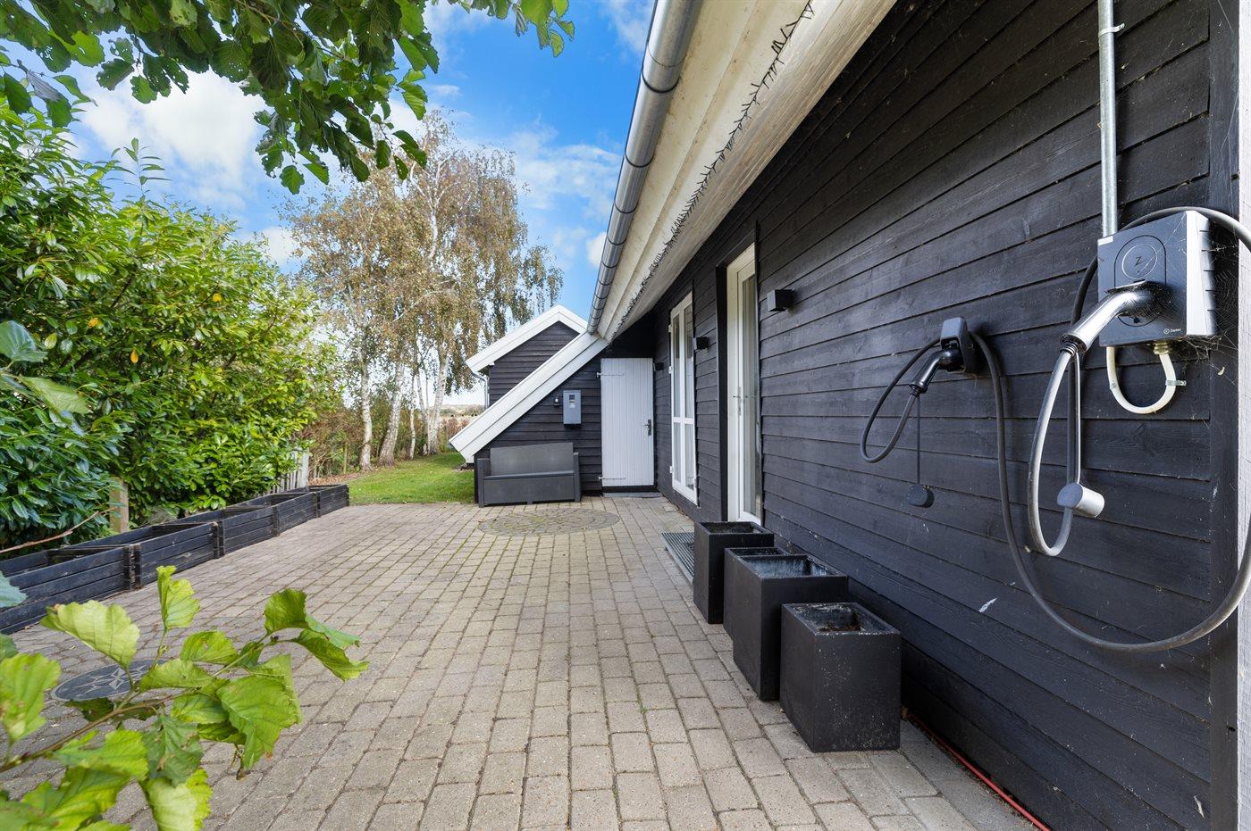 Die Ferienunterkunft liegt auf einem 675 m² großen Gartengrundstück. Das Grundstück ist eingezäunt. Die Entfernung zum Meer beträgt 250 m. Die nächste Einkaufsmöglichkeit liegt 2000 m entfernt. In einem Abstand von 5600 m gibt es einen Golfplatz. Es steht ein offenes Terrassenareal zur Verfügung. Außerdem gibt es überdachte Terrasse. Es steht ein Grill zur Verfügung. Es ist ein Ladestecker für Elektroautos installiert. Ladestecker Typ 2. Mit einer Ladeleistung von 9 kW. Parkplatz auf dem Grundstück.