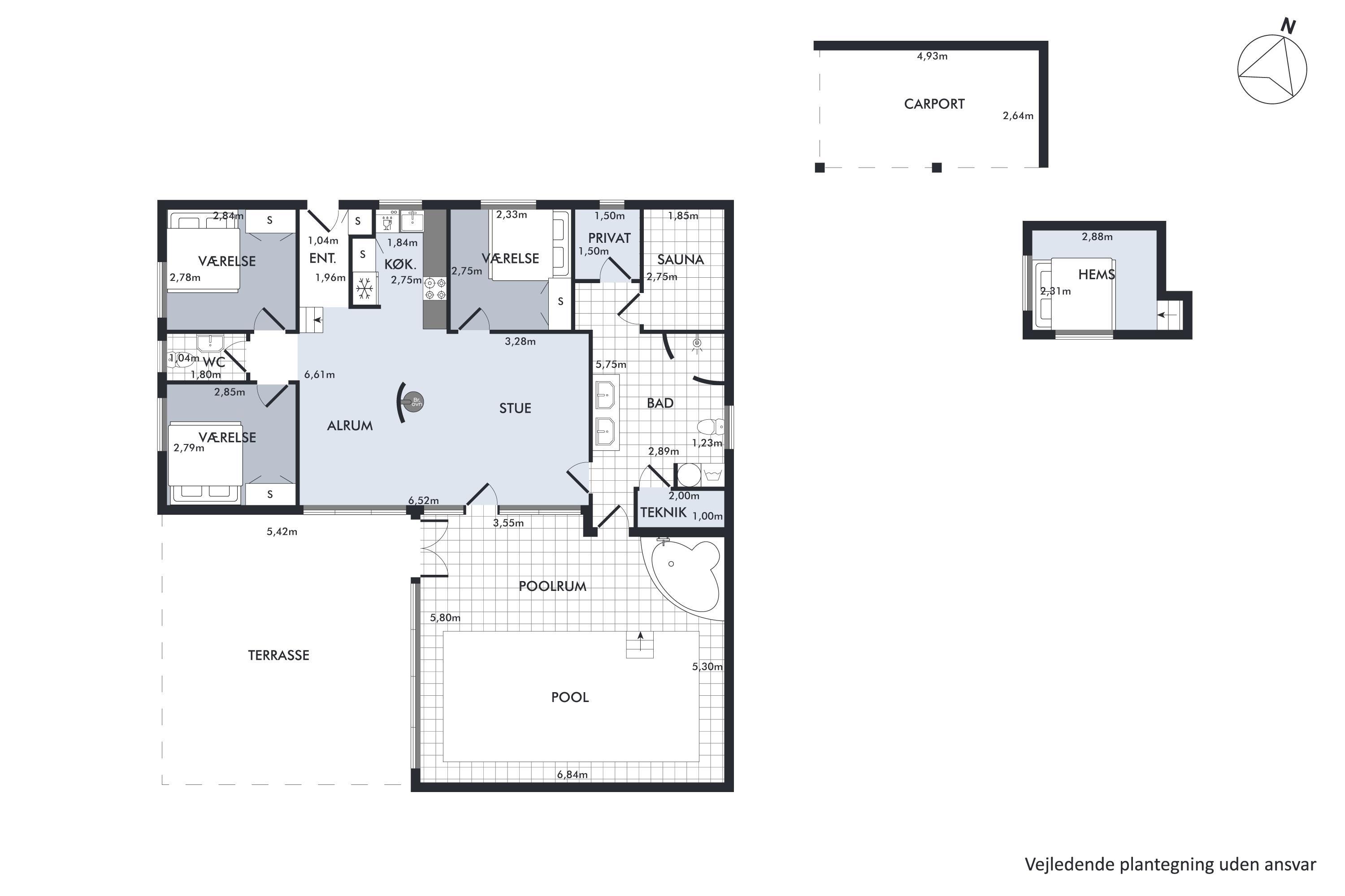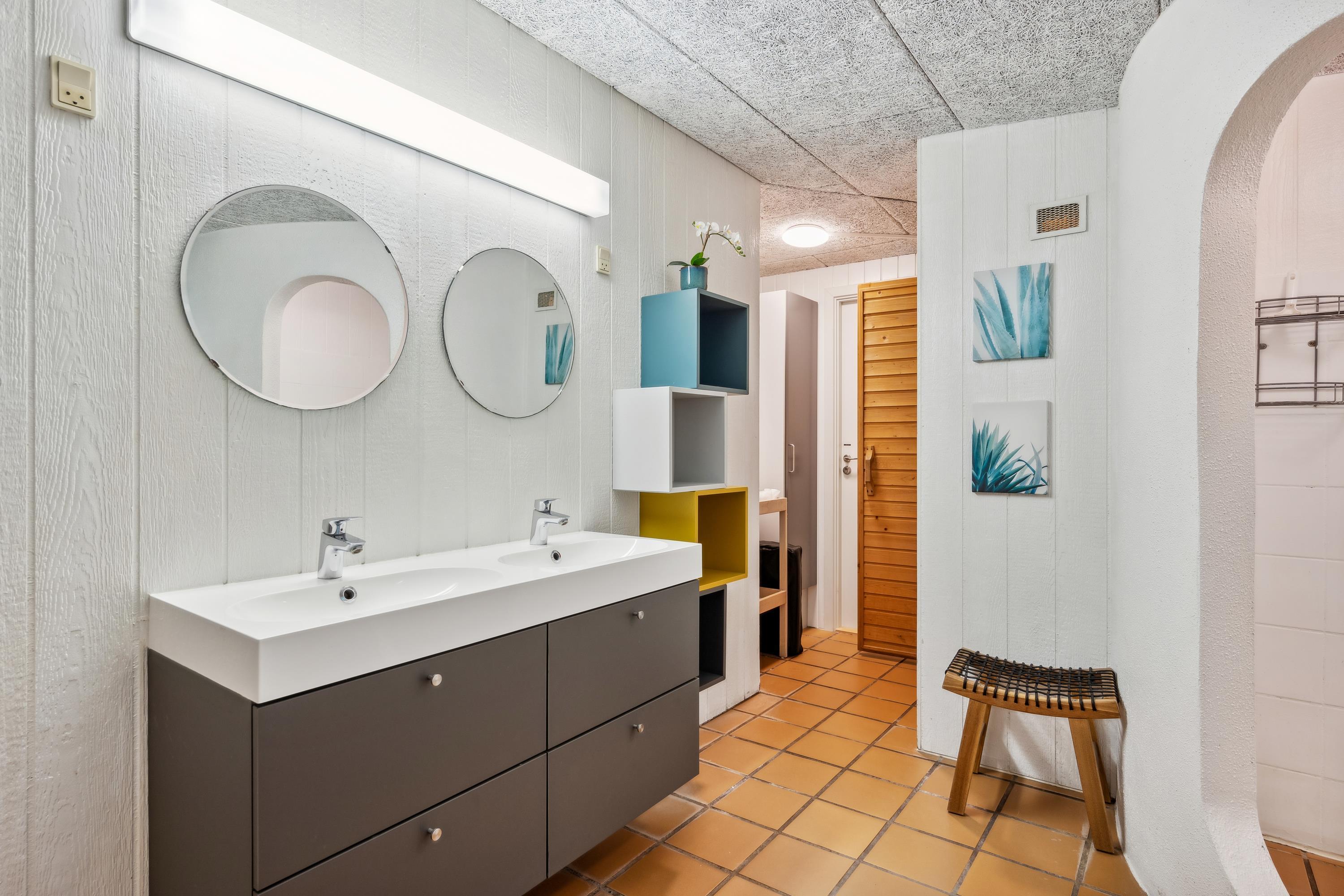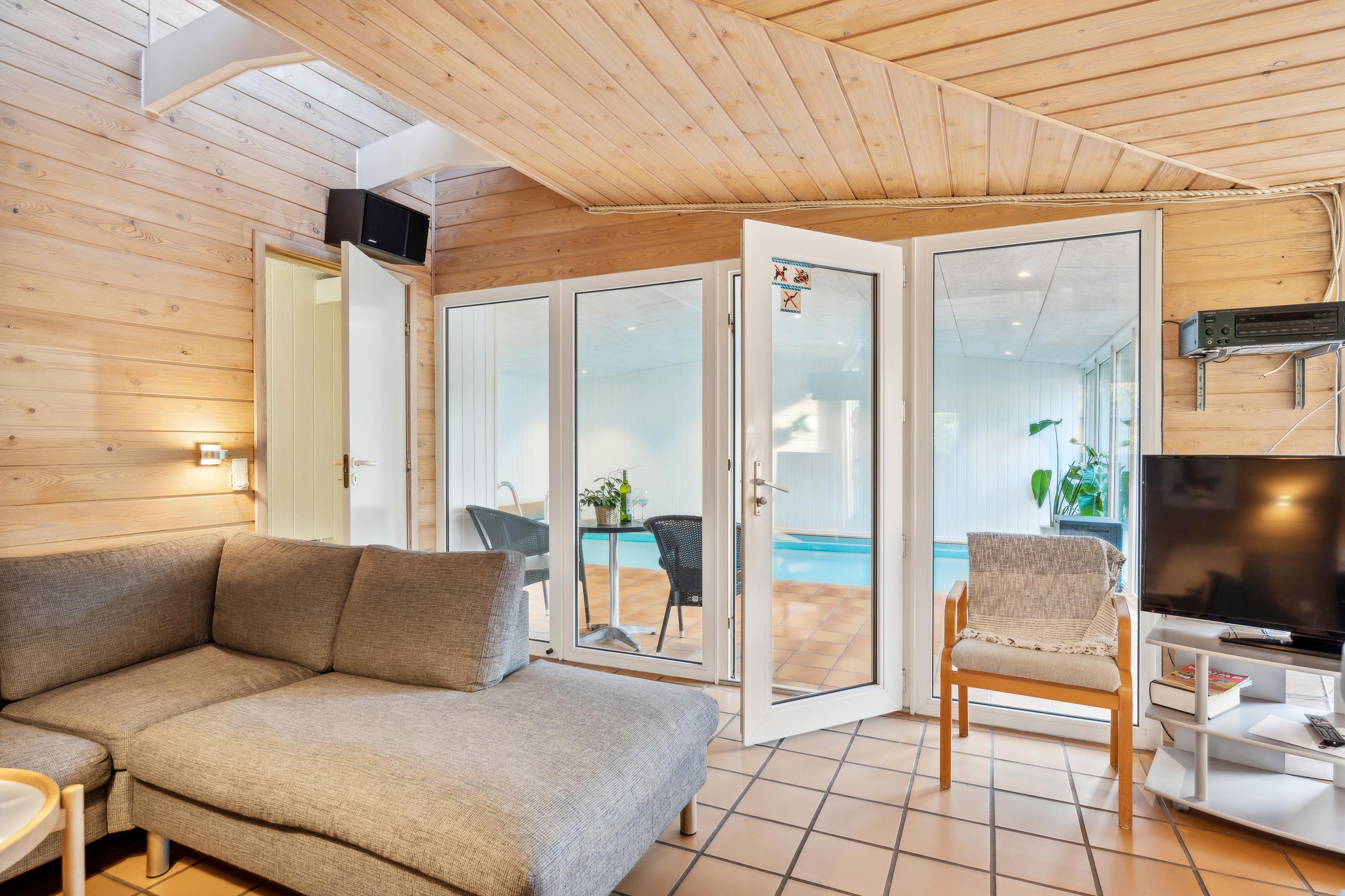 Schönes und gut gepflegtes Poolsommerhaus (Poolgrösse 6,0 x 3,0 x 1,3 Meter) in fantastischer Lage auf großem Naturgrundstück mit offener Terrasse mit Windschutz, Gartenmöbeln und Grill. Das Haus ist gut eingerichtet mit gemütlichem Wohnzimmer mit Holzofen, TV mit SAT-Anlage, DVD und Stereoanlage mit CD. Gut ausgestattete Kücke mit Elektroherd, Kühlschrank mit Gefrierfach, Mikrowelle und Geschirrspüler. Die Poolabteilung liegt neben dem Wohnzimmer, wodurch es möglich ist, einen Auge auf den Kindern zu haben. Der Poolraum verfügt zudem über einen Whirlpool, Fußbodenheizung, sowie Ausgang zur Terrasse. Schönes Badezimmer mit großer Dusche, Waschmaschine, Trockner, Sauna und Fußbodenheizung. Gästetoilette. Die Schlafplätze verteilen sich auf 3 Schlafzimmer: 2 mit Doppelbett, 1 mit Einzelbetten und Hängeboden mit 2 Matratzen. Für die kleinen Feriengäste finden Sie Wickeltisch, Schaukel und Kinderstuhl. Wärmepumpe mit Airconditionfunktion. Carport. Internet (4G).