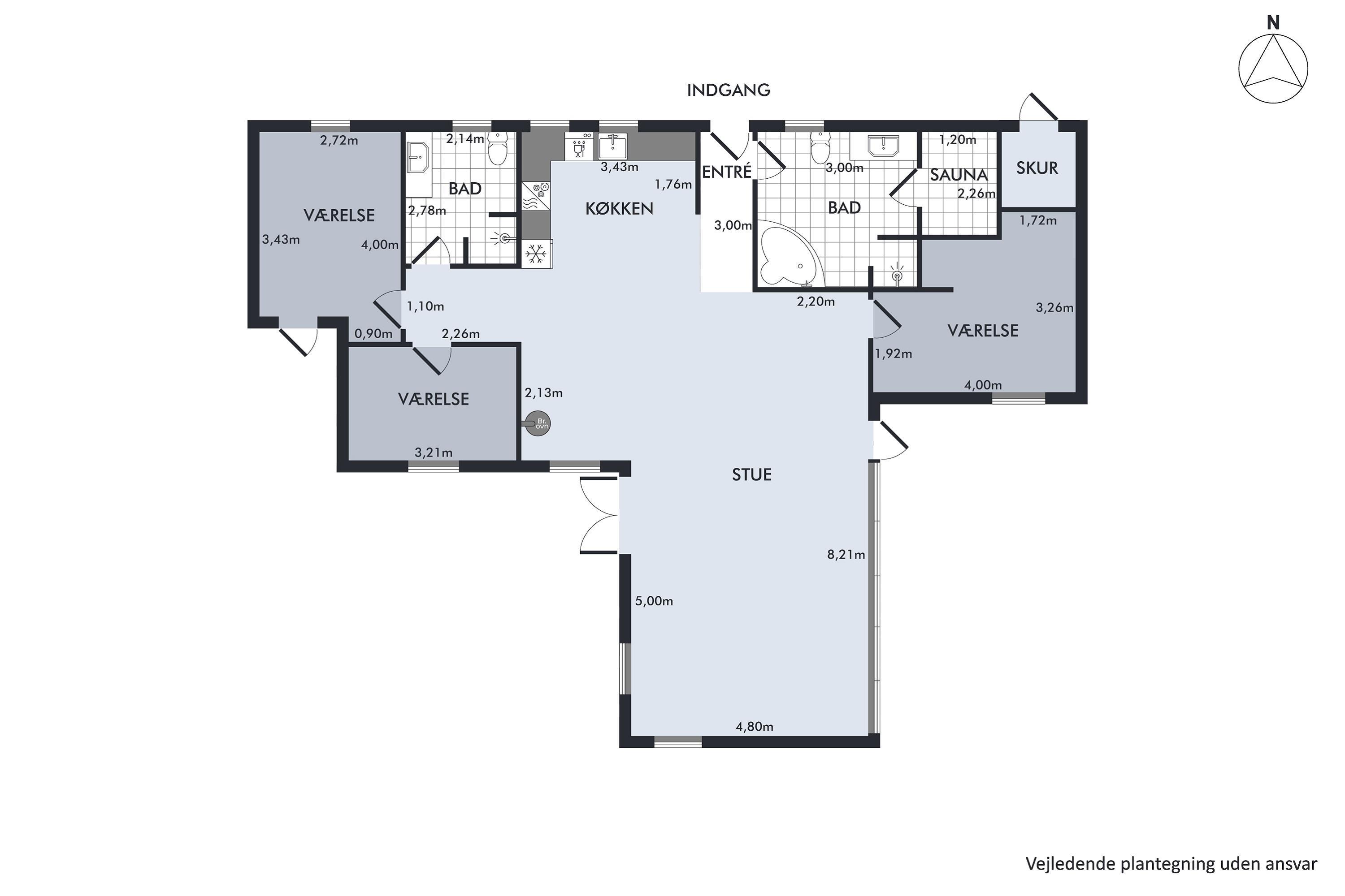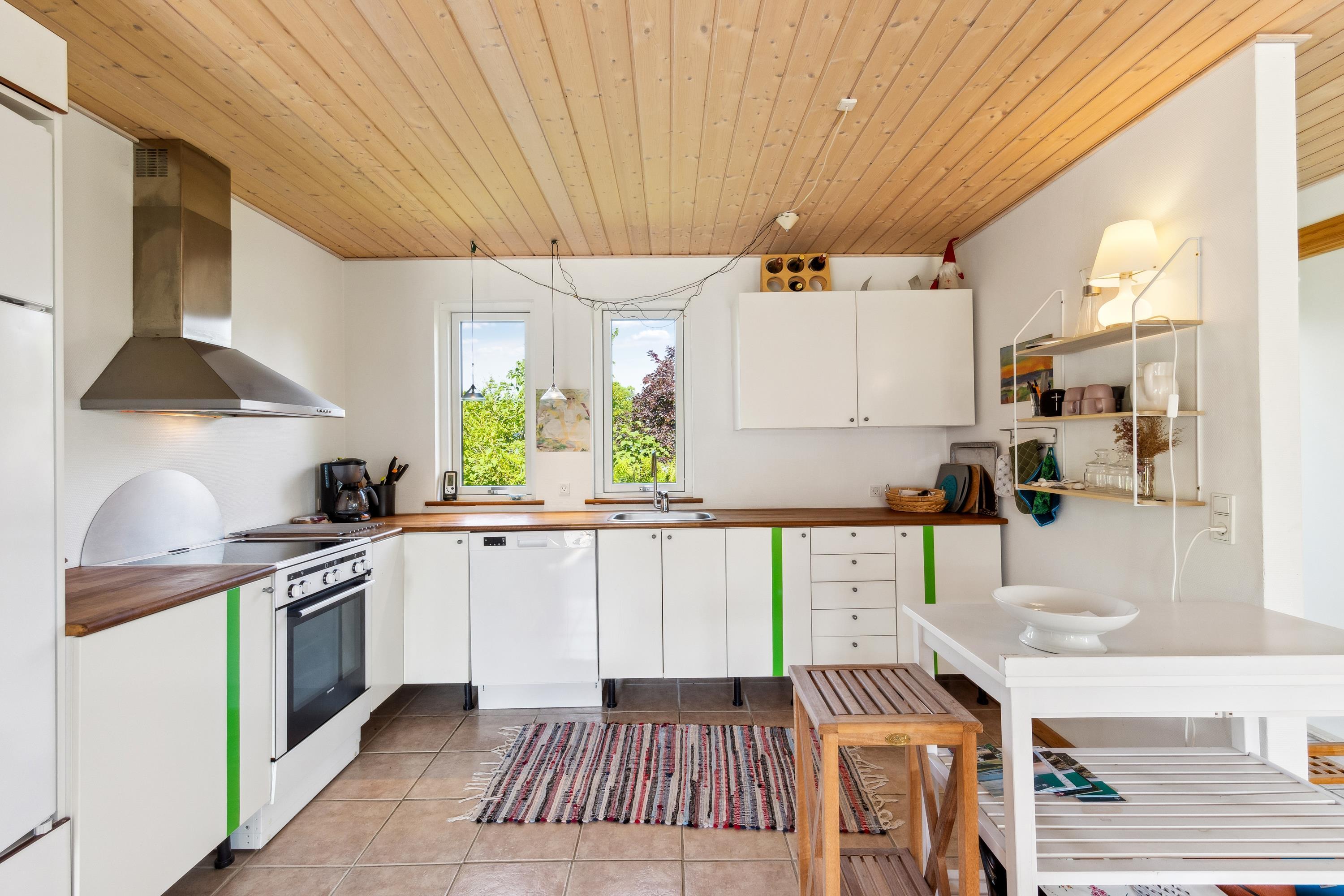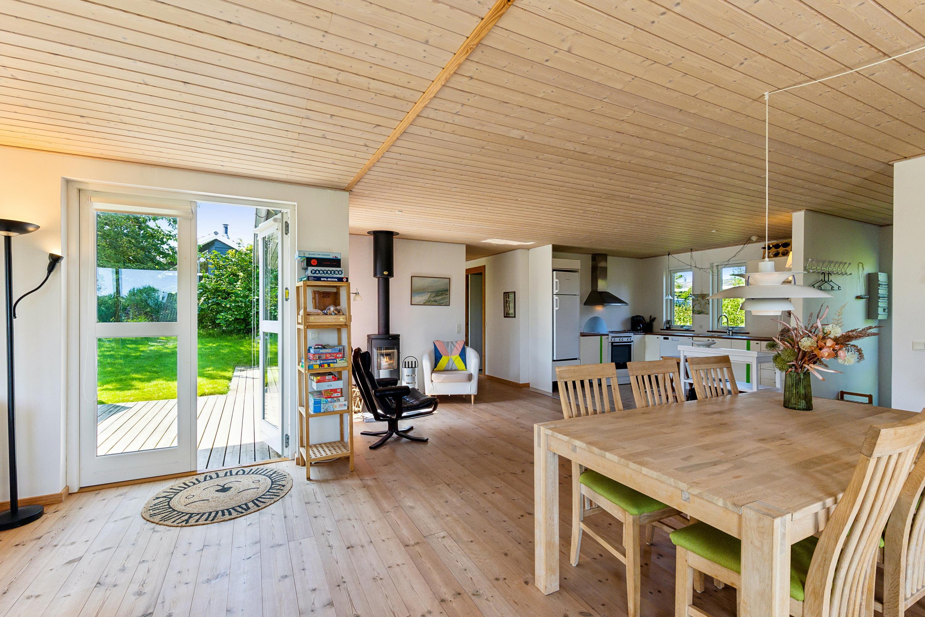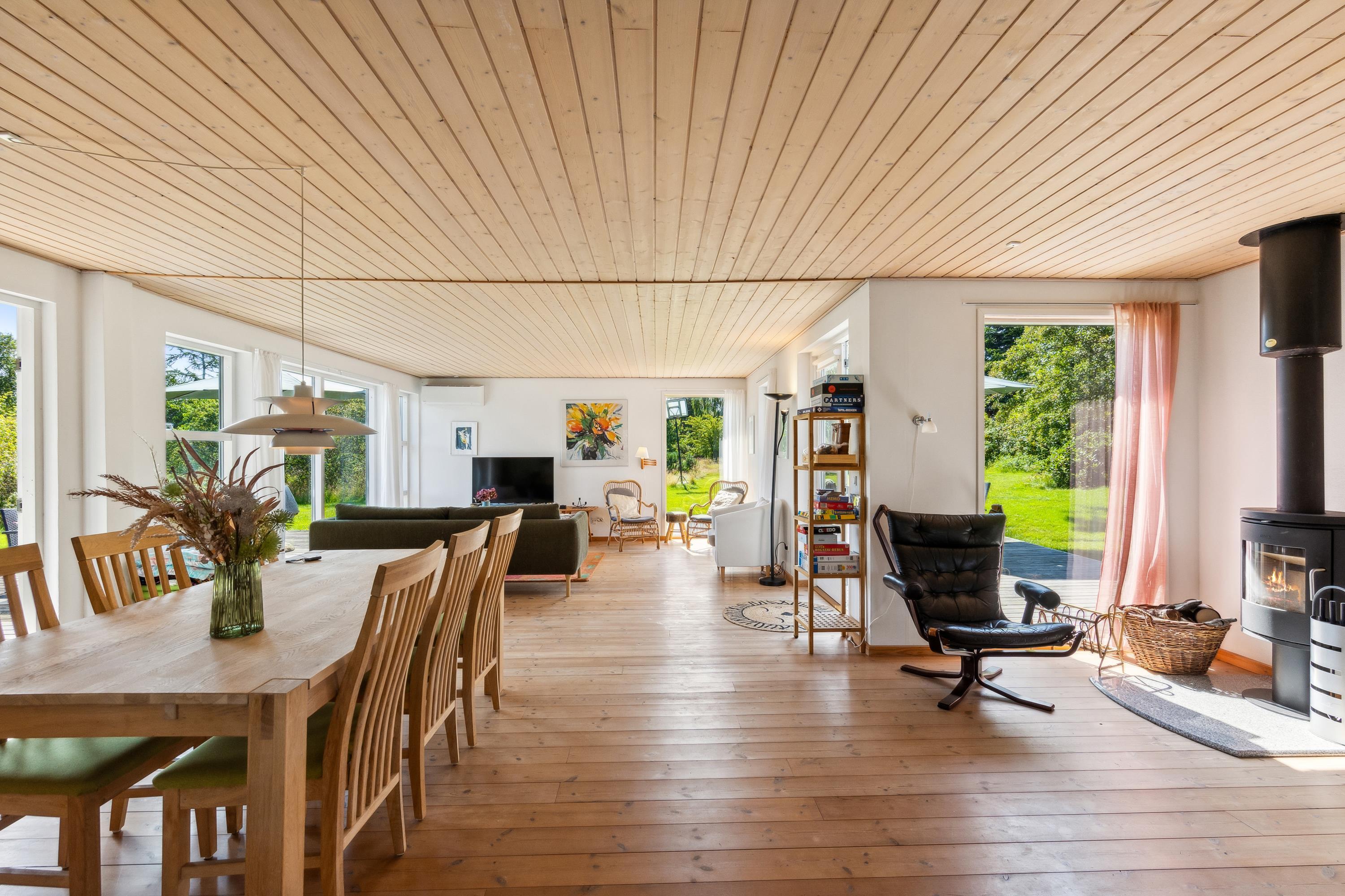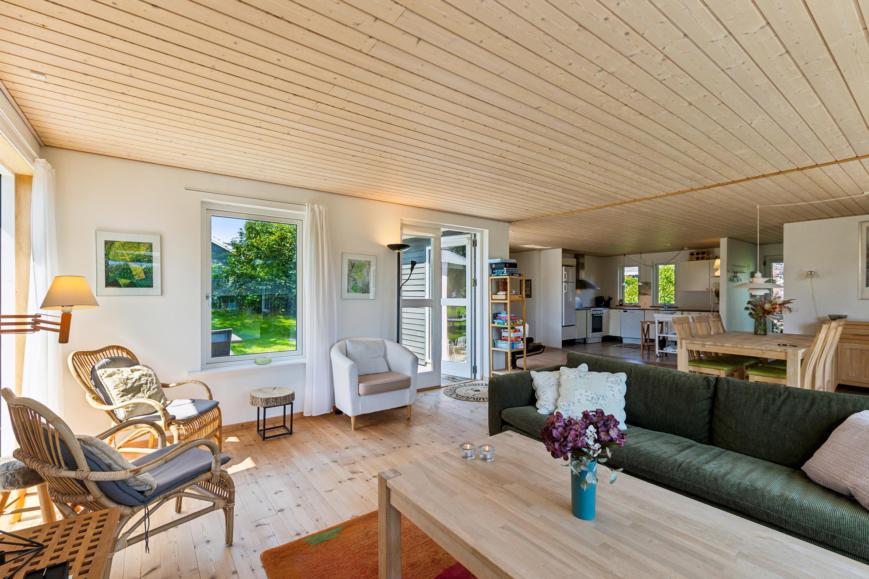 In der schönsten Gegend von Mols, mit Blick über Felder und Wald und in der Nähe von Wasser, finden Sie dieses äußerst gepflegte Ferienhaus. Hier finden Sie ein helles und geräumiges Wohnzimmer, angenehm eingerichtet mit guten Möbeln, Holzofen und Wärmepumpe und mit Zugang zu einer schönen Terrasse. In Verbindung mit dem Wohnzimmer finden Sie die gut funktionierende Küche mit unter anderem Spülmaschine. Das Ferienhaus verfügt über zwei schöne Badezimmer, eines davon mit Whirlpool und Zugang zur Sauna. Es gibt drei gute Zimmer, zwei davon mit Doppelbetten und ein Zimmer mit zwei Einzelbetten. Von einem Schlafzimmer gibt es direkten Zugang zu einer kleinen überdachten Terrasse. Es gibt mehrere schöne Terrassenbereiche, sodass Sie sowohl den Sonnenaufgang als auch den Sonnenuntergang genießen können. Das Ferienhaus liegt auf einem schönen Grundstück mit einer großen Rasenfläche, die zum Spielen und Genießen im Freien geeignet ist. Die Gegend ist ruhig und sehr kinderfreundlich und vom Wegesystem in der Nähe des Ferienhauses sind es 5 Gehminuten bis zum Wasser. Einen guten Badestrand finden Sie bei Skødshoved, ca. 5-10 Autominuten vom Ferienhaus entfernt.