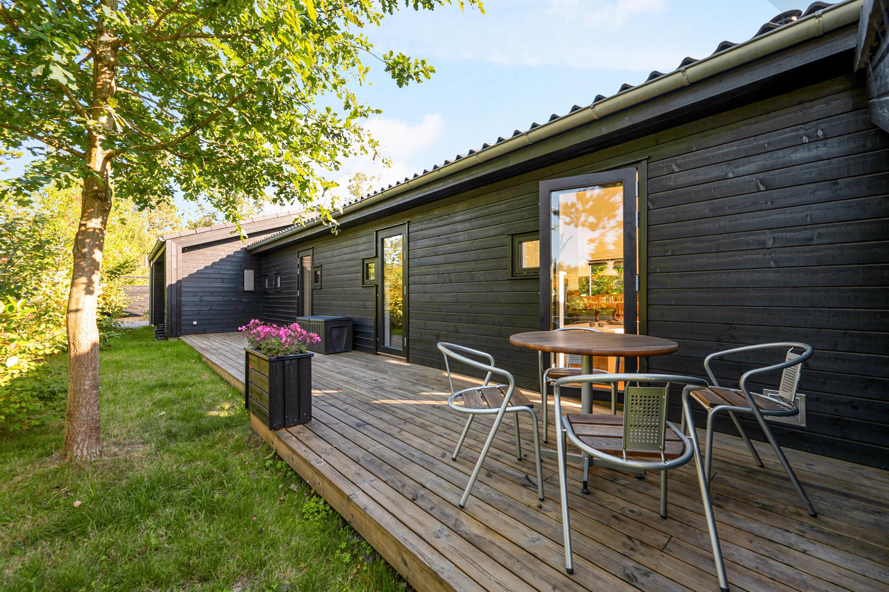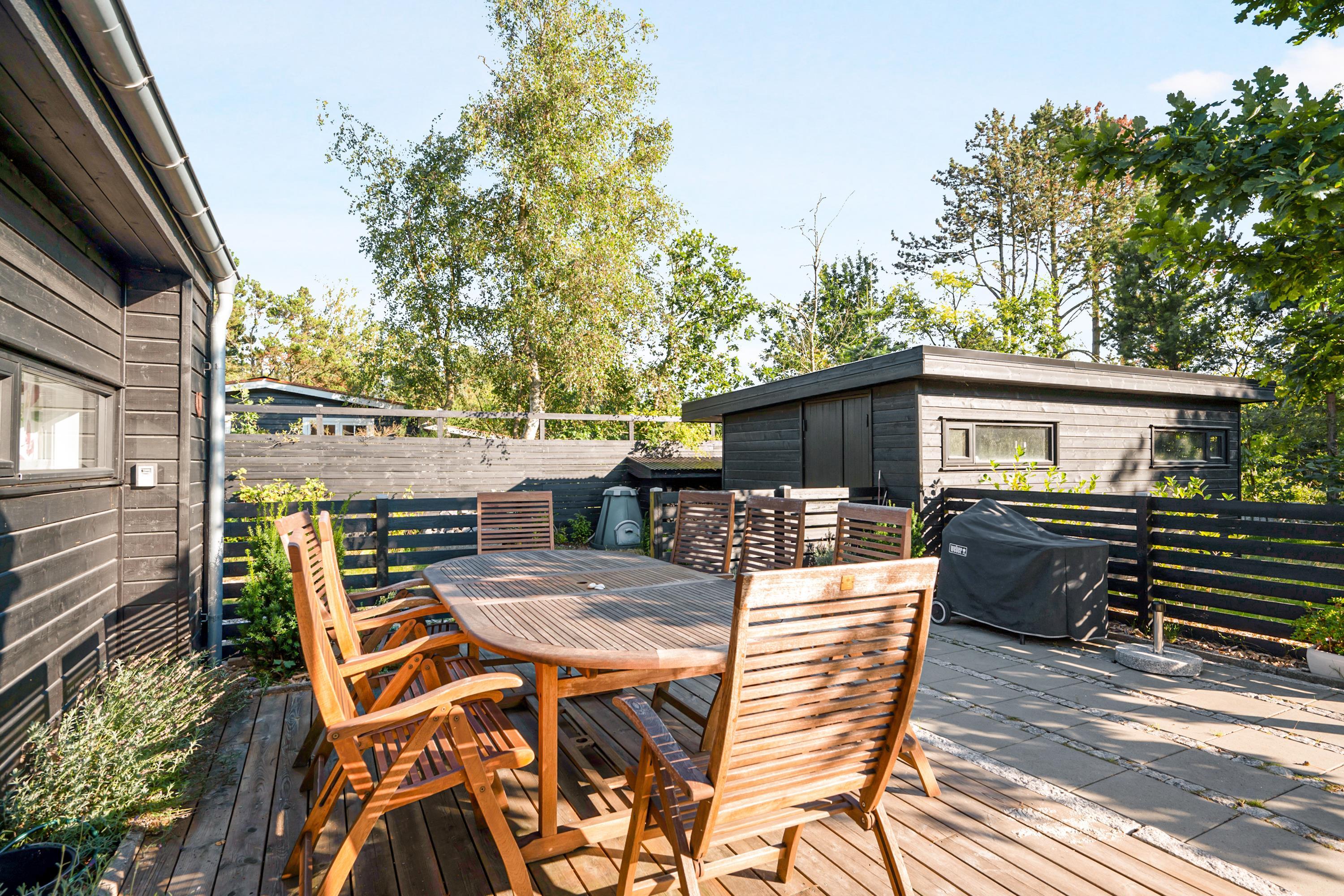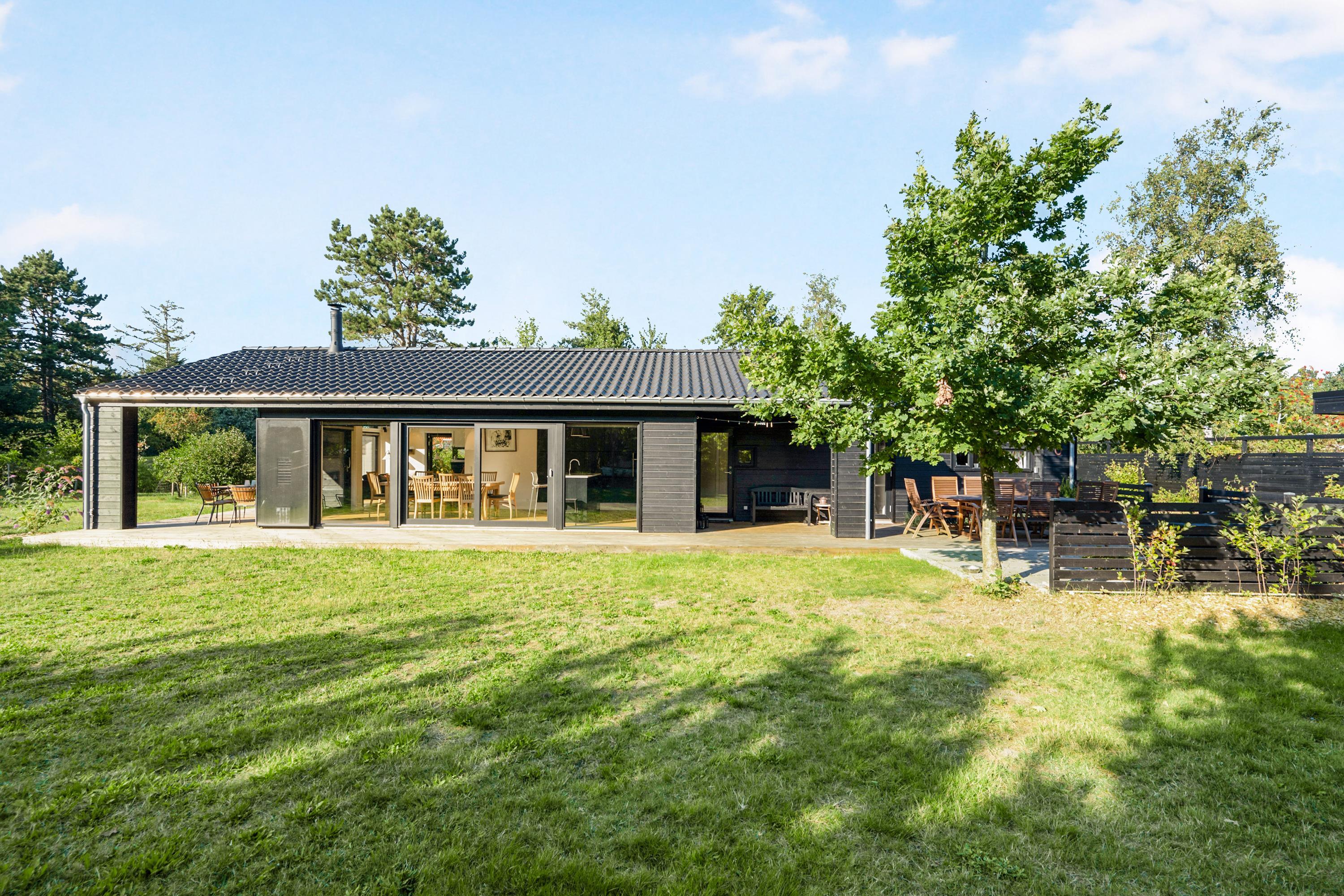 Dieses neue und sehr geräumige Ferienhaus liegt auf einem bewachsenen Naturgrundstück im schönen und ruhigen Gebiet an der Bucht Begtrup Vig. Es ist von einer mit guten Gartenmöbeln, Liegestühlen, Sonnenschirm und Grill ausgestatteten Holzterrasse umgeben, deren nach Süden gewandter Teil überdacht ist. Ein wirklich schönes und gut eingerichtetes Haus für die große Familie oder mehrere Familien. Das Haus ist zudem energieeffizient.
