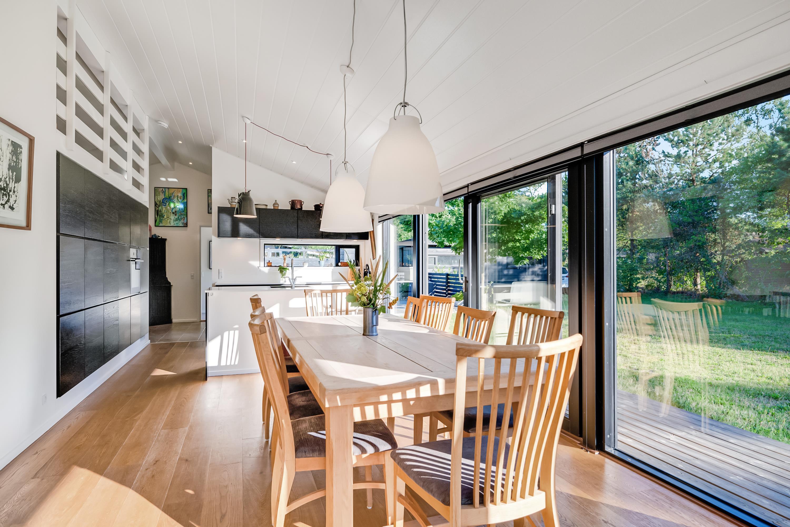 Neues, geräumiges Ferienhaus an der Bucht Begtrup Vig mit Sauna, Kamin und großem Garten für erholsame Tage.