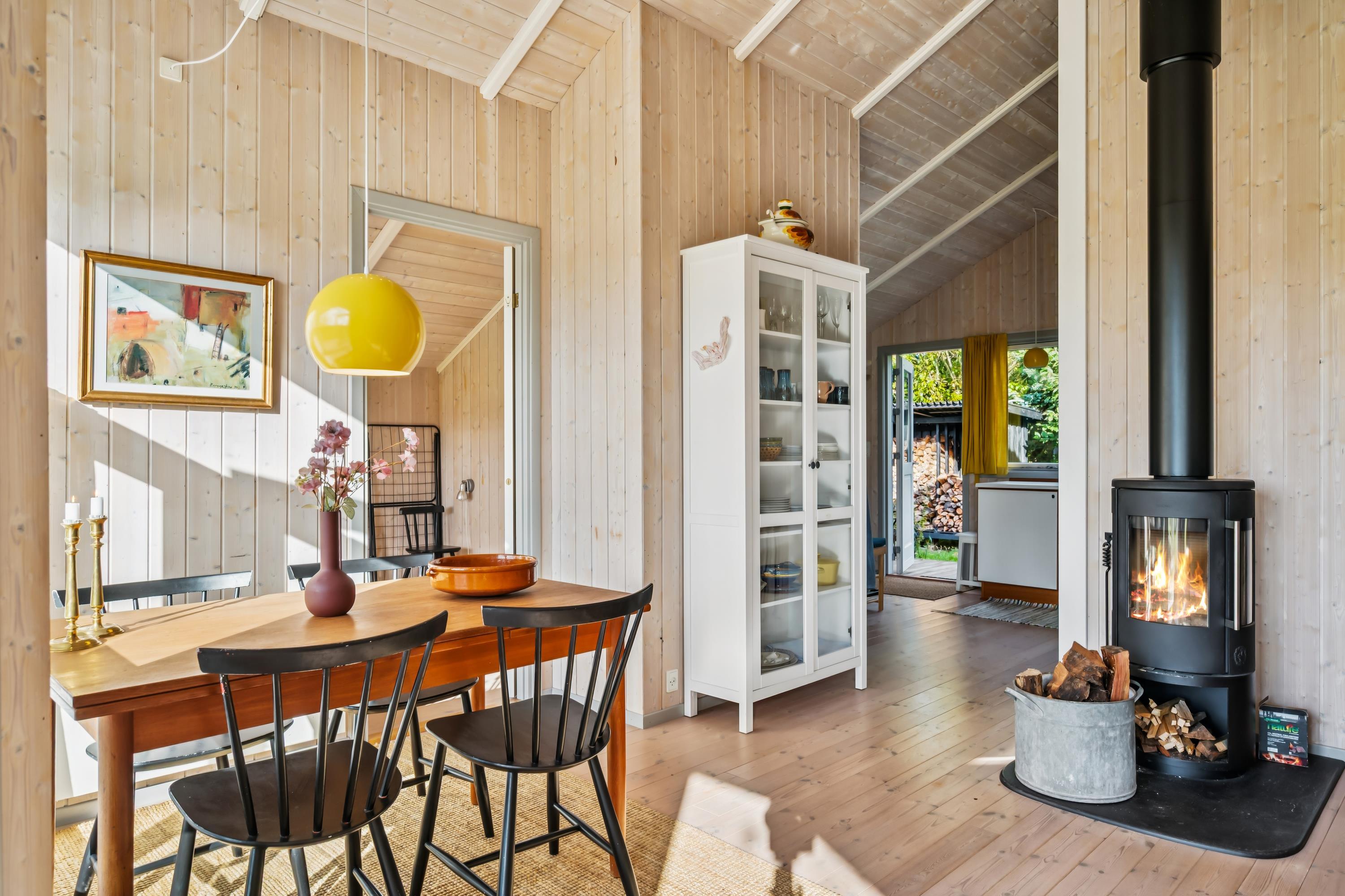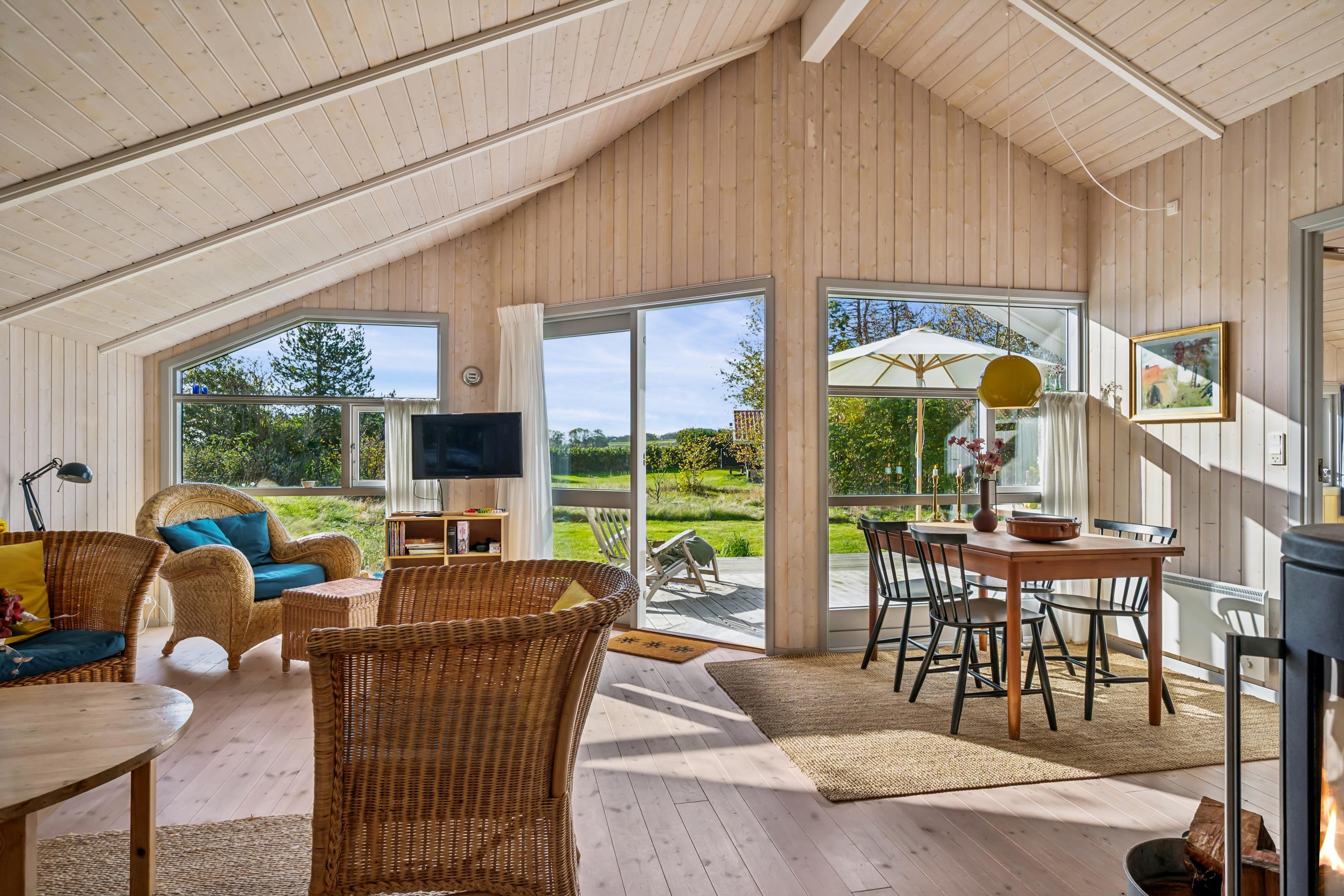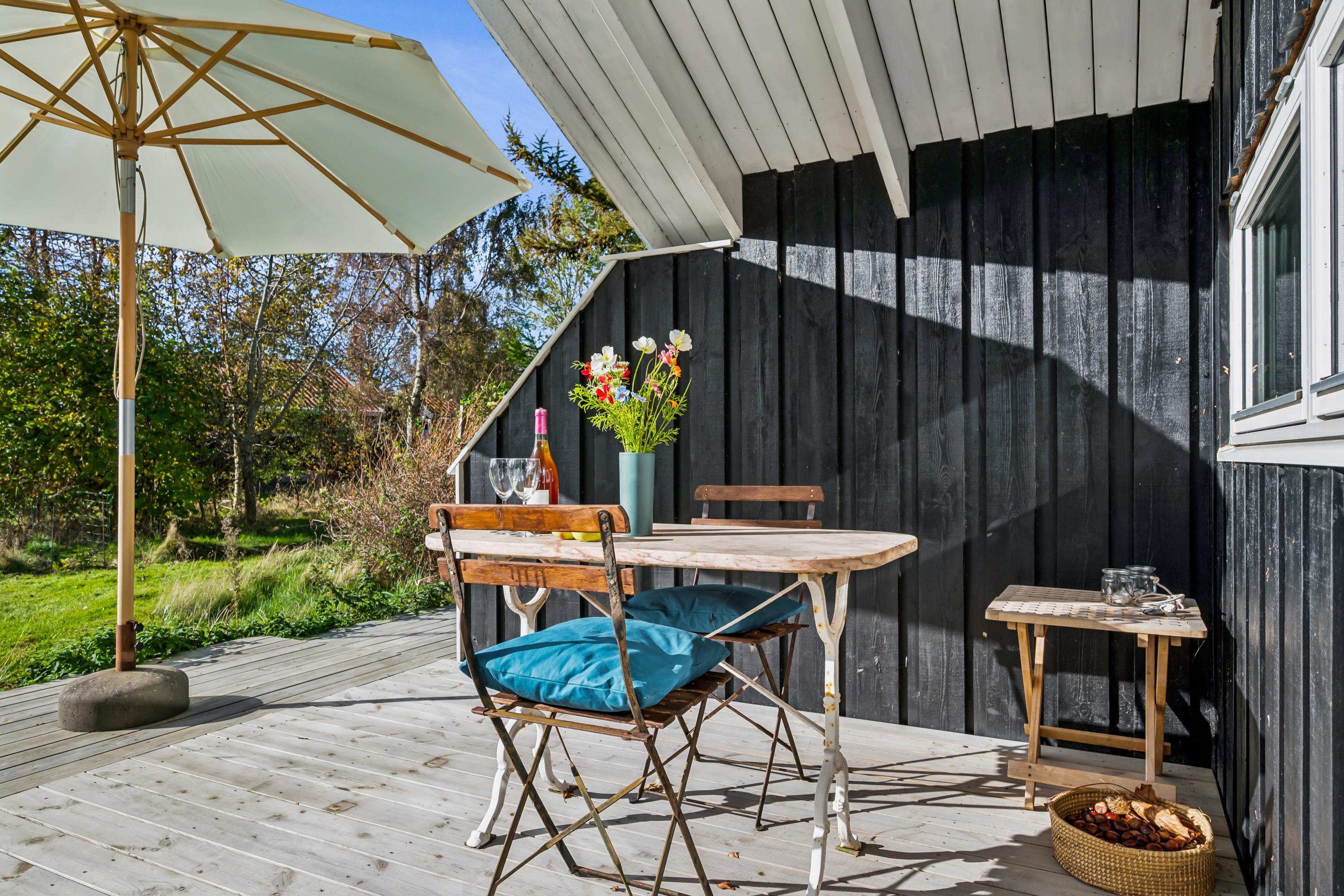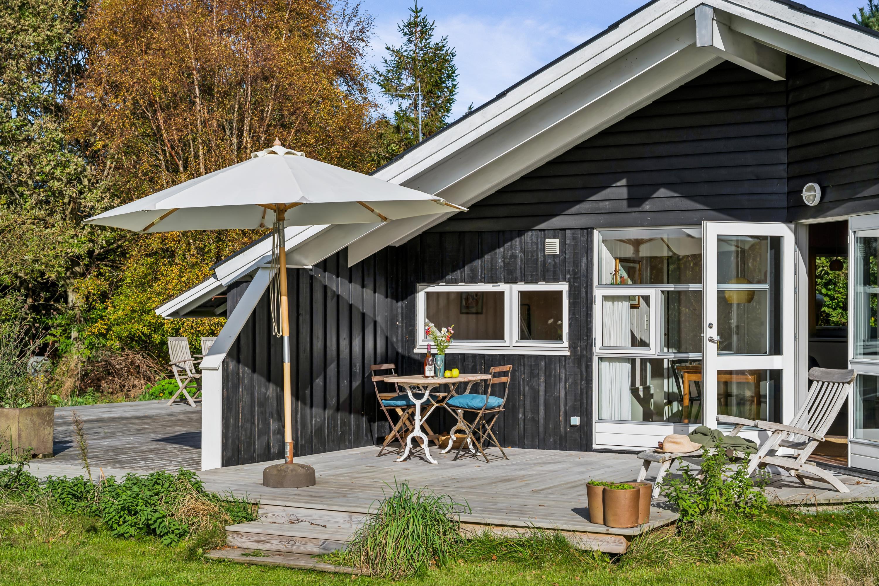 Gemütliches Ferienhaus in Knebel, 5 Min. vom kinderfreundlichen Sandstrand mit Terrasse und Garten.