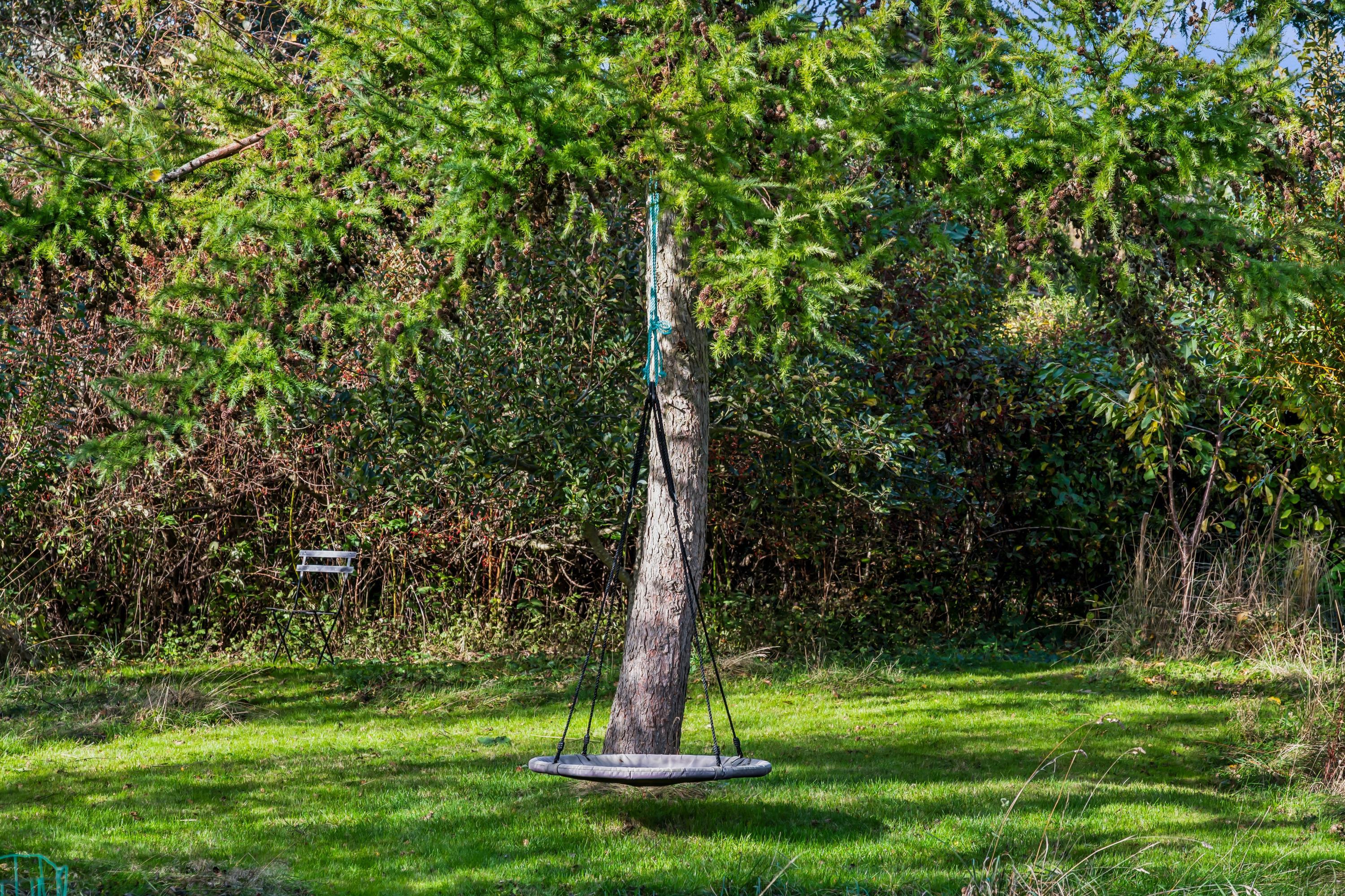 Ein sehr charmantes Ferienhaus auf einem schönen Naturgrundstück mit Rasenfläche – ideal für Spiel und Entspannung im Freien.