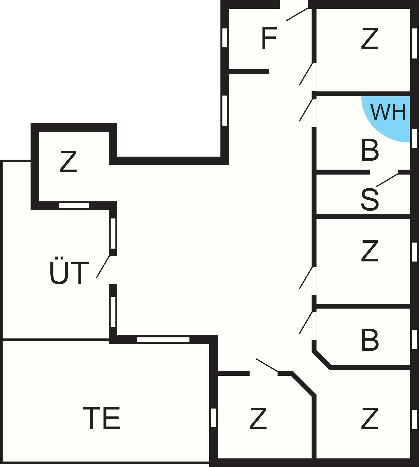 5 Schlafz.: (1DB)+(1DB)+(1DB)+(2B)+(2B), Kinderbett